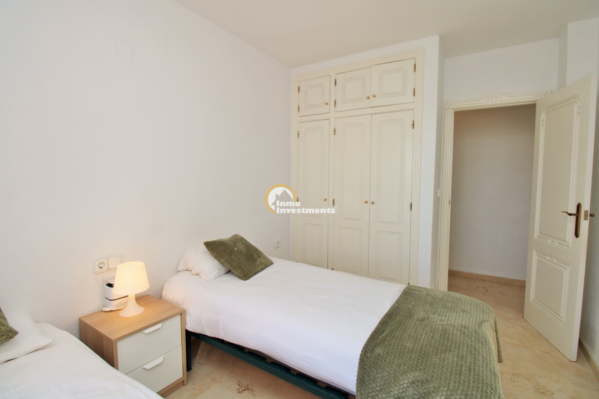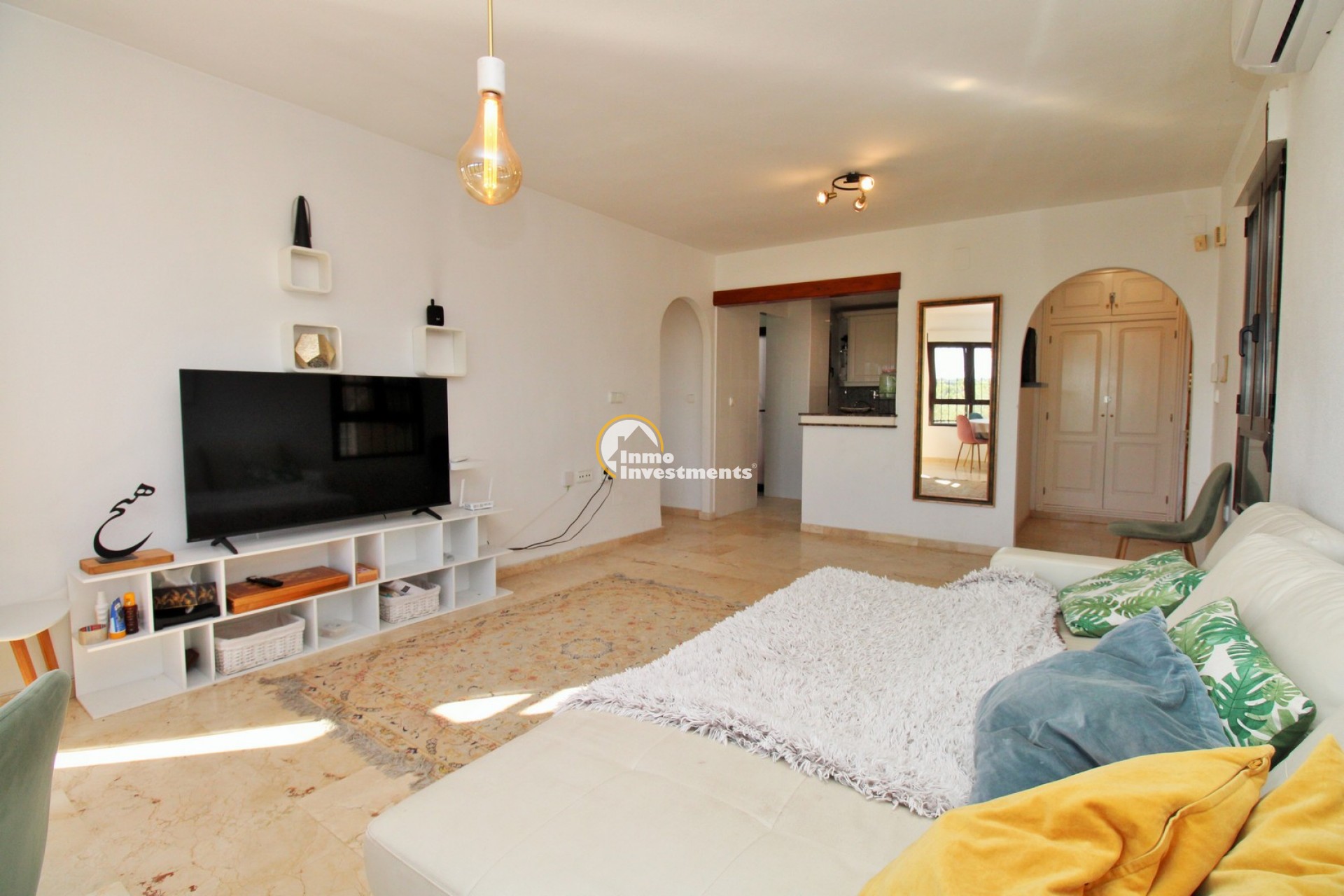 Spacieux appartement en rez-de-chaussée exposé sud avec 2 chambres et 2 salles de bains, situé dans la résidence recherchée Altamira V à Las Ramblas Golf, à quelques minutes à pied du clubhouse du golf. Le bien offre un intérieur lumineux comprenant un grand salon-salle à manger, une cuisine équipée avec buanderie séparée, deux chambres doubles avec placards intégrés, dont une suite parentale avec salle de bains privative et douche à l’italienne, ainsi qu’une salle de bains familiale. Depuis le séjour, vous accédez à une terrasse privée exposée sud avec vues vers le golf, idéale pour profiter du soleil toute l’année. La résidence dispose d’une piscine communautaire et d’un espace jacuzzi, à proximité du centre commercial La Fuente, des commerces, restaurants et des plages.