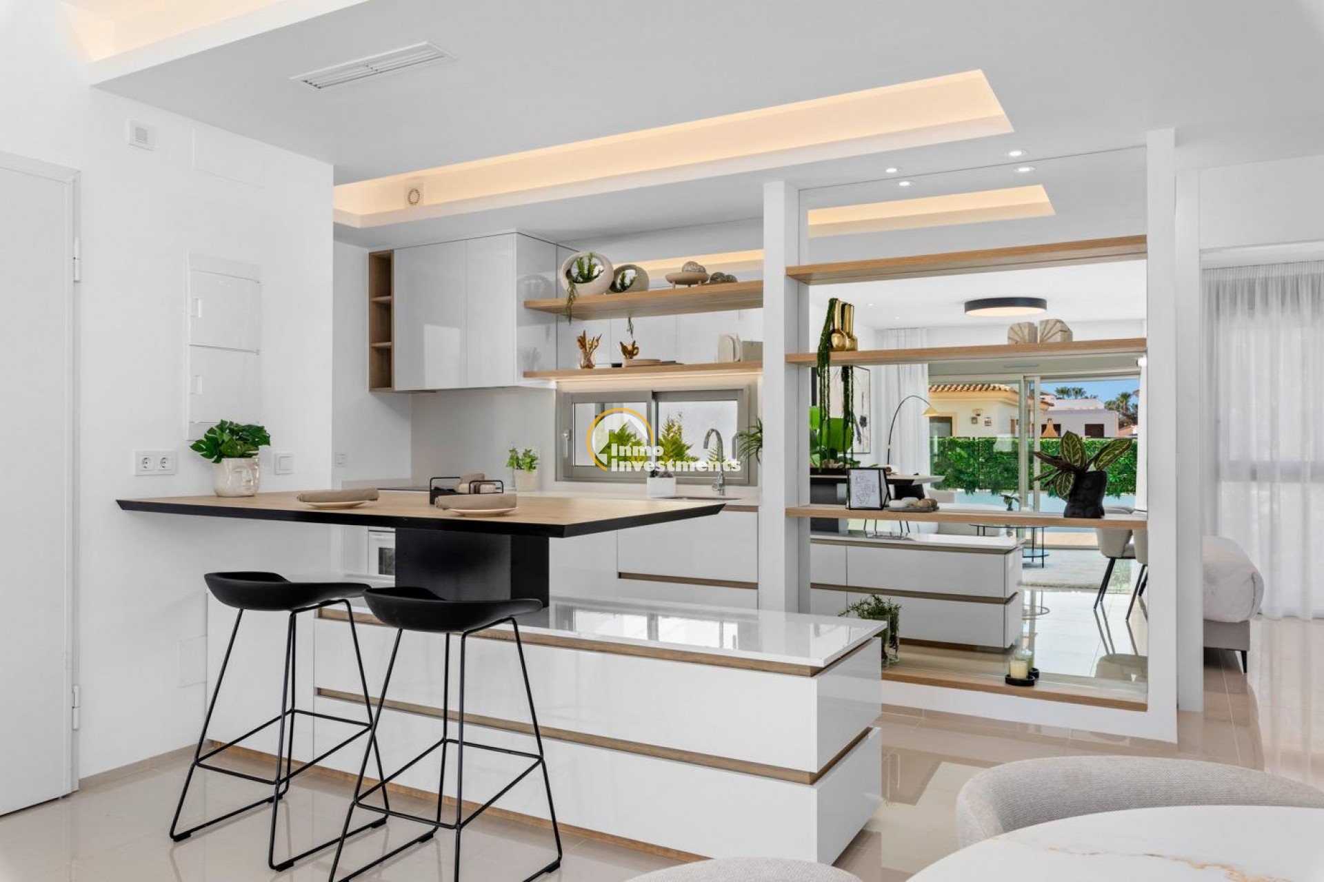 Villa à los Alcazares est l'une de nos nouvelles créations aux lignes droites où nous avons voulu mélanger le blanc cassé avec l'effet de la pierre sur la façade. Cette maison comprend 3 chambres dont une avec salle de bain privative, situées au rez-de-chaussée. La villa est composée de 2 étages et d'un solarium privé. Cette villa comprend 2 places de parking et un débarras séparé puisque pour accéder au solarium, elle contient une tour entièrement couverte avec des escaliers à l'intérieur. Son emplacement sur la Costa Cálida est excellent : à seulement 10 minutes à pied de la mer et à côté de toutes sortes de services, centres commerciaux, aéroport, hôpitaux, zones de loisirs, etc. superficie totale 167,3 m2, surface habitable 121,97 m2, superficie terrasse 45,33 m2, superficie solarium 40 m2, superficie terrain 281,7 m2 Prix à partir de 557 000 €