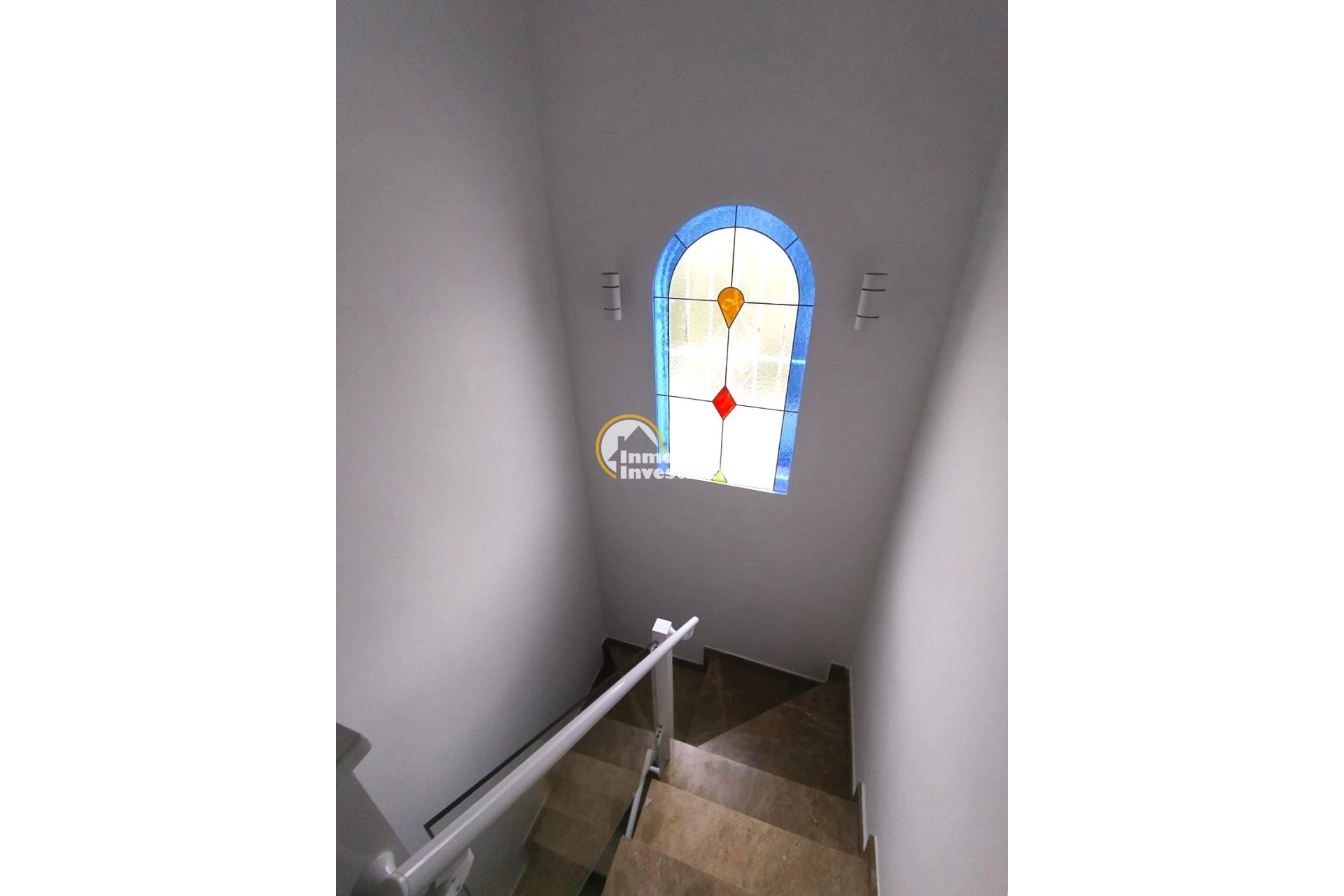 Un véritable bijou ! Superbe villa individuelle récemment rénovée, avec un spacieux appartement, très lumineuse et offrant de généreux espaces intérieurs et extérieurs.~~La propriété dispose d’une piscine privée, d’un espace de stationnement et d’agréables zones extérieures. Elle est située dans un environnement calme, face à un parc, tout en étant très bien desservie et proche des supermarchés, restaurants, bars, pharmacies, banques et de tous les services nécessaires.~~Au sous-sol, avec une entrée indépendante, se trouve un appartement d’environ 60 m2, actuellement composé d’un hall d’entrée, d’un espace bureau / salon, d’une chambre double, d’une salle de bains complète, d’une buanderie et de placards. Il est possible de créer une ou deux chambres supplémentaires dans la zone bureau. De plus, un très grand débarras, séparé de cet espace, complète ce niveau.~~La maison principale se développe sur deux niveaux. Au rez-de-chaussée, on trouve un porche vitré, un hall d’entrée accueillant, une chambre double avec placard intégré, une salle de bains complète avec fenêtre, un vaste salon-salle à manger et une cuisine indépendante. De là, on accède à une lumineuse véranda avec sortie directe vers le jardin arrière.~~À l’étage, la propriété offre deux chambres doubles (dont une actuellement aménagée en dressing), une salle de bains complète et une terrasse avec vue sur le jardin.~~À l’arrière du jardin se trouvent une jolie piscine, un espace chill-out avec pergola et une zone barbecue. À l’avant, des rangements et une pergola en aluminium ont été récemment installés, ainsi qu’un espace de stationnement.~~Une propriété parfaitement entretenue, polyvalente, spacieuse, lumineuse, confortable, calme et prête à emménager à 100 %. Idéale comme résidence familiale, mais aussi pour ceux qui recherchent un espace indépendant supplémentaire. Vous allez l’adorer !