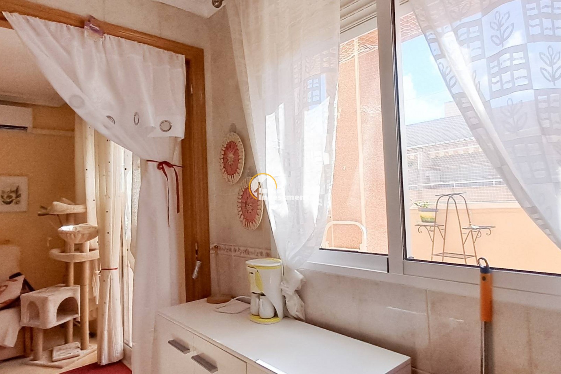 Ce magnifique attique de 2 chambres est prêt à emménager. Il a été rénové pour offrir une accessibilité totale en fauteuil roulant, facilitant la mobilité et le confort dans toute la maison.~~La salle de bain est entièrement rénovée avec un design moderne et fonctionnel. Le lumineux salon s'ouvre directement sur une grande terrasse privée (15m2), idéale pour profiter du soleil et de l'air méditerranéen. La terrasse dispose de suffisamment d'espace pour une table à manger et un coin salon confortable en plein air.~~Situé dans un quartier pratique, à proximité de tous les services de Torrevieja, vous pourrez profiter du centre-ville, des parcs, des magasins, des restaurants et des belles plages à quelques minutes.~~Réservez votre visite dès aujourd'hui et faites vôtre ce merveilleux attique de 2 chambres.