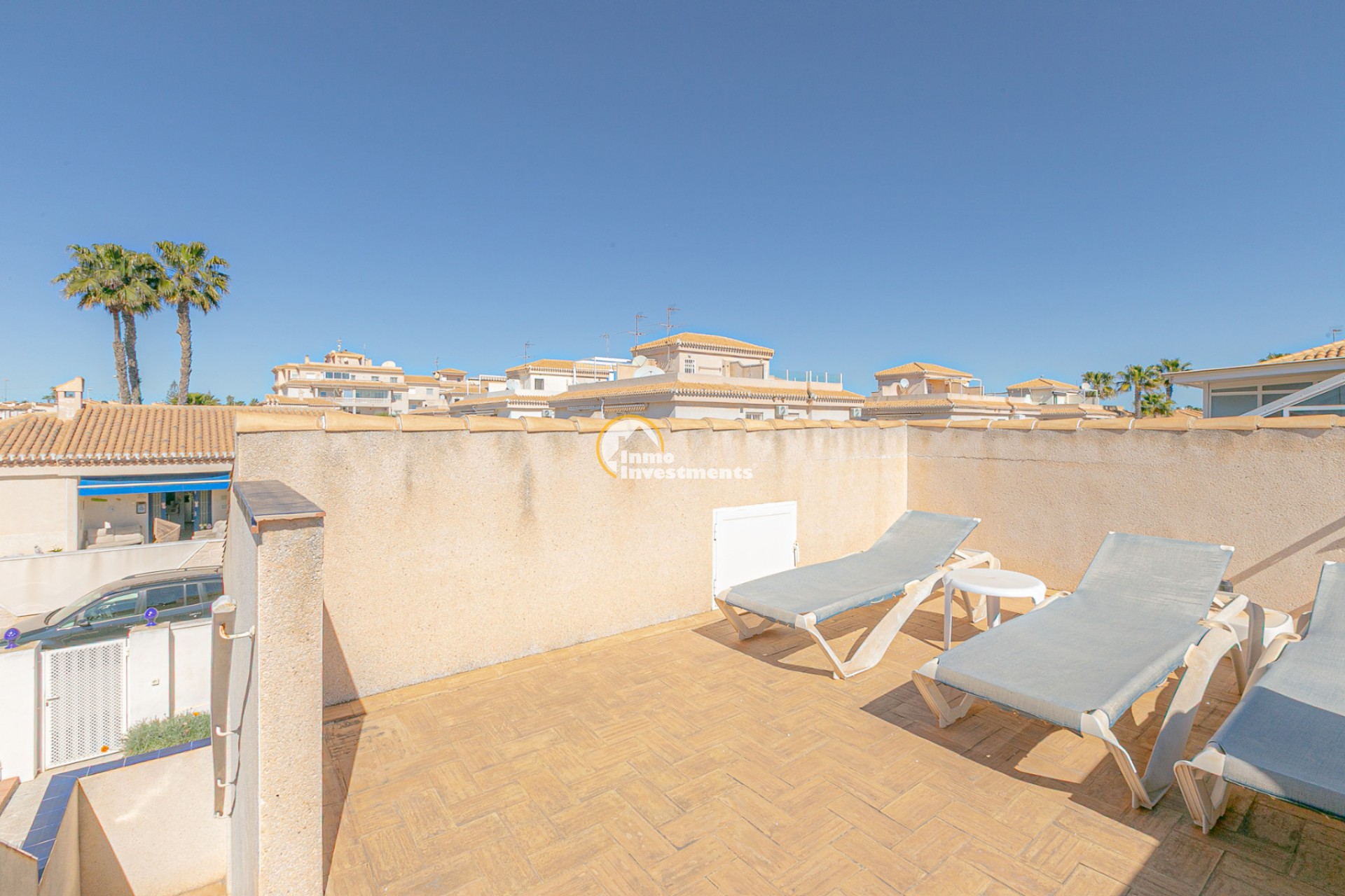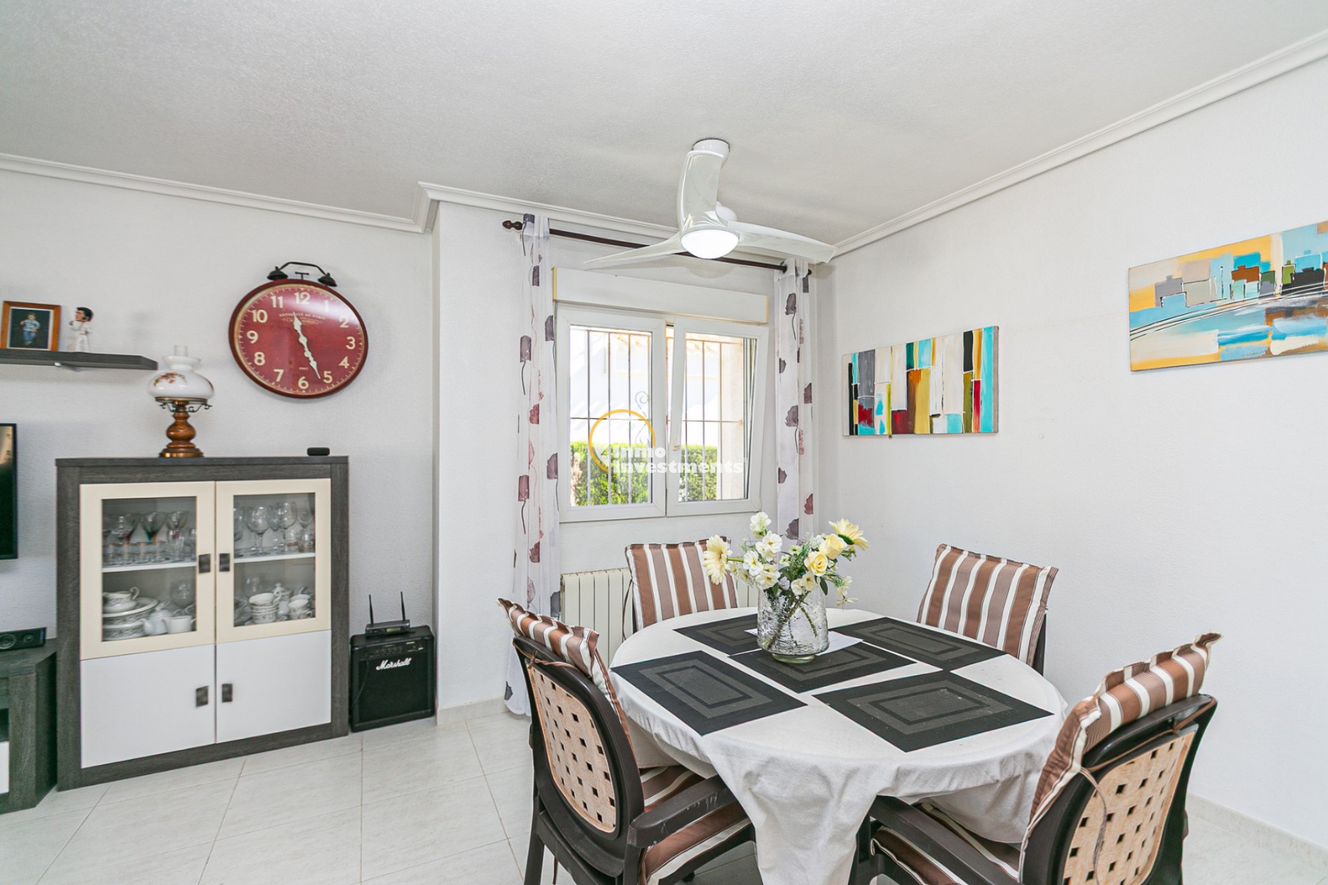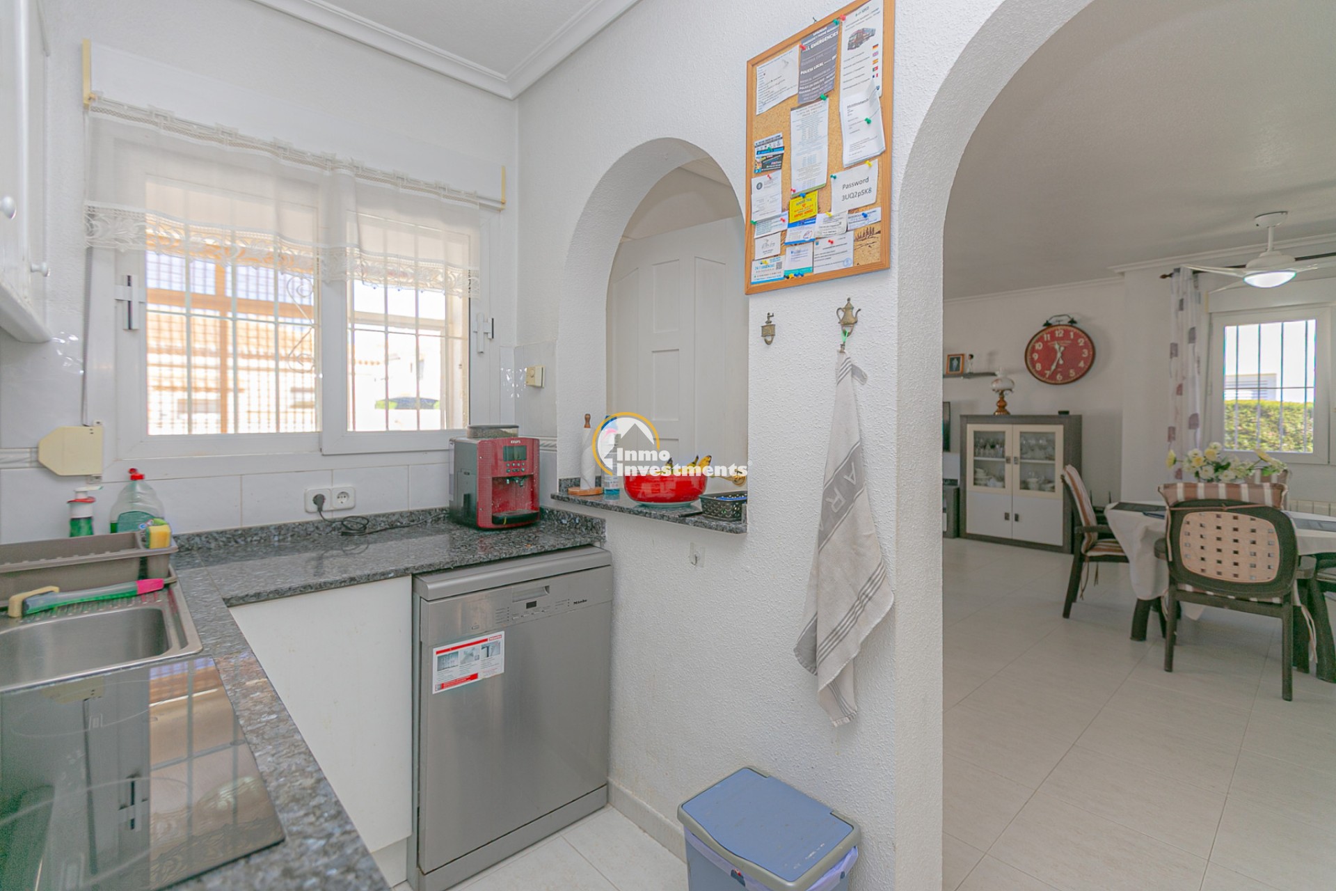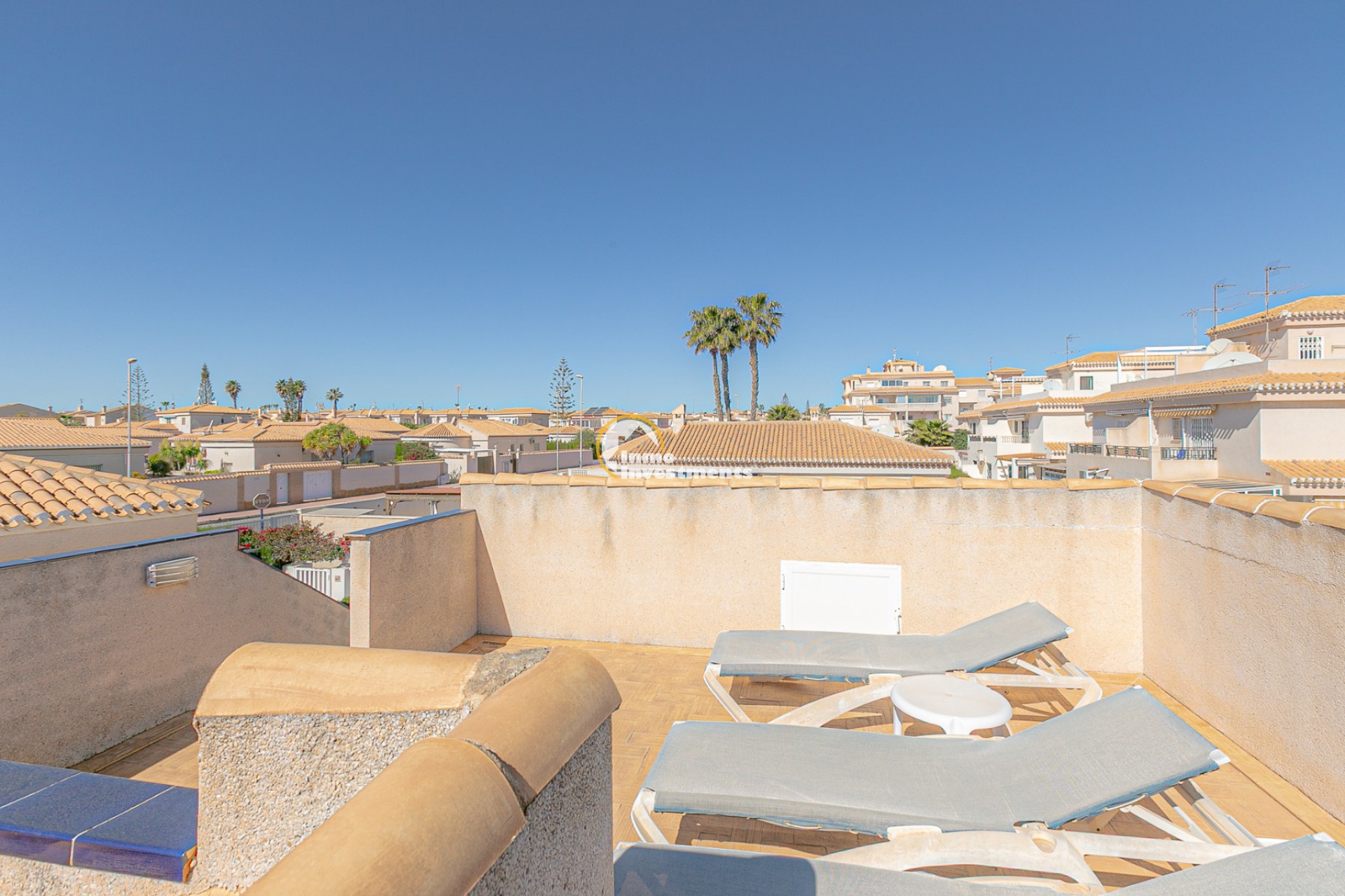 Au rez-de-chaussée, vous trouverez un salon lumineux avec climatisation et ventilateur de plafond, ainsi qu’une salle à manger confortable. La maison comprend deux chambres avec climatisation et ventilateurs, ainsi qu’une salle de bain avec douche à l’italienne.