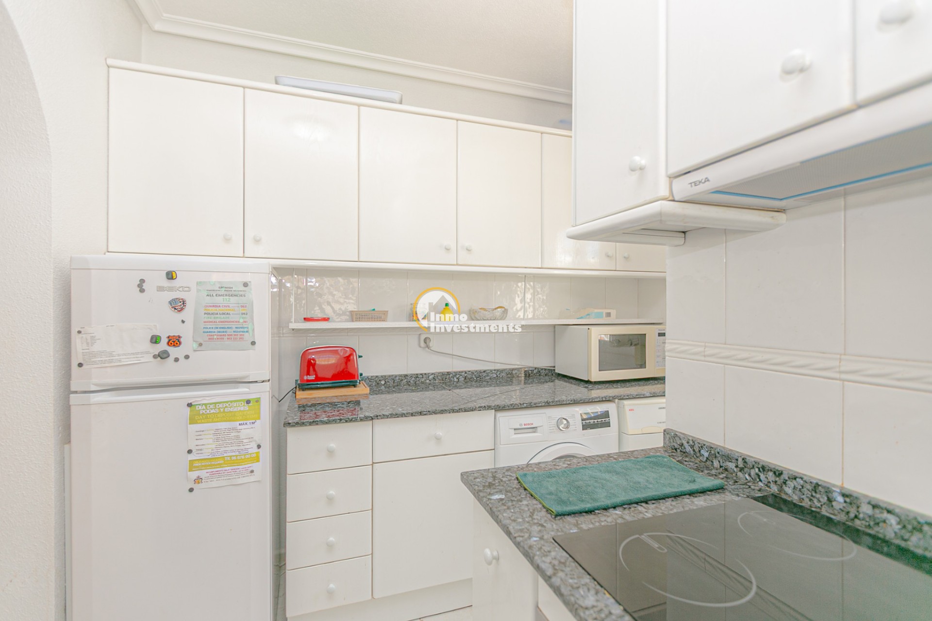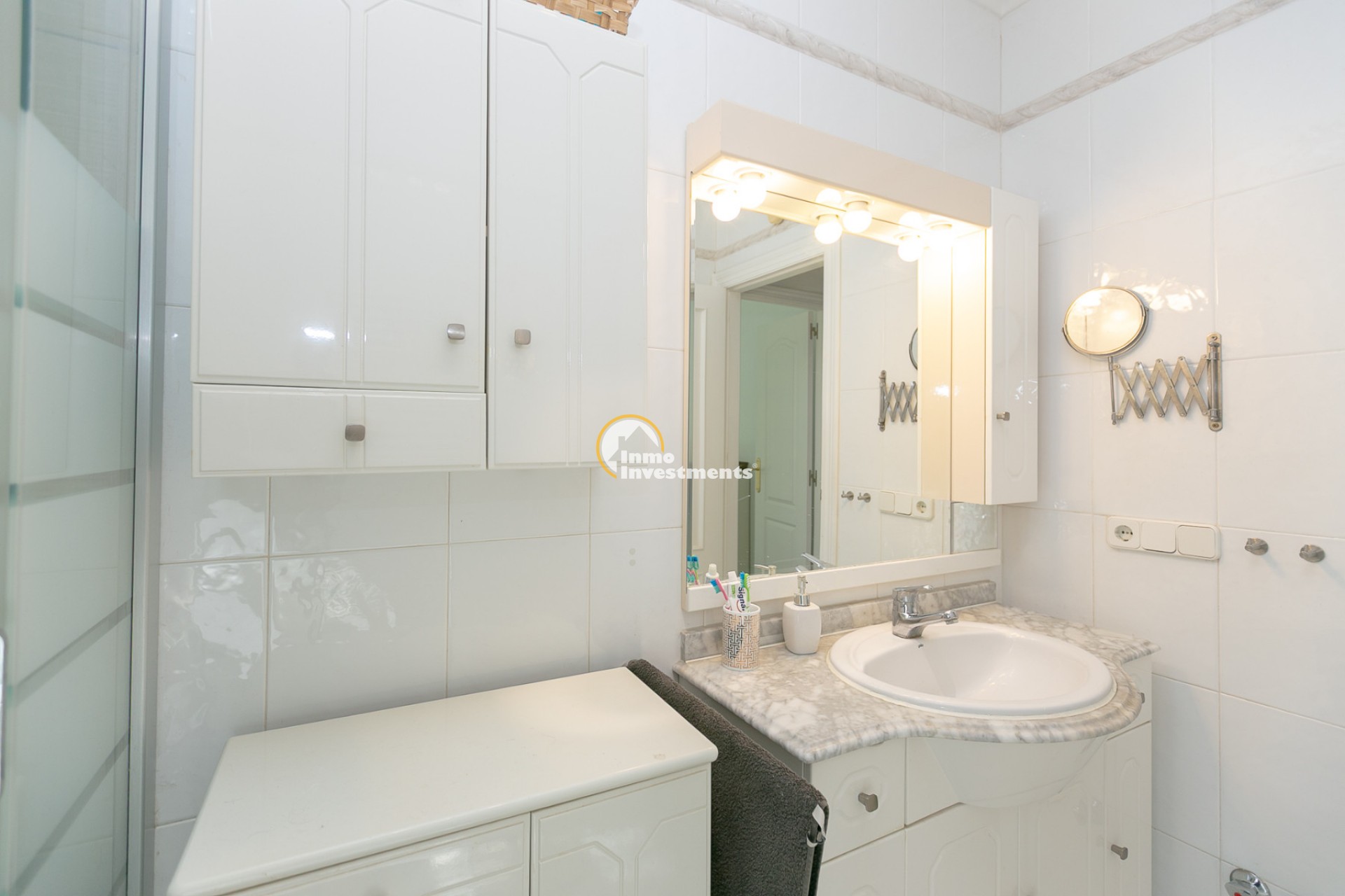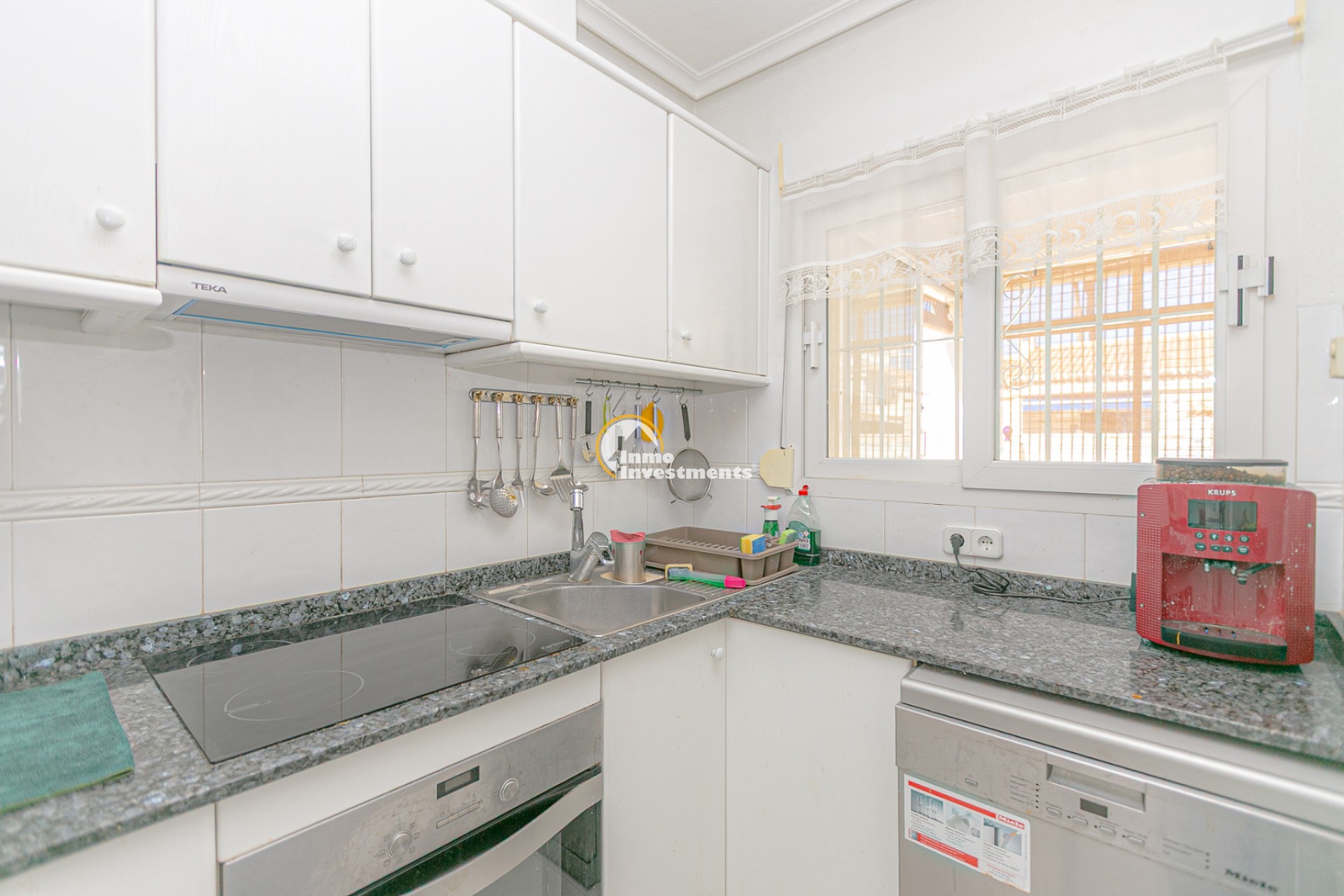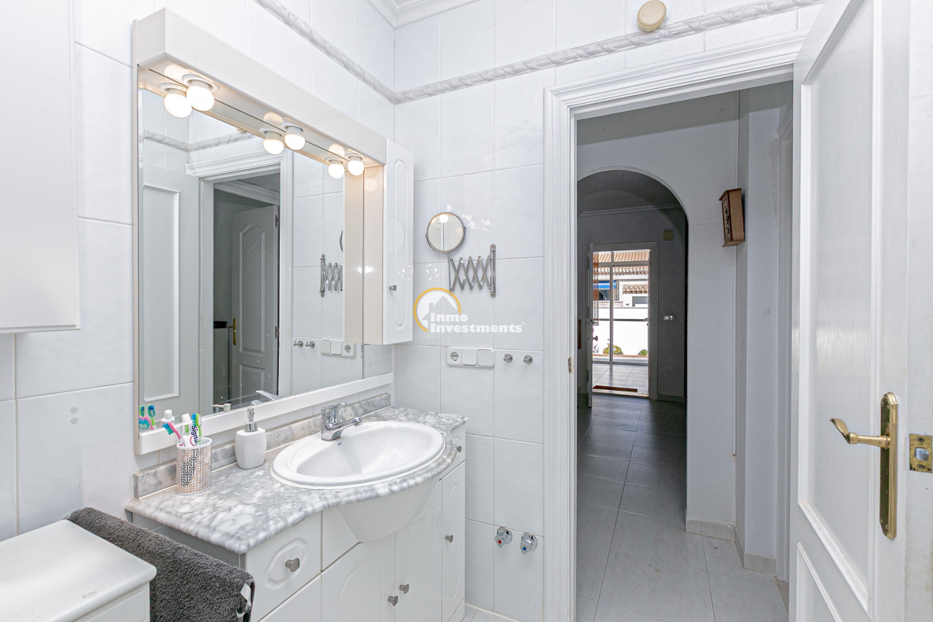 Au rez-de-chaussée, vous trouverez un salon lumineux avec climatisation et ventilateur de plafond, ainsi qu’une salle à manger confortable. La maison comprend deux chambres avec climatisation et ventilateurs, ainsi qu’une salle de bain avec douche à l’italienne.
