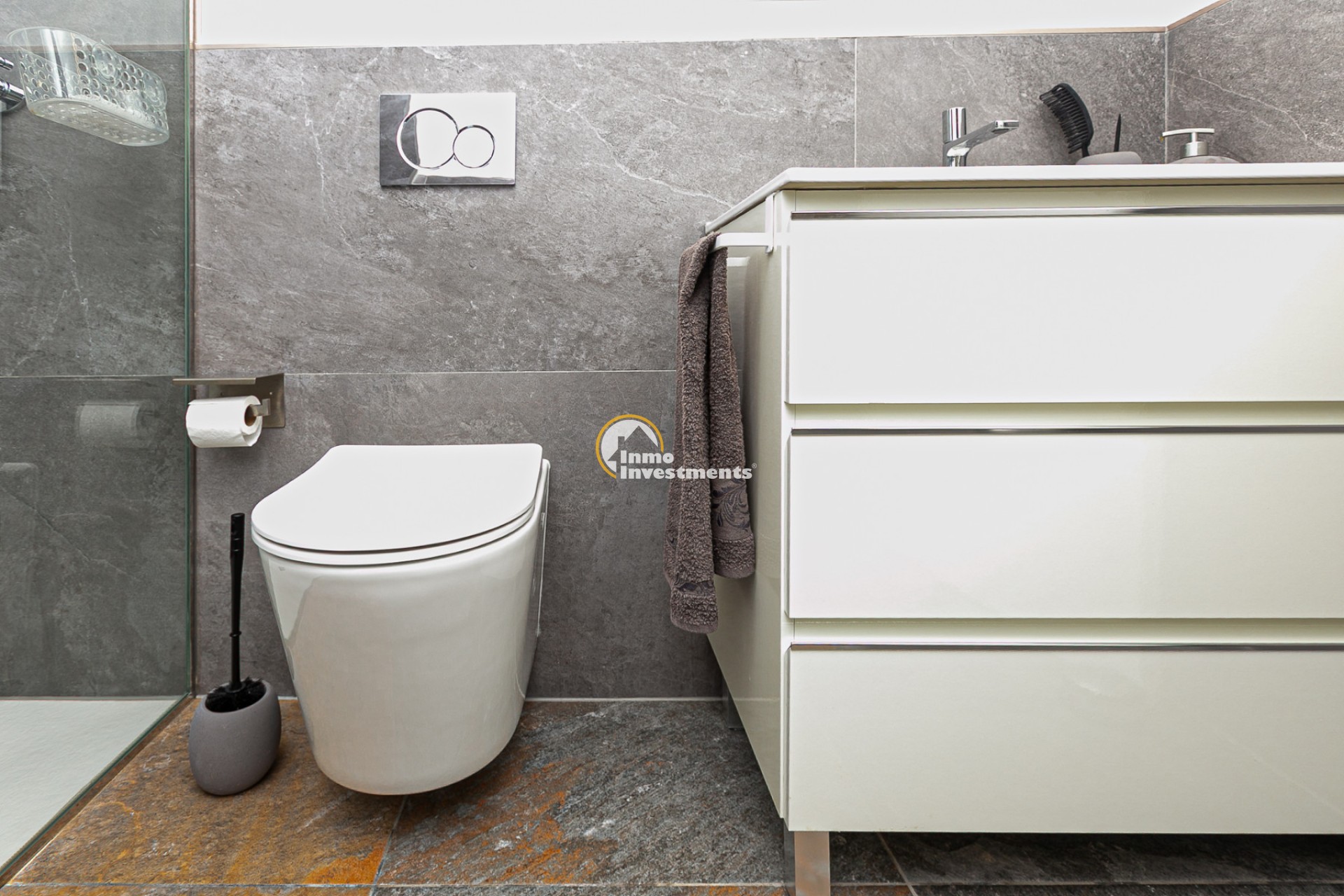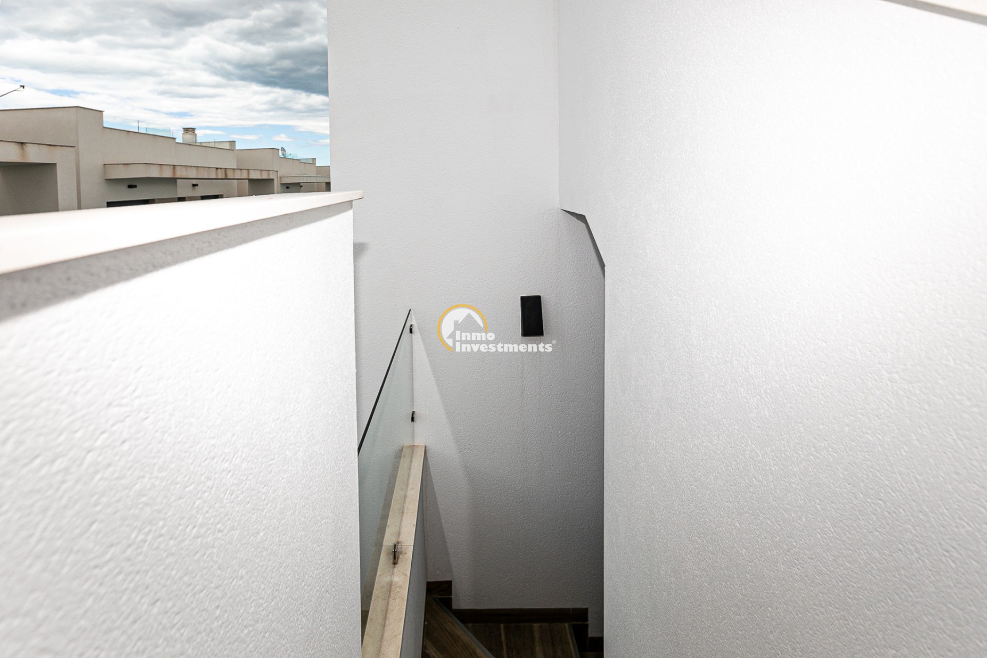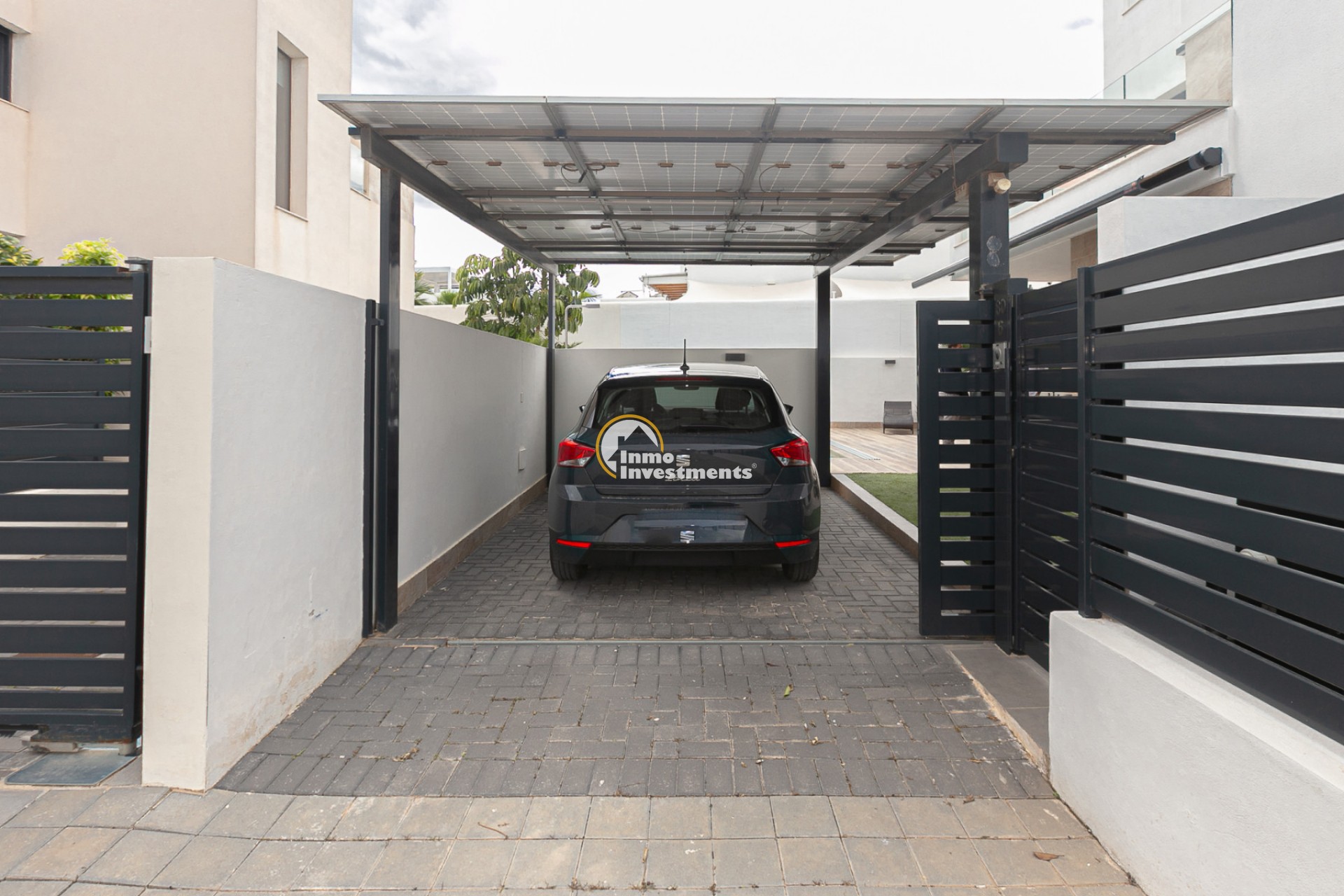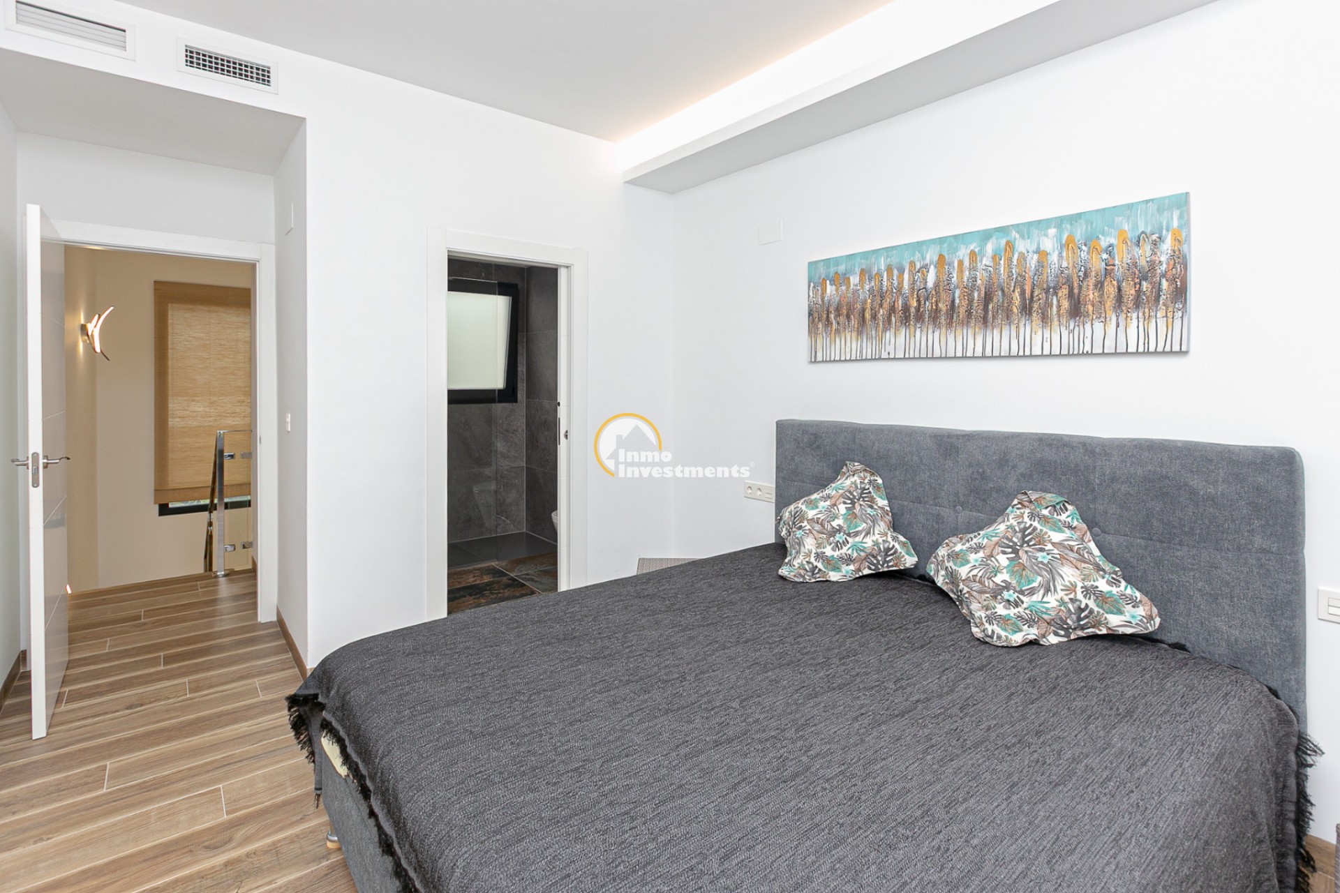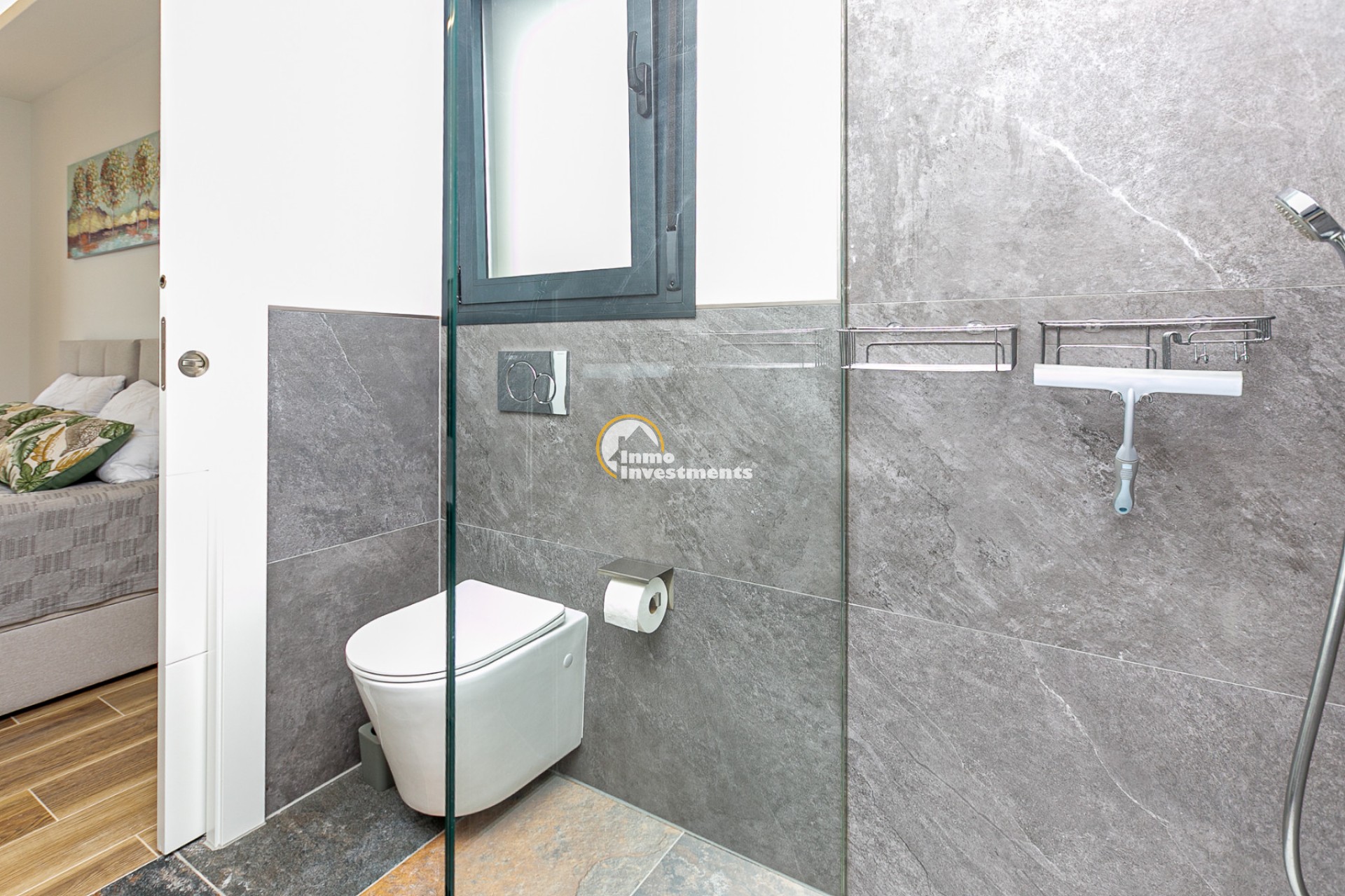 Au premier étage, accessible par un escalier avec éclairage LED intégré qui apporte une touche sophistiquée, nous trouvons deux grandes chambres, toutes deux avec placards intégrés et salle de bain en suite avec douche. Les salles de bain disposent de sanitaires suspendus et de réservoirs encastrés, suivant un design contemporain. De plus, toutes les fenêtres sont équipées de moustiquaires et les chambres donnent accès à un balcon privé.
