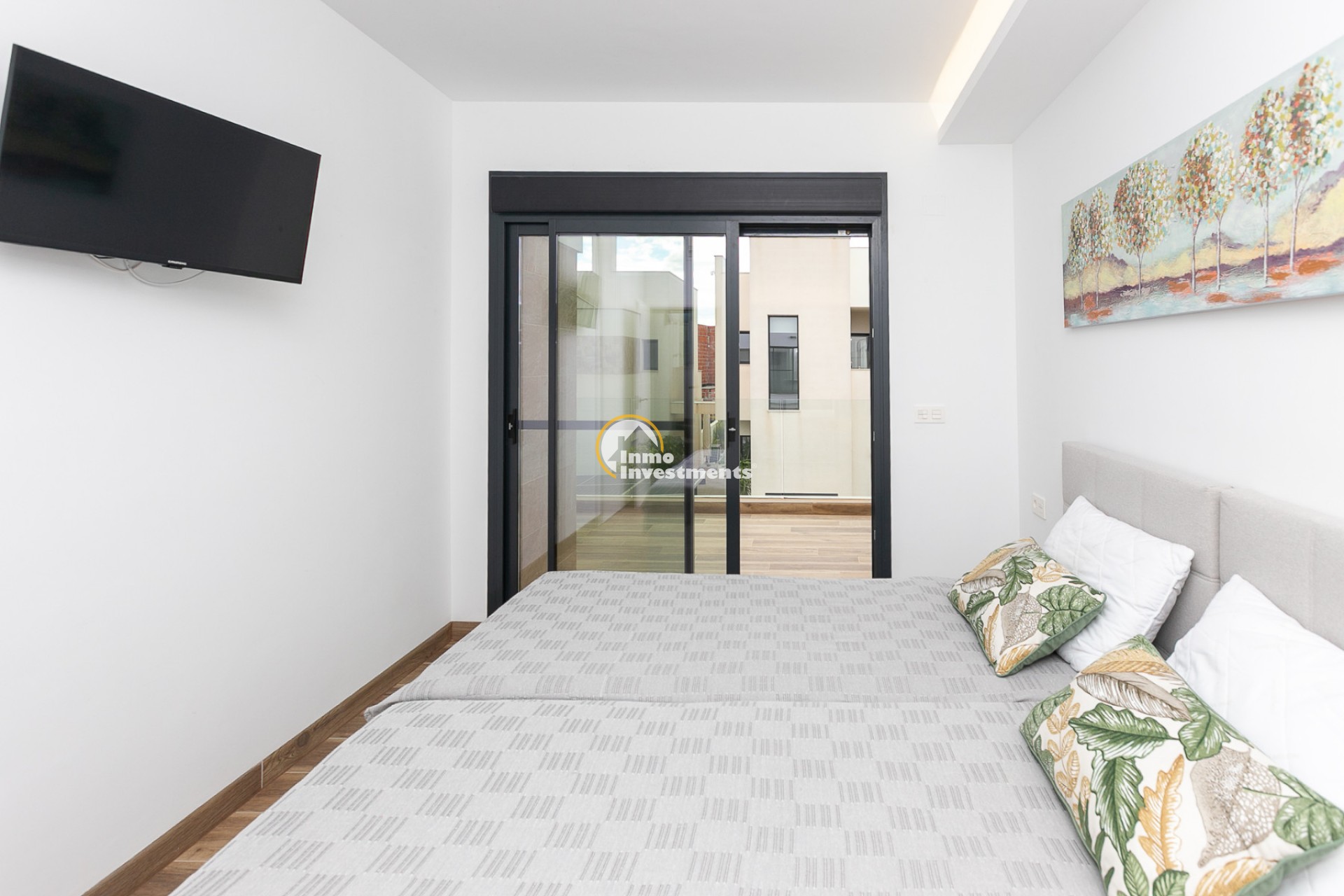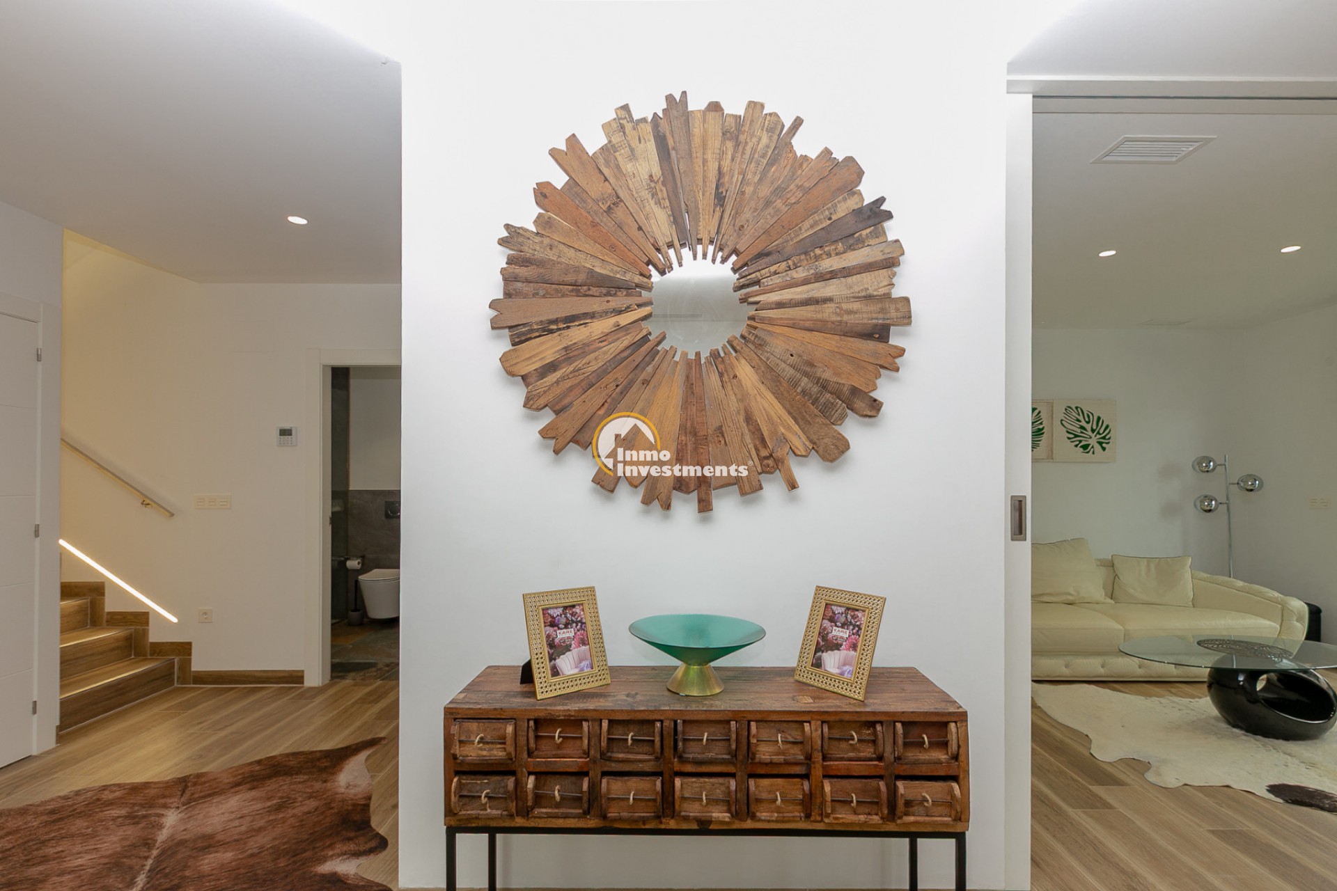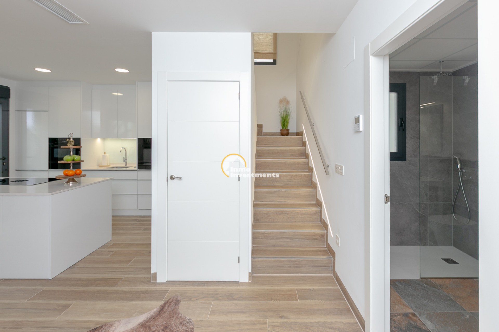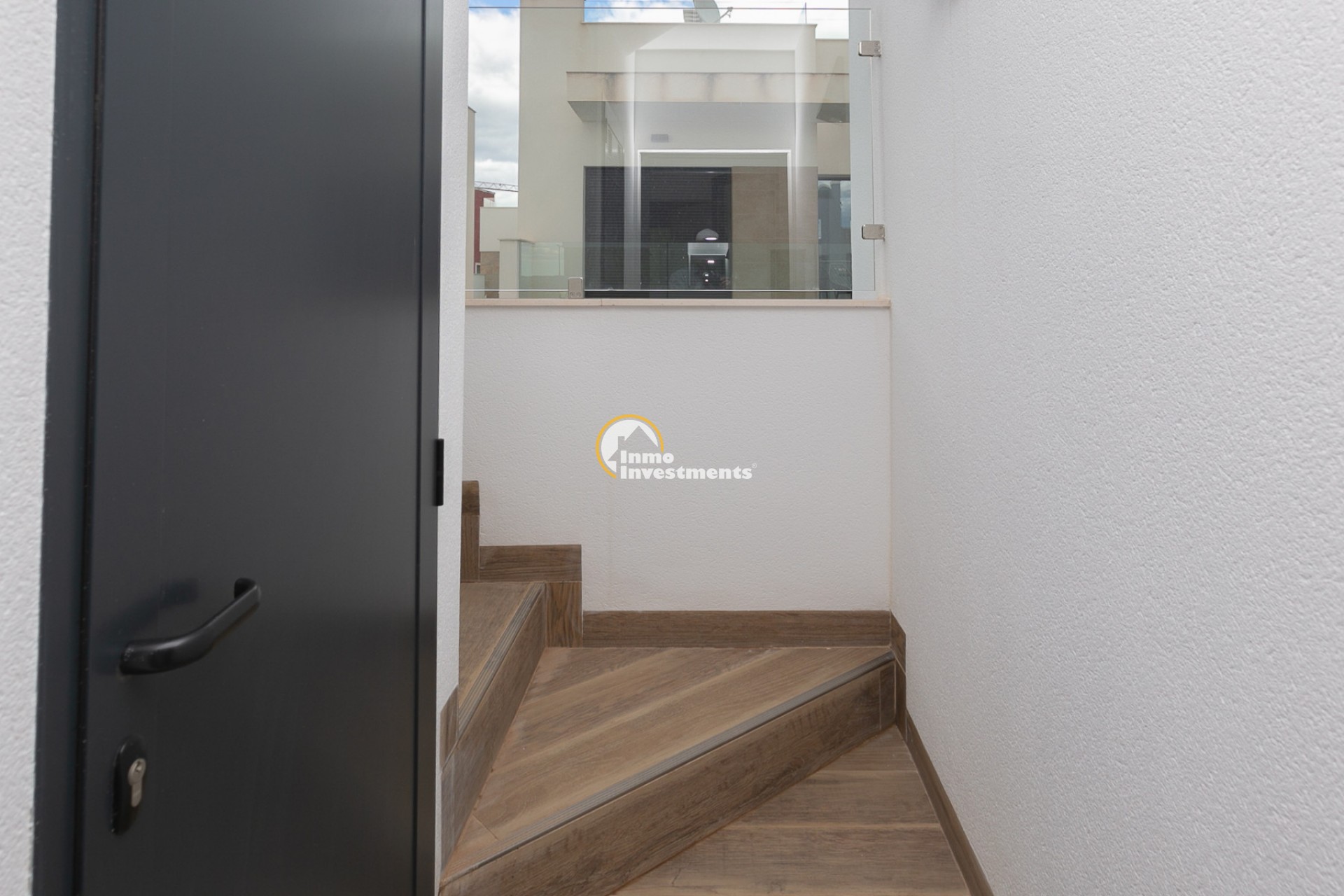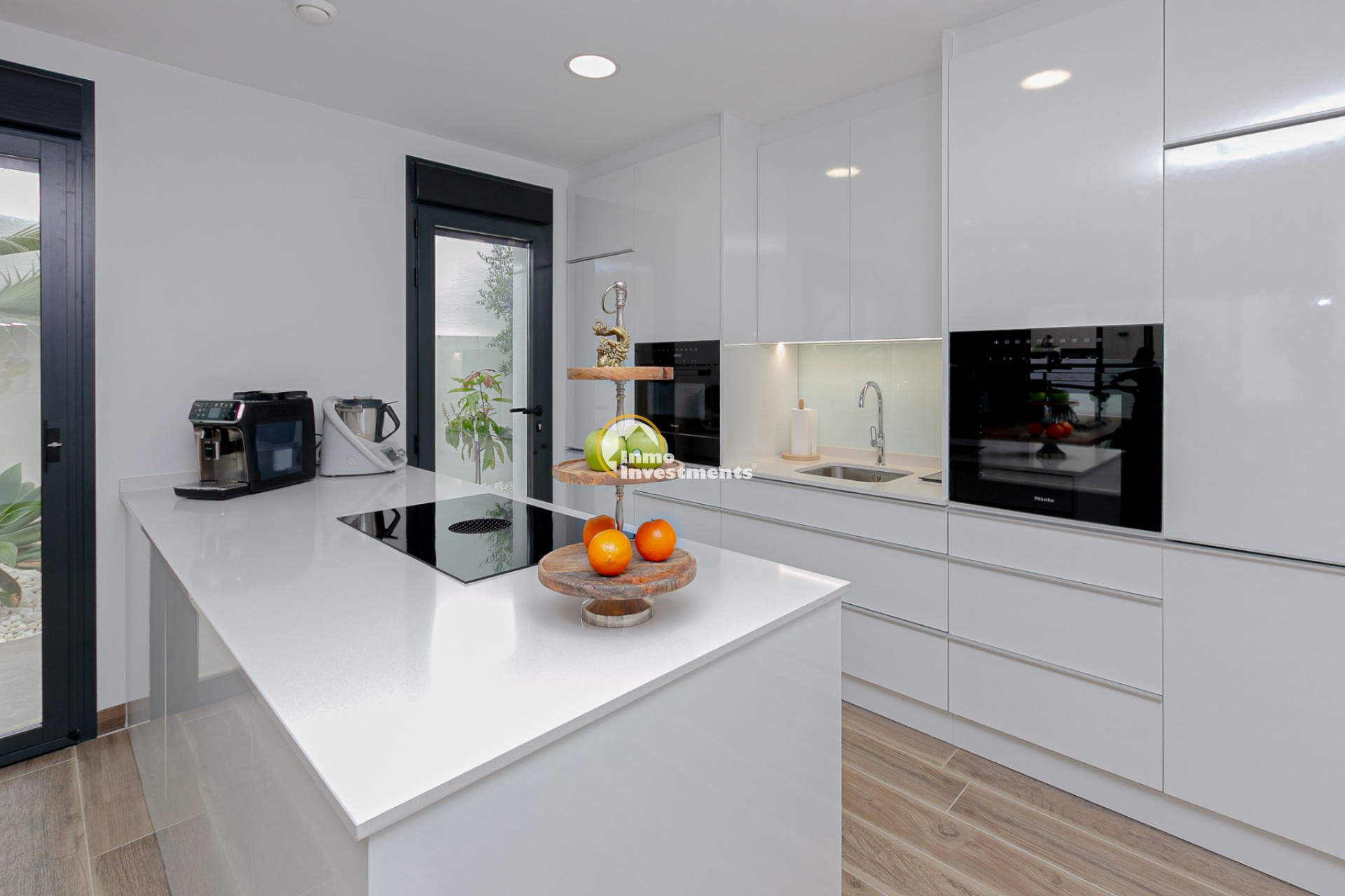 Au premier étage, accessible par un escalier avec éclairage LED intégré qui apporte une touche sophistiquée, nous trouvons deux grandes chambres, toutes deux avec placards intégrés et salle de bain en suite avec douche. Les salles de bain disposent de sanitaires suspendus et de réservoirs encastrés, suivant un design contemporain. De plus, toutes les fenêtres sont équipées de moustiquaires et les chambres donnent accès à un balcon privé.