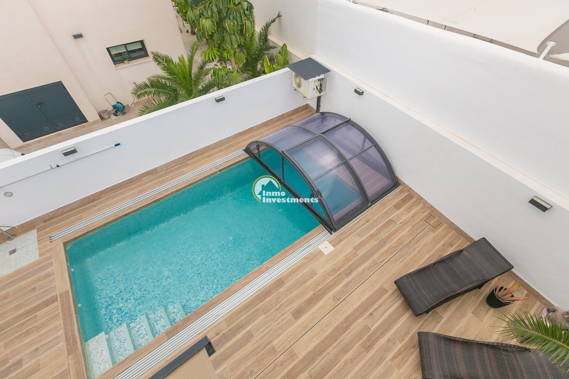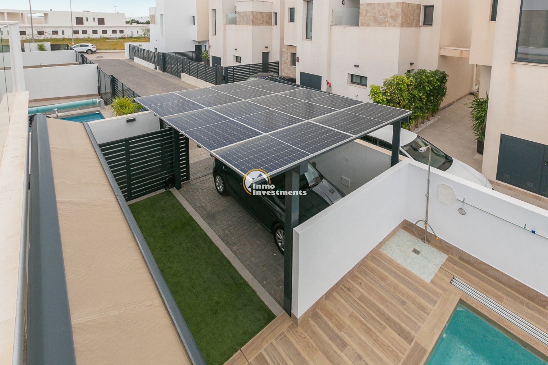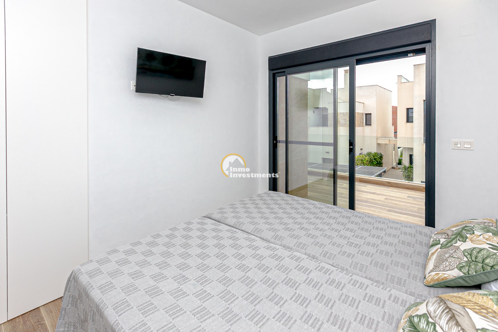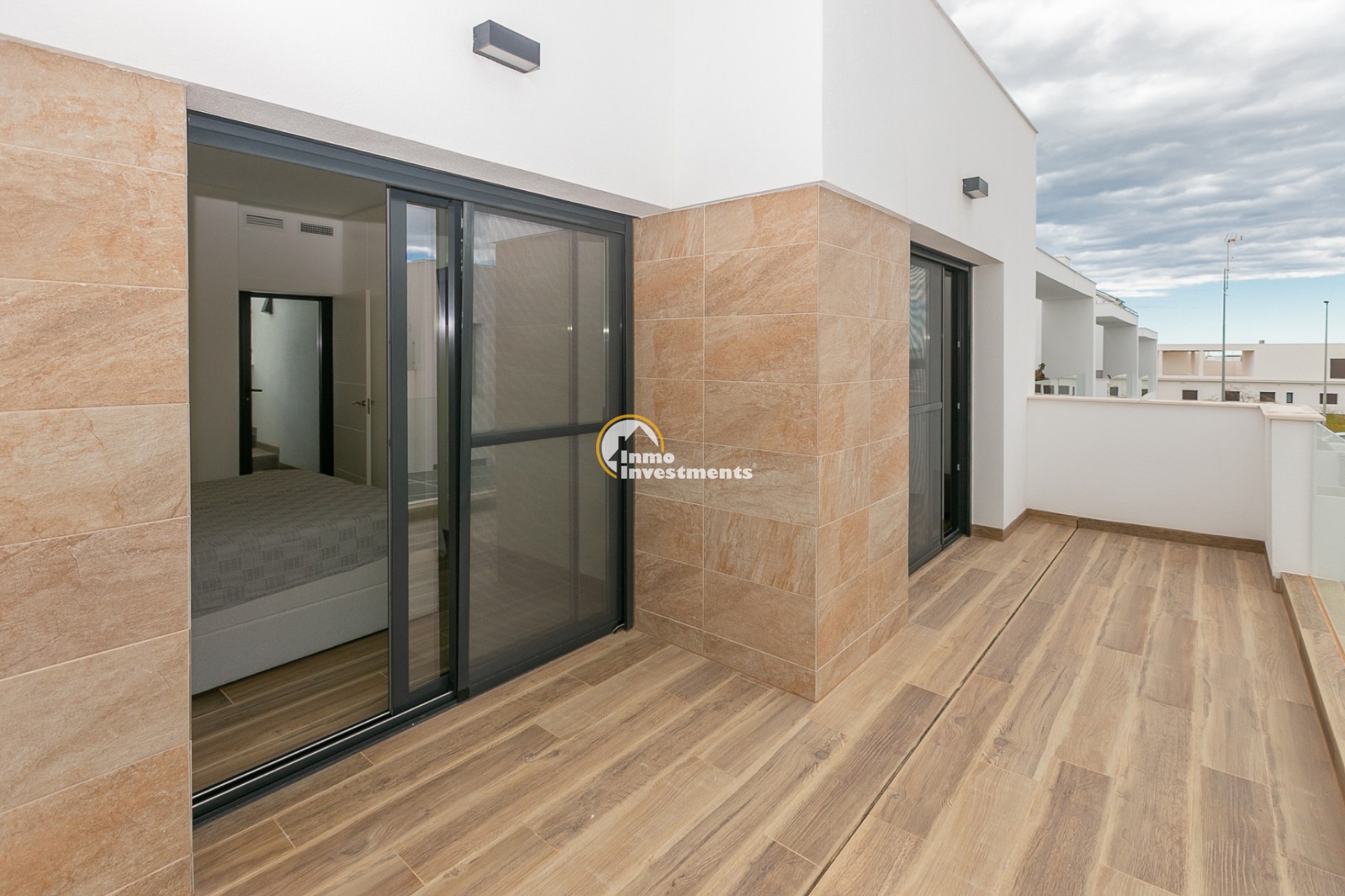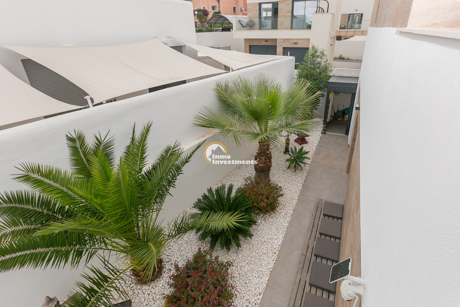 Au premier étage, accessible par un escalier avec éclairage LED intégré qui apporte une touche sophistiquée, nous trouvons deux grandes chambres, toutes deux avec placards intégrés et salle de bain en suite avec douche. Les salles de bain disposent de sanitaires suspendus et de réservoirs encastrés, suivant un design contemporain. De plus, toutes les fenêtres sont équipées de moustiquaires et les chambres donnent accès à un balcon privé.