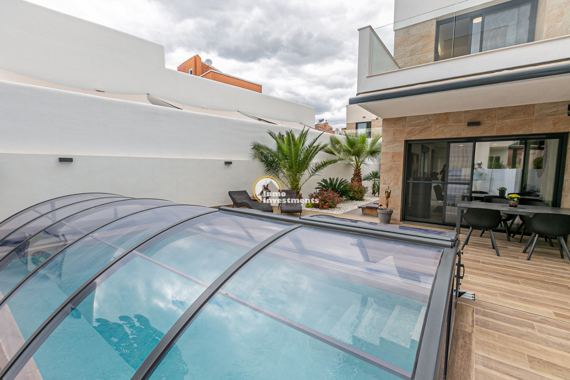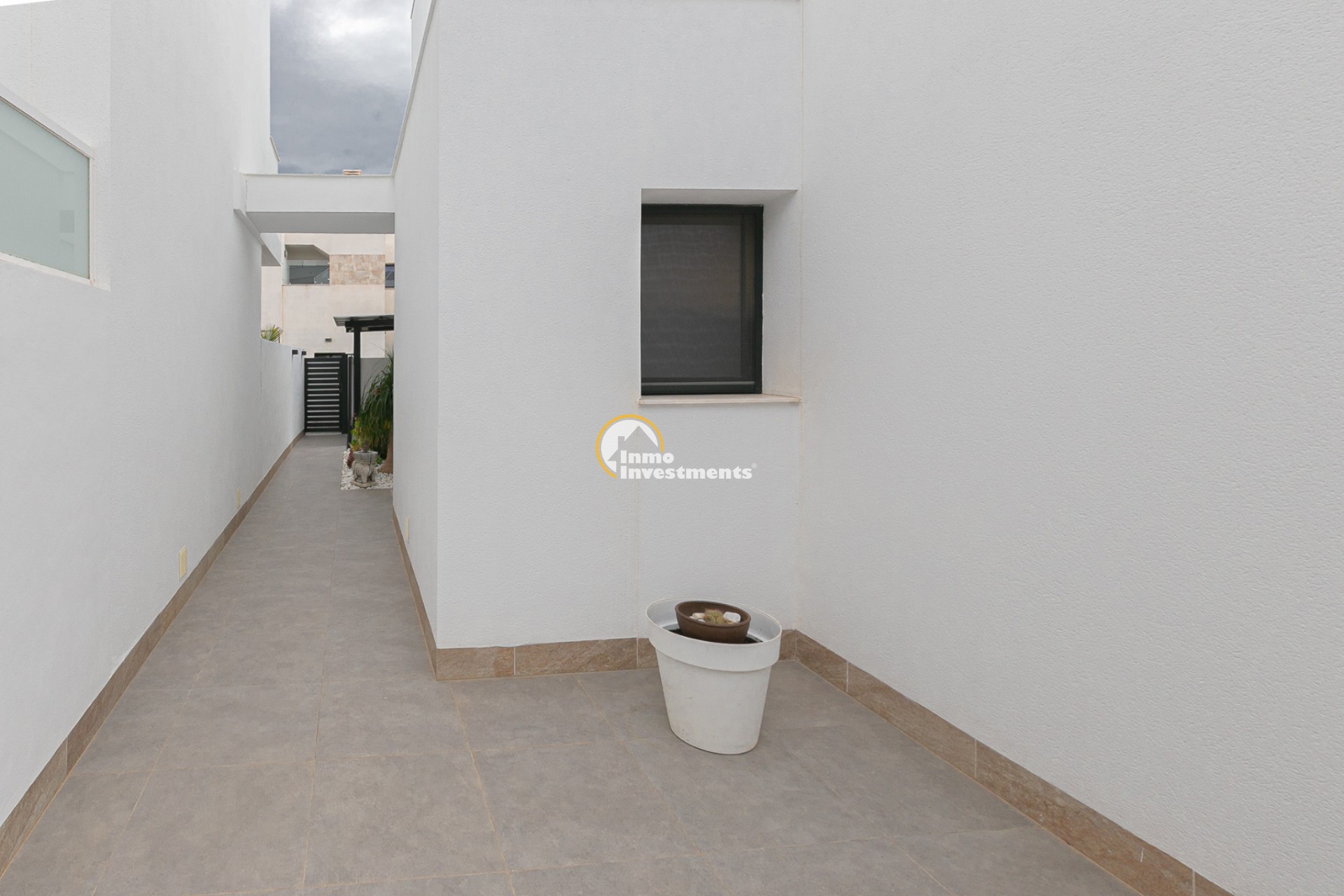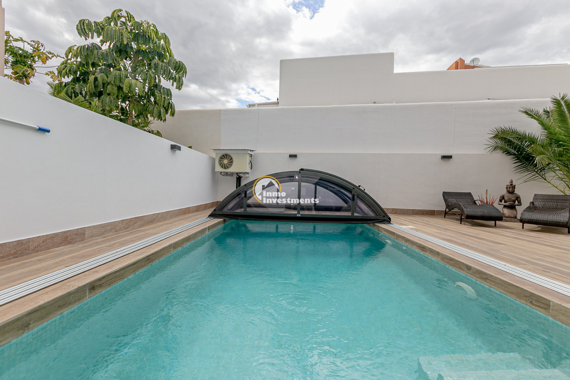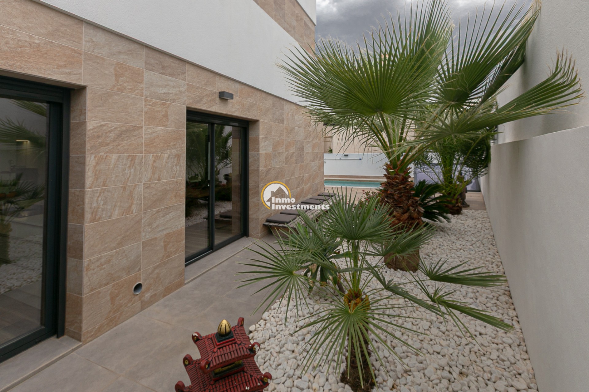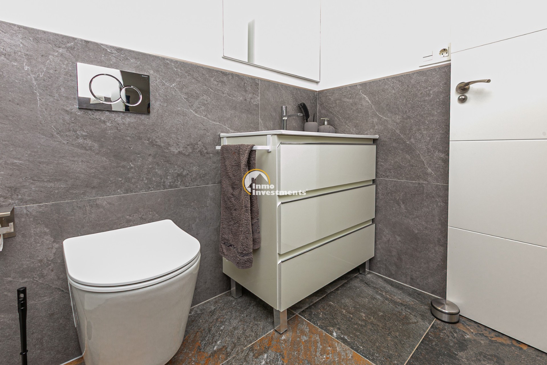 Au premier étage, accessible par un escalier avec éclairage LED intégré qui apporte une touche sophistiquée, nous trouvons deux grandes chambres, toutes deux avec placards intégrés et salle de bain en suite avec douche. Les salles de bain disposent de sanitaires suspendus et de réservoirs encastrés, suivant un design contemporain. De plus, toutes les fenêtres sont équipées de moustiquaires et les chambres donnent accès à un balcon privé.