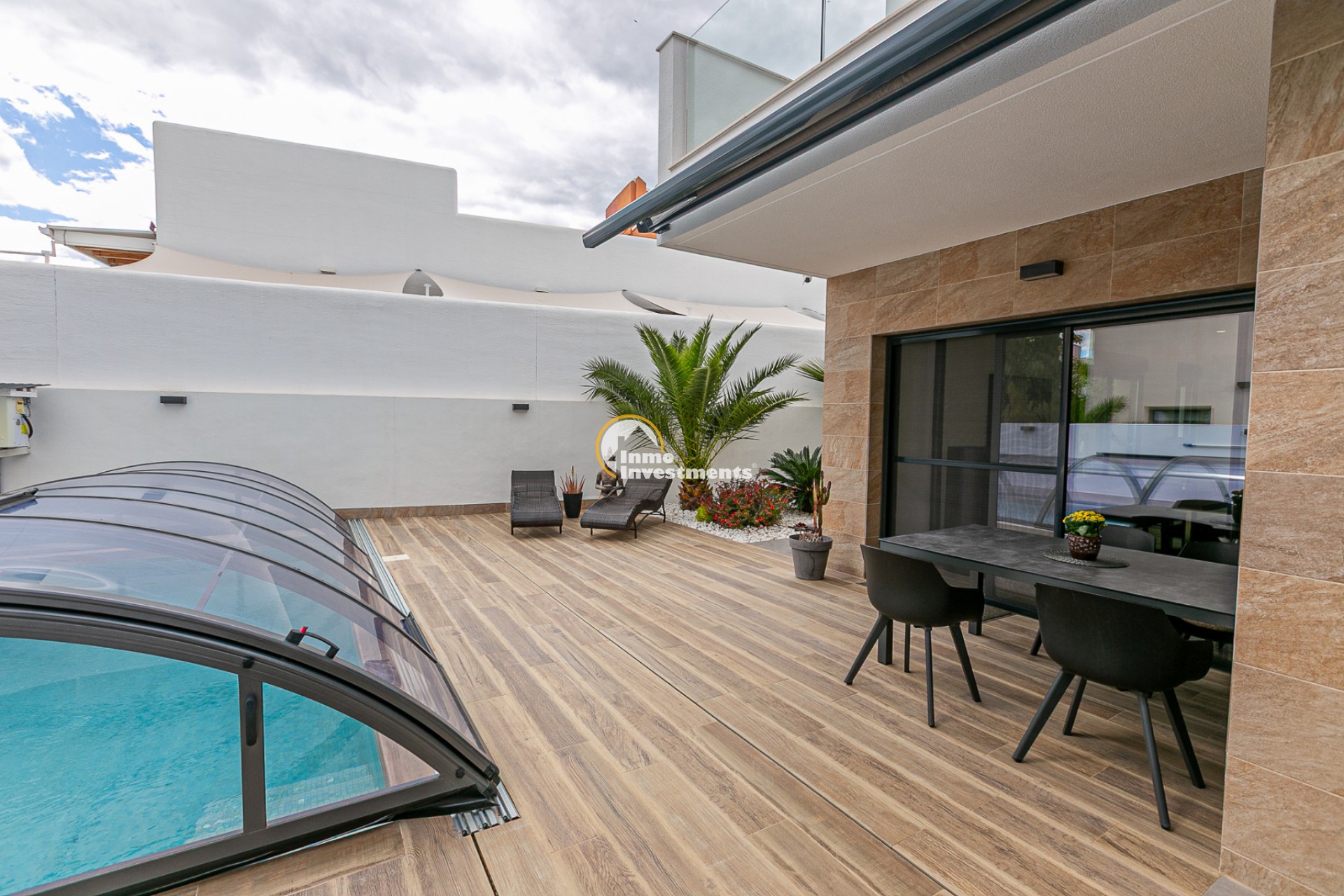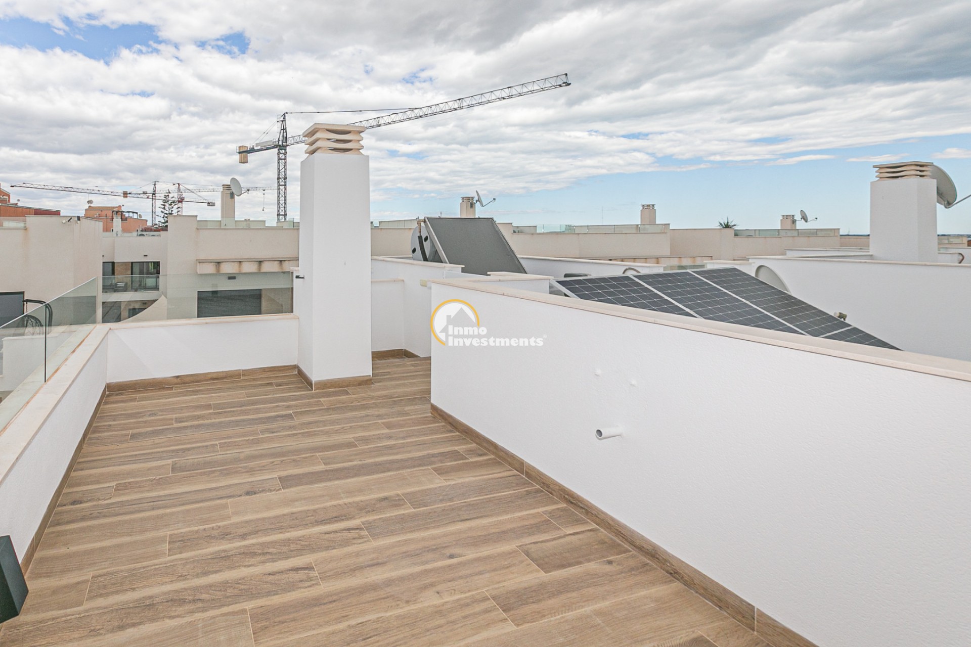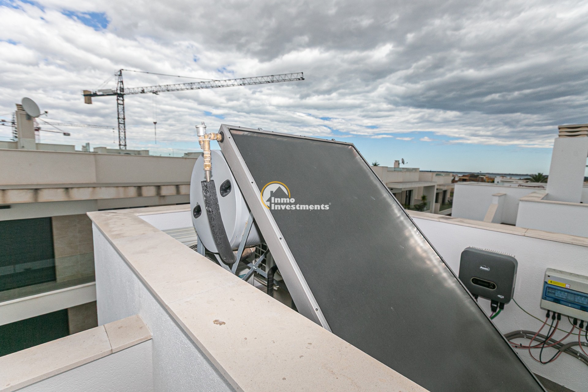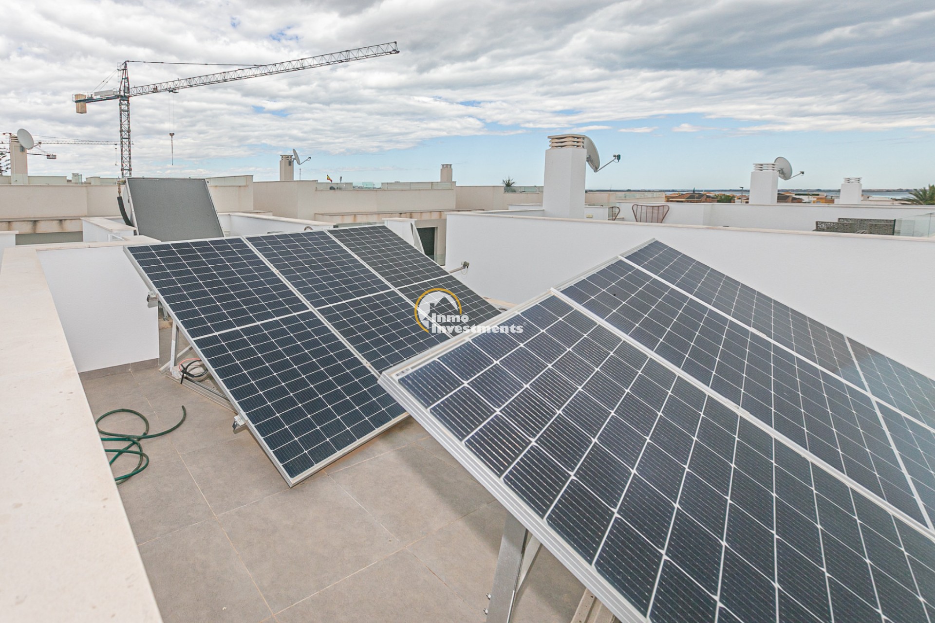 À l’étage supérieur, nous trouvons avant l’accès un autre espace de rangement pratique, et enfin un grand solarium avec des vues impressionnantes sur les lagunes Laguna Rosa de Torrevieja et Laguna de La Mata, ainsi que des vues partielles sur la mer, créant un espace unique pour se détendre ou profiter de l’environnement.