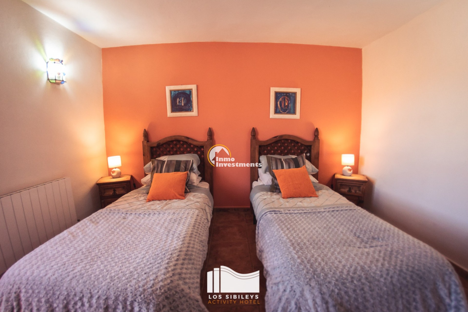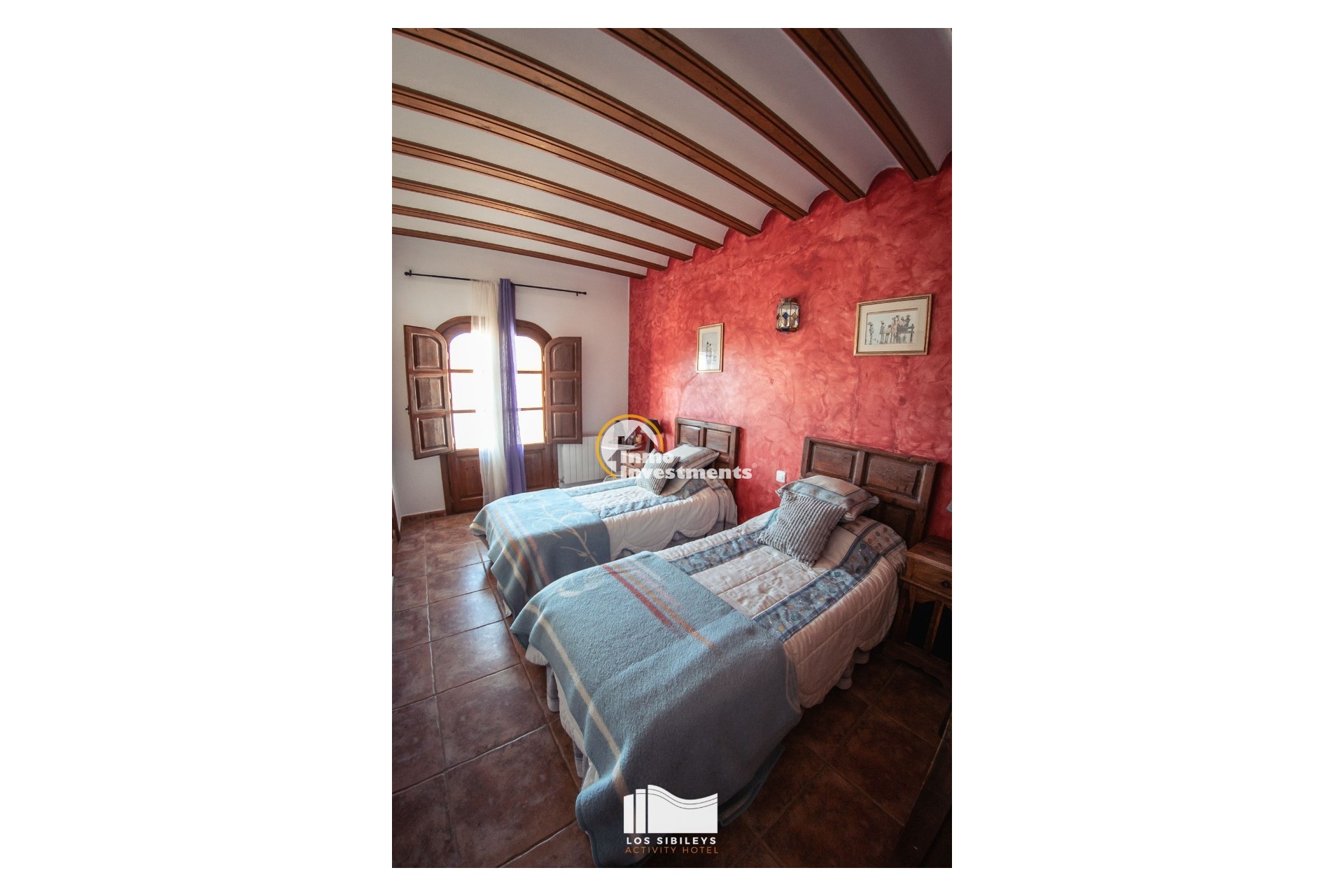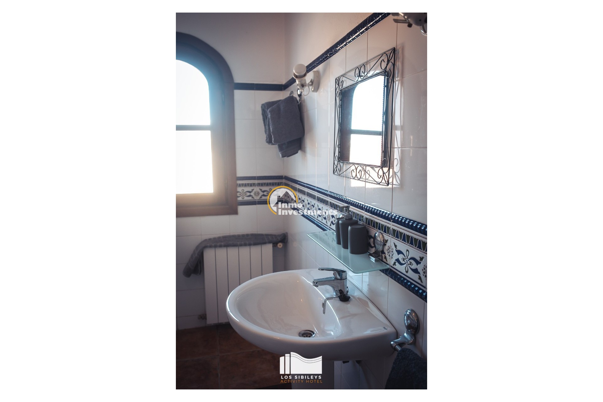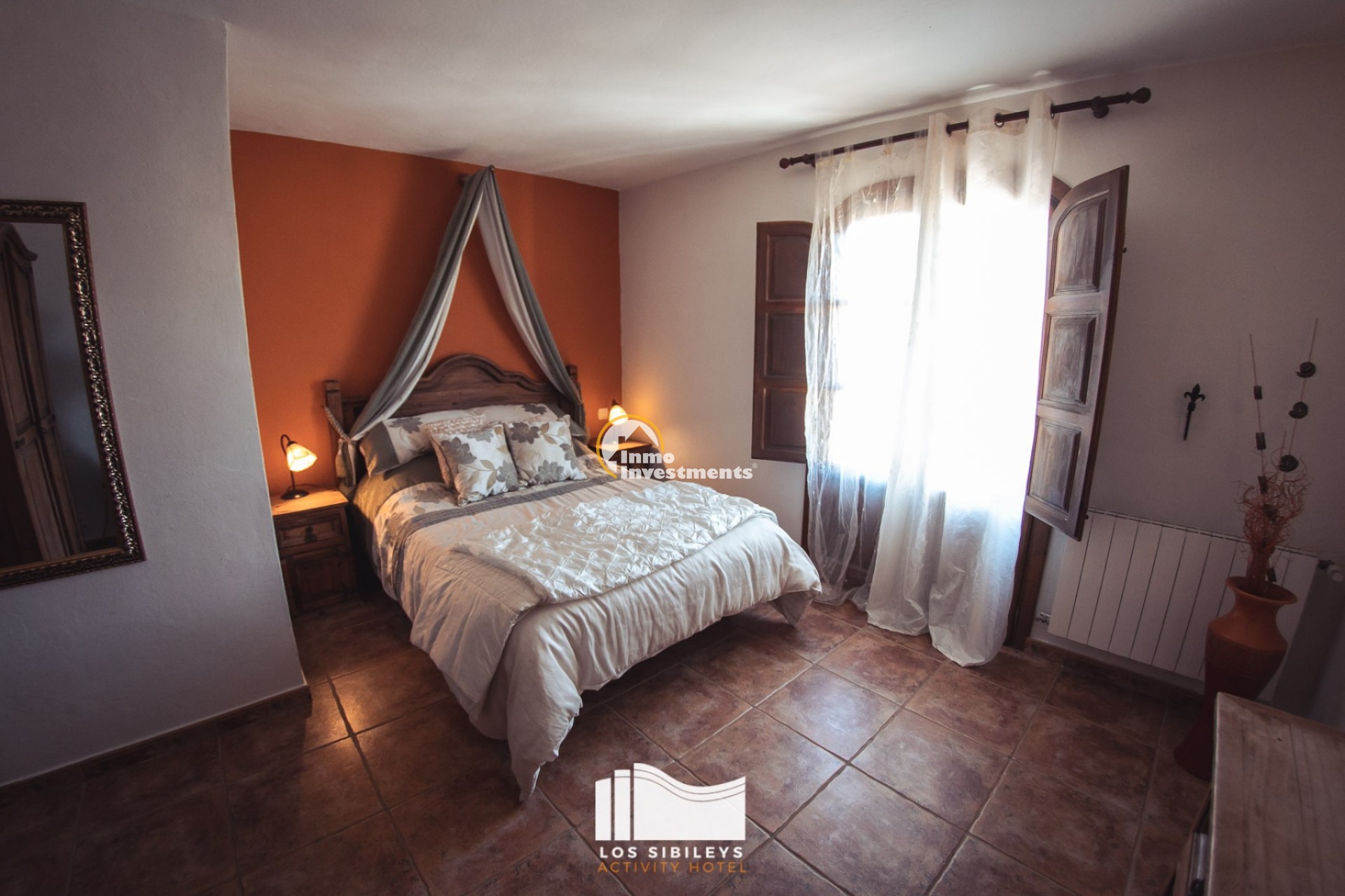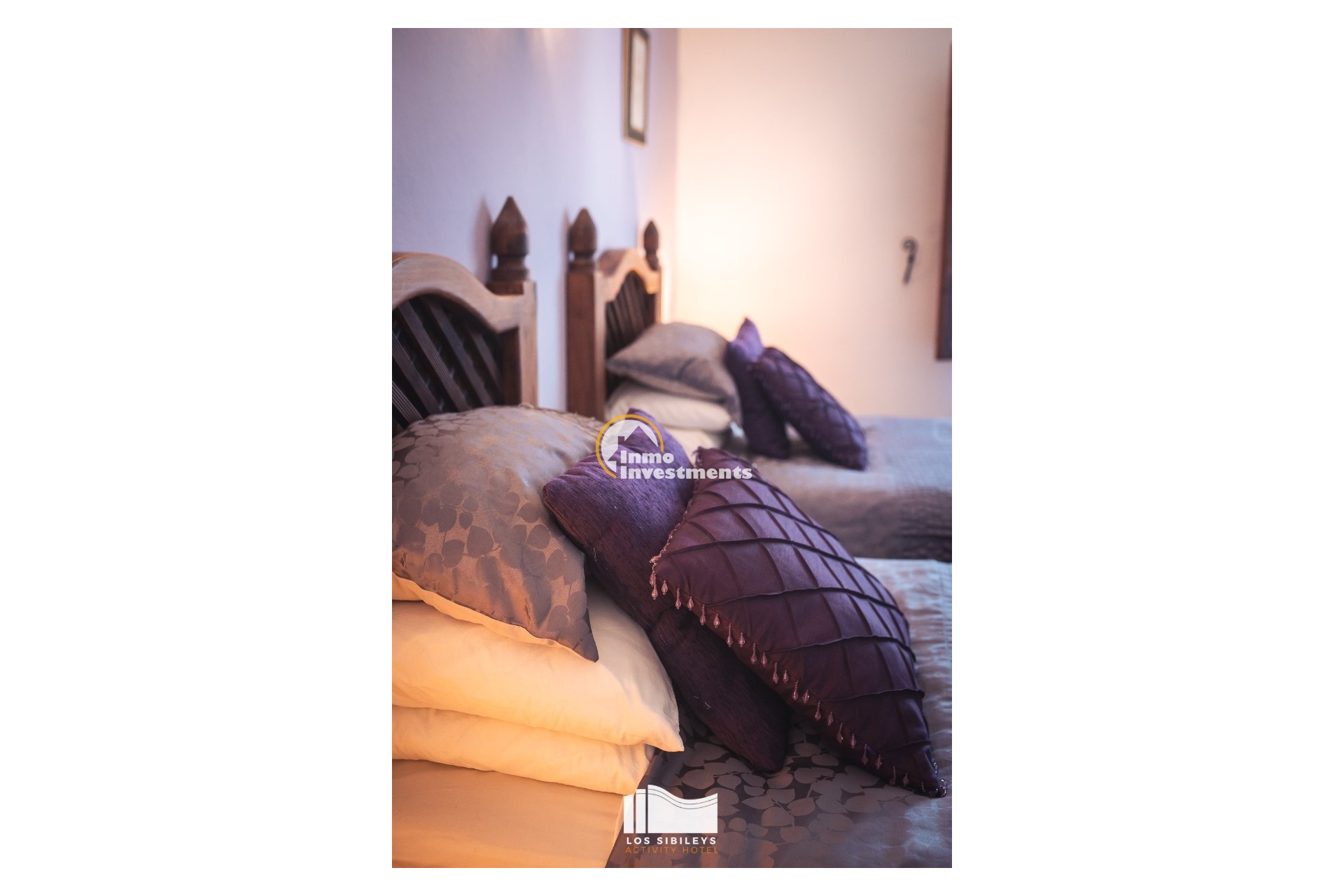 Deze waanzinnige parel is dé ideale refuge voor de rustzoeker.Omgeven door hectaren aan olijf- en amandelbomen bevindt zich de Finca genaamd Los Sibileys.Dit gebouw dateert van ongeveer 1822 en is dus 200 jaar oud.In 2005 hebben de eigenaars het volledig gerenoveerd en is het tot op vandaag in perfecte staat. In de prijs zit ook een hotellicentie, die tegenwoordig nog erg moeiljk te bekomen is.Het heeft sinds 2005 dus gediend als een hotel voor motorijders, mountainbikers en wandelaars.De keuken is voorzien van de beste apparatuur, dit omdat de eigenaars beiden chefs zijn.Alle kamers (6) zijn voorzien van een en-suite badkamer. Daarbij is er ook nog één volledig appartement wat het totale aantal kamers op 7 brengt.Al de meubels blijven staan, behalve de persoonlijke spullen.En het zwembad is op 03/08/22 volledig vernieuwd. Contacteer ons gerust voor meer informatie of een bezichtiging!