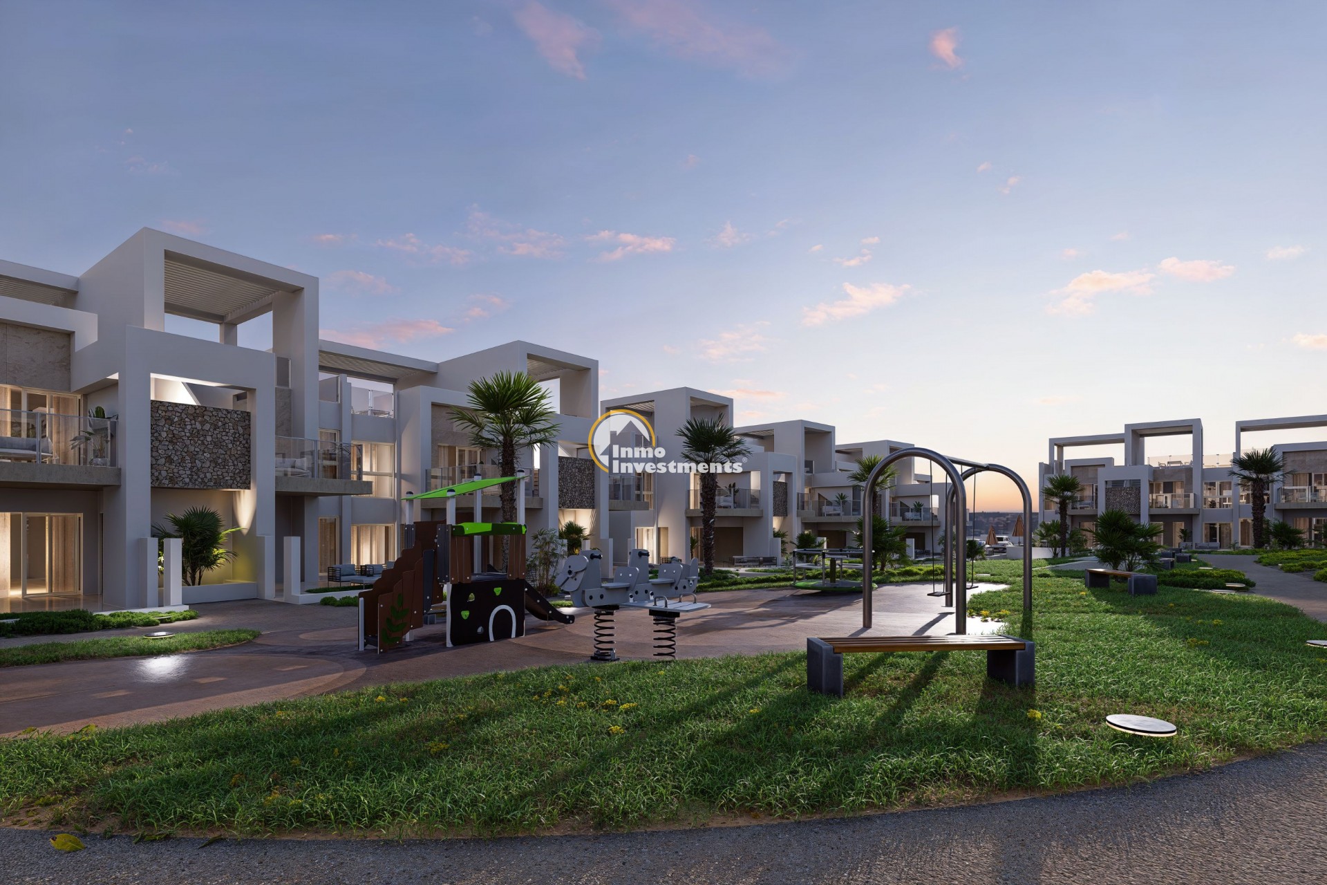 heeft uitstekende gemeenschappelijke ruimtes, waaronder gemeenschappelijke zwembaden die perfect zijn om te genieten van momenten van ontspanning en recreatie met het gezin. De solariums en terrassen zijn ontworpen om te profiteren van het goede weer en het natuurlijke licht, waardoor een comfortabele en exclusieve omgeving voor de bewoners wordt gecreëerd.