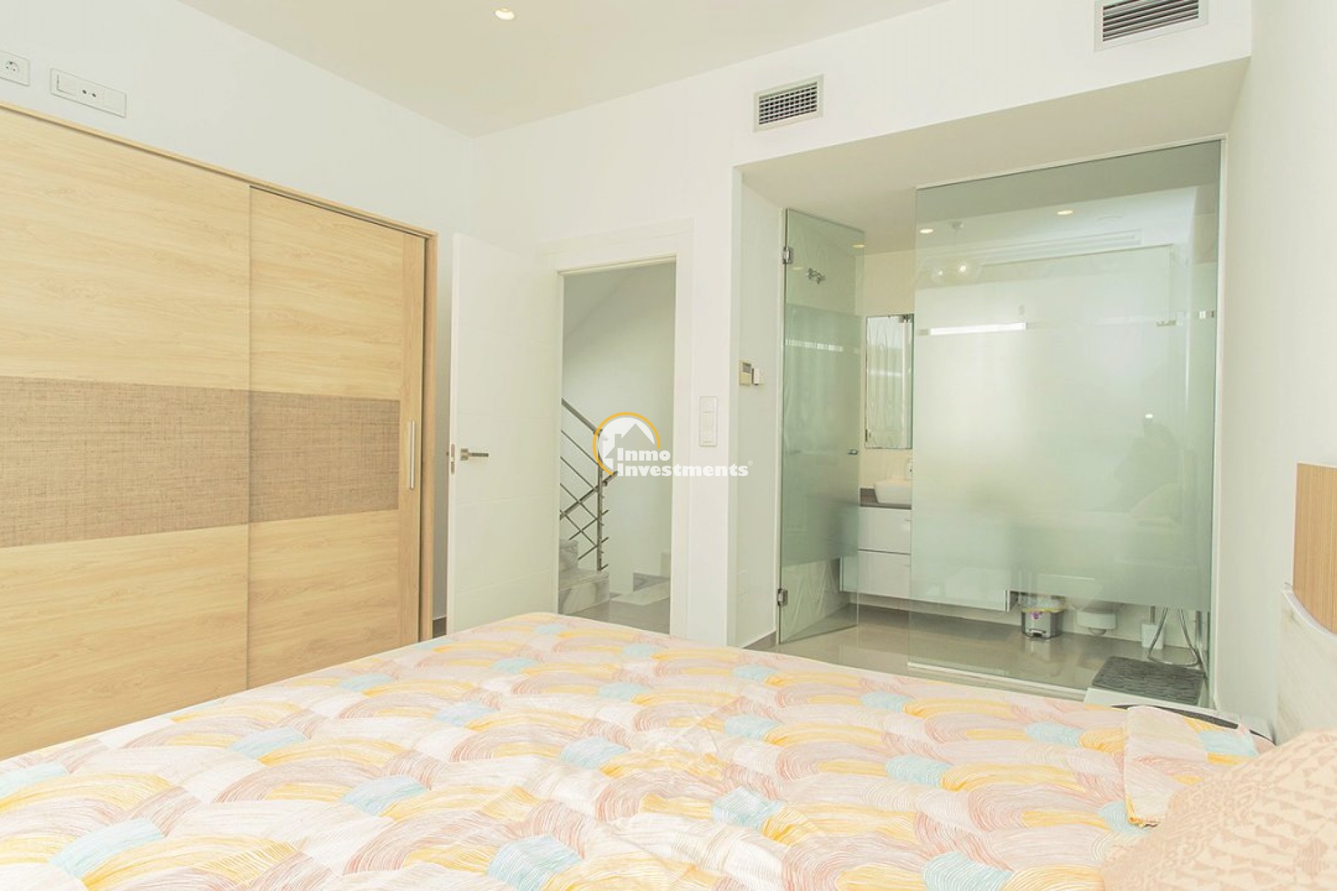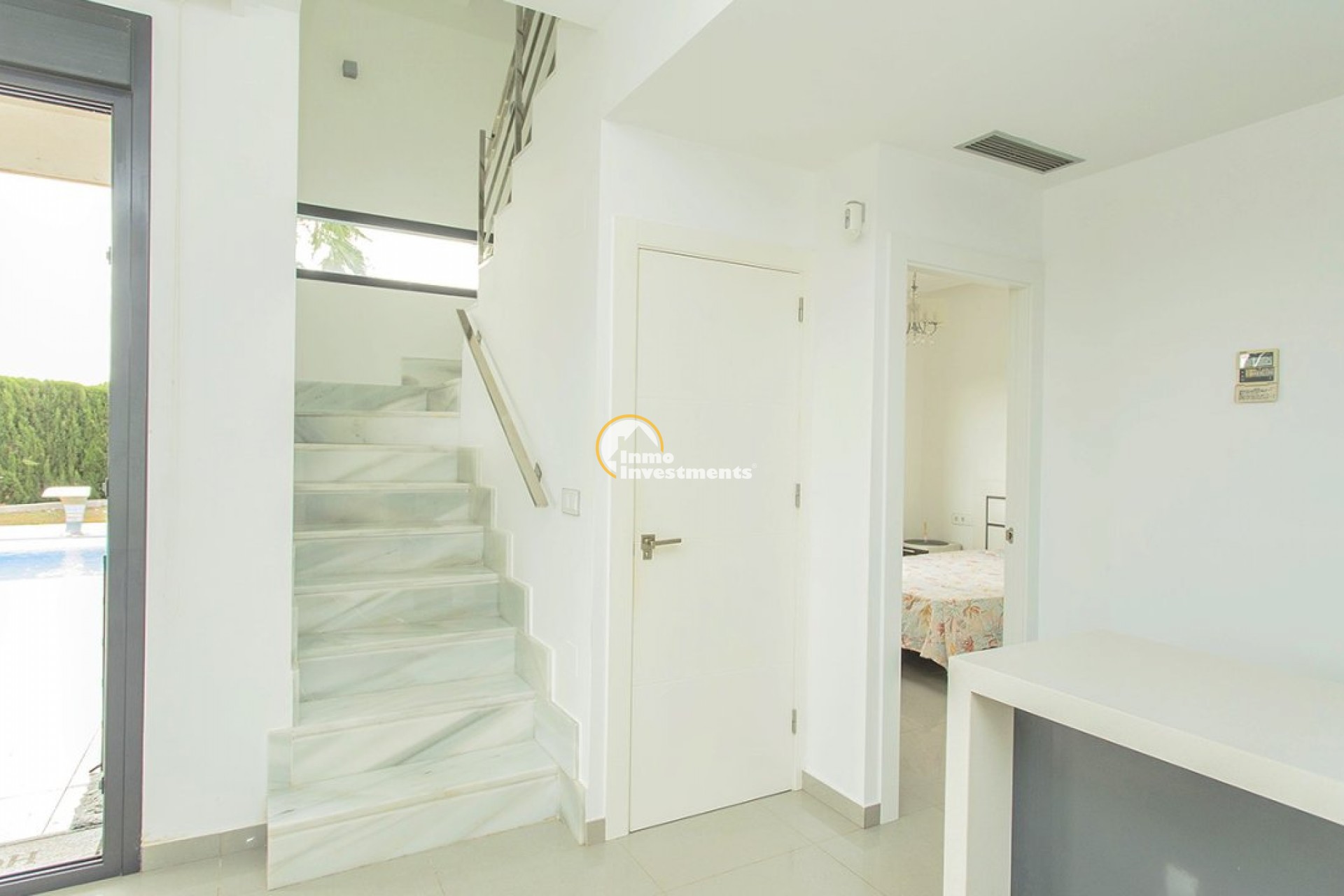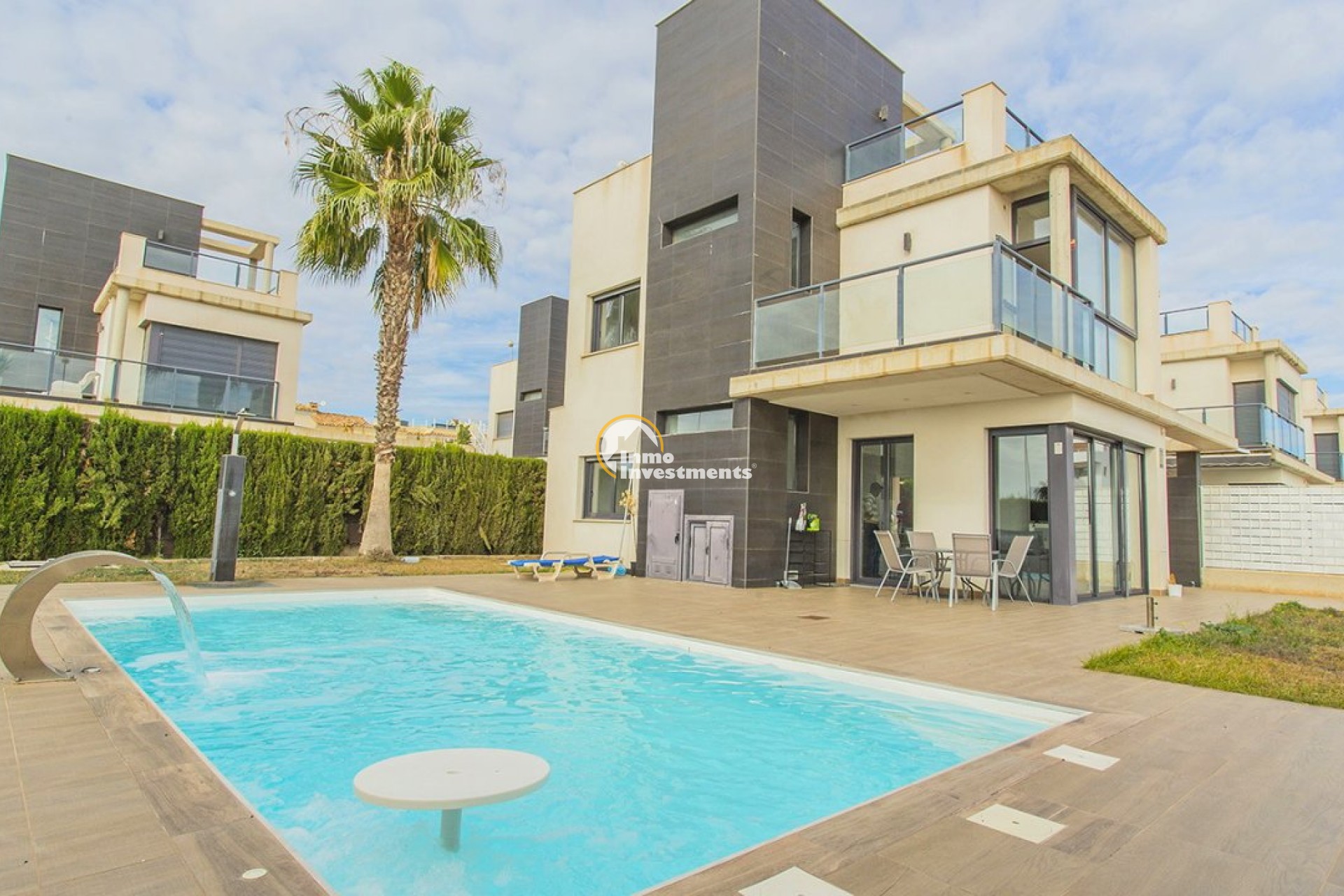 Unieke villa met 3 slaapkamers en 3 badkamers verdeeld over twee niveaus. Op de eerste verdieping vindt u een open keuken en woonkamer, een eetkamer en een slaapkamer met ensuite badkamer en inbouwkast. Vanuit de woonkamer heeft u via grote gepolijste schuifdeuren direct toegang tot de tuin. Op de tweede verdieping vindt u twee slaapkamers met en-suite badkamers en inbouwkasten. Het gehele interieur van het huis is ontworpen en uitgevoerd door interieurontwerpers. Door de hele villa vindt u perfect op elkaar afgestemde LED-verlichting, lampen en meubilair. Tevens is de woning voorzien van een video-intercom alarmsysteem dat via app te bedienen is. Buitenruimte De villa ligt op een perceel van 500 m2. In de prachtige tuin vindt u een zwembad met voldoende ruimte voor ligstoelen. Het zwembad is voorzien van LED-verlichting. In de tuin vindt u ook een barbecueplek. De villa maakt deel uit van een besloten, omheinde gemeenschap die haar bewoners een hoog niveau van veiligheid biedt. Er is parkeergelegenheid voor één auto op het terrein. Omgeving De villa is gelegen in het exclusieve gebied van Lomas de Cabo Roig in Orihuela Costa. Bars, restaurants en supermarkten vindt u net om de hoek. Op slechts een paar minuten rijden vindt u ook de populaire golfbanen Campoamor, Villamartín en de bekroonde golfbaan Las Colinas. La Zenia Boulevard, het grootste openluchtwinkelcentrum in de provincie Alicante, ligt op slechts 15 minuten lopen. Hier vind je winkels zoals Zara, AlCampo, H&M, Decathlon, Primark, Medimarkt en vele anderen. Op slechts een paar minuten rijden vindt u ook een verscheidenheid aan prachtige stranden.