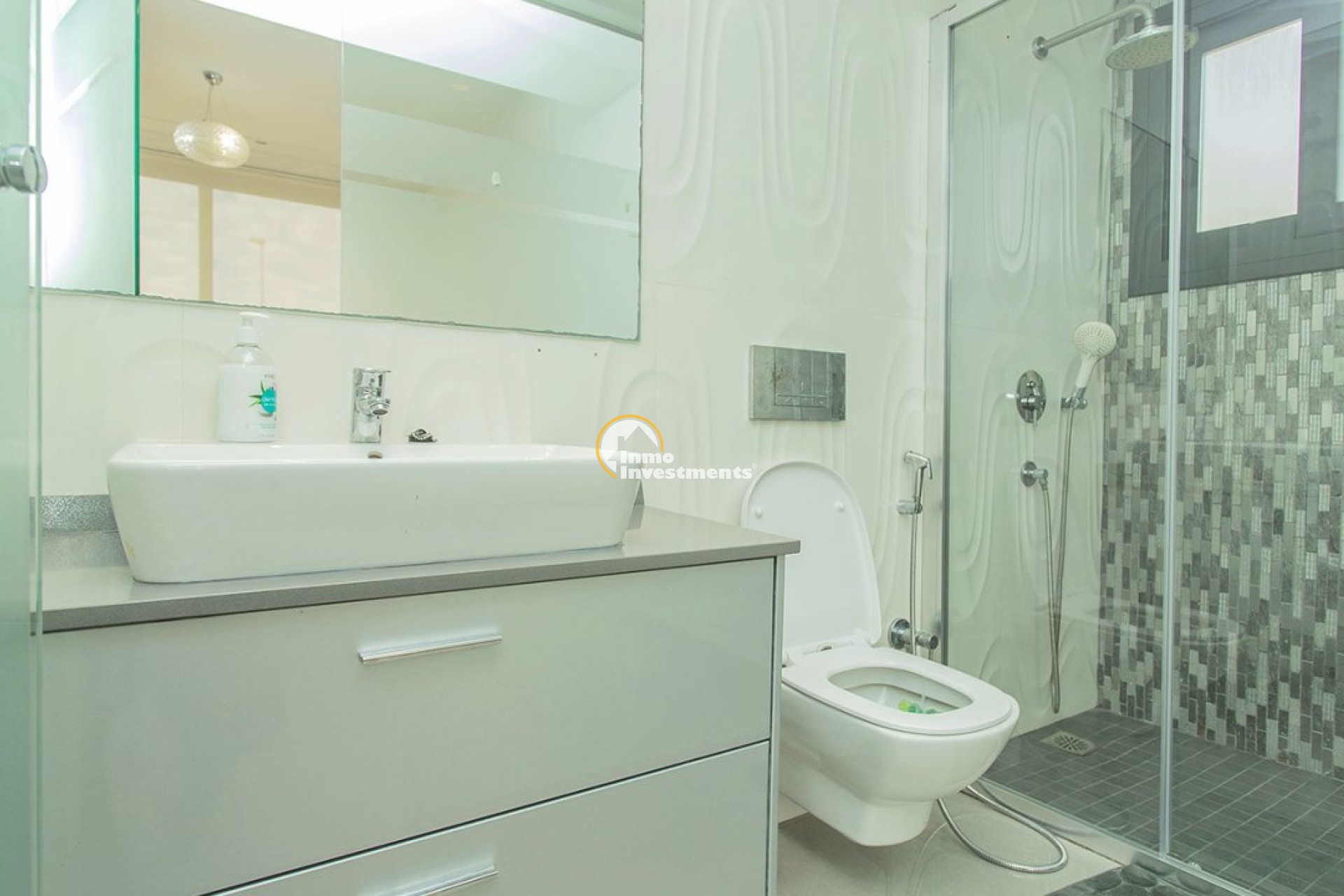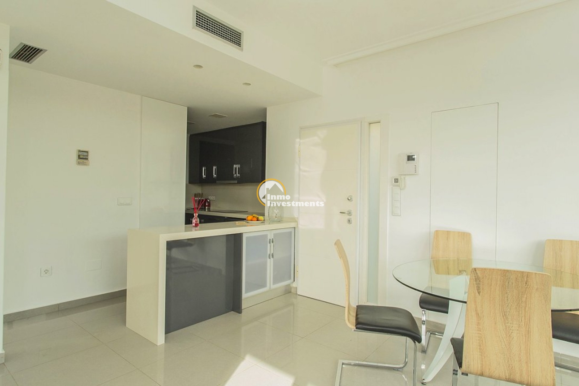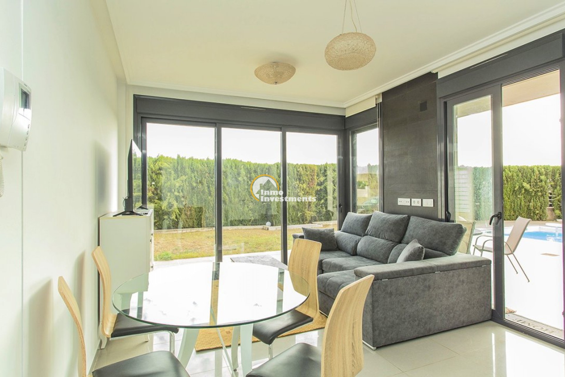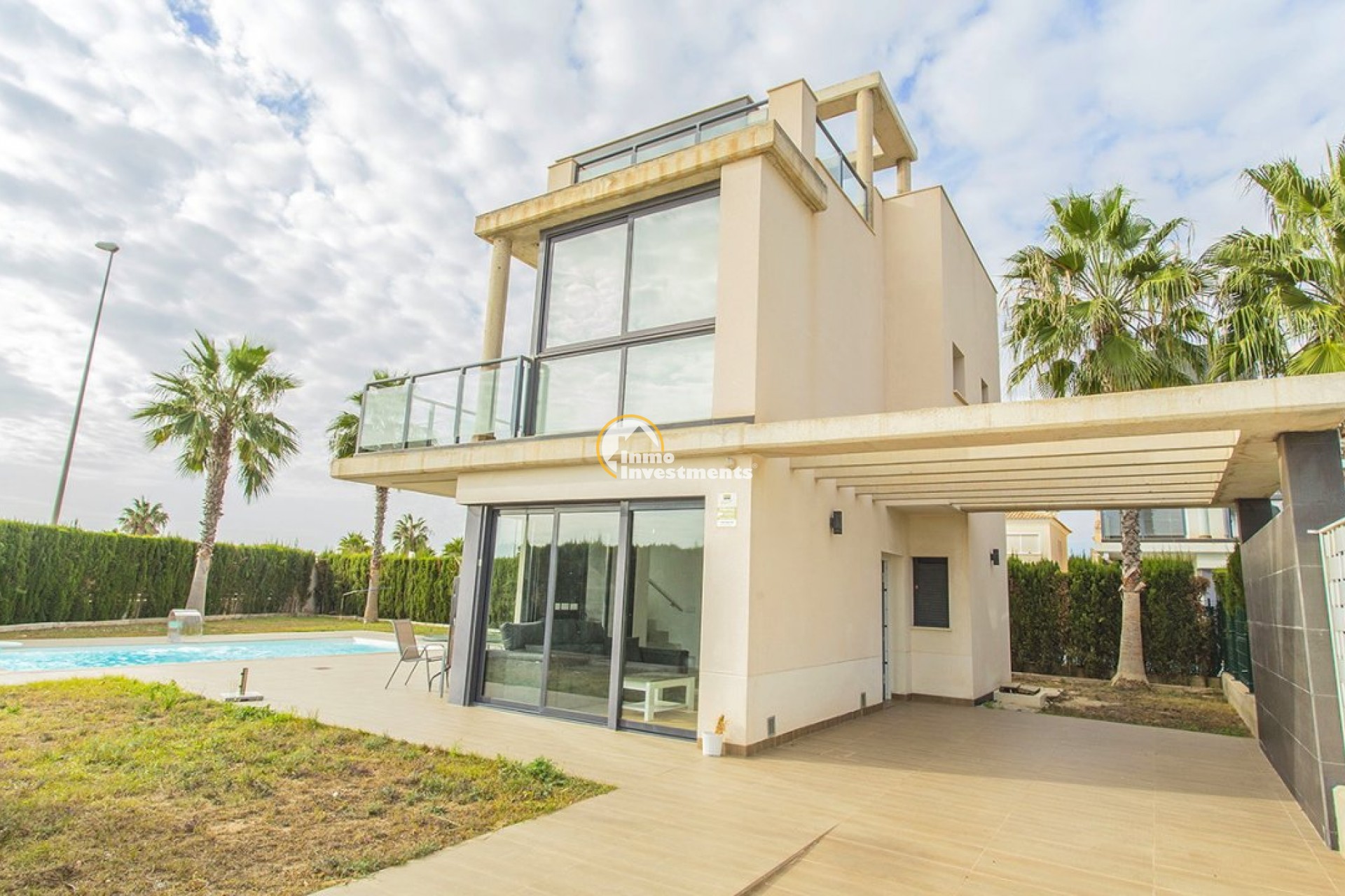 Unieke villa met 3 slaapkamers en 3 badkamers verdeeld over twee niveaus. Op de eerste verdieping vindt u een open keuken en woonkamer, een eetkamer en een slaapkamer met ensuite badkamer en inbouwkast. Vanuit de woonkamer heeft u via grote gepolijste schuifdeuren direct toegang tot de tuin. Op de tweede verdieping vindt u twee slaapkamers met en-suite badkamers en inbouwkasten. Het gehele interieur van het huis is ontworpen en uitgevoerd door interieurontwerpers. Door de hele villa vindt u perfect op elkaar afgestemde LED-verlichting, lampen en meubilair. Tevens is de woning voorzien van een video-intercom alarmsysteem dat via app te bedienen is. Buitenruimte De villa ligt op een perceel van 500 m2. In de prachtige tuin vindt u een zwembad met voldoende ruimte voor ligstoelen. Het zwembad is voorzien van LED-verlichting. In de tuin vindt u ook een barbecueplek. De villa maakt deel uit van een besloten, omheinde gemeenschap die haar bewoners een hoog niveau van veiligheid biedt. Er is parkeergelegenheid voor één auto op het terrein. Omgeving De villa is gelegen in het exclusieve gebied van Lomas de Cabo Roig in Orihuela Costa. Bars, restaurants en supermarkten vindt u net om de hoek. Op slechts een paar minuten rijden vindt u ook de populaire golfbanen Campoamor, Villamartín en de bekroonde golfbaan Las Colinas. La Zenia Boulevard, het grootste openluchtwinkelcentrum in de provincie Alicante, ligt op slechts 15 minuten lopen. Hier vind je winkels zoals Zara, AlCampo, H&M, Decathlon, Primark, Medimarkt en vele anderen. Op slechts een paar minuten rijden vindt u ook een verscheidenheid aan prachtige stranden.