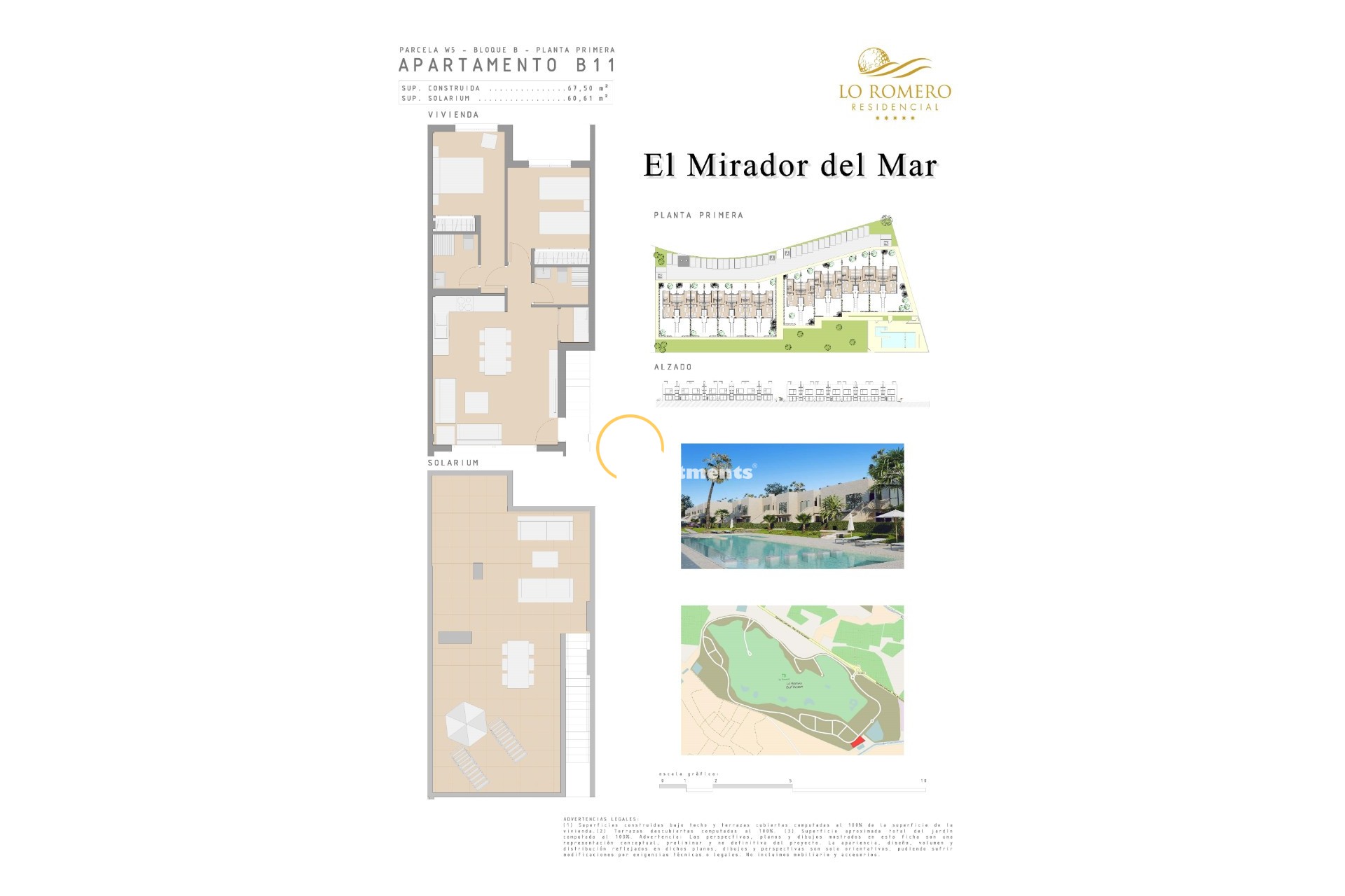 Beschrijving van een bovenwoning in een bungalow gelegen op de golfbaan Lo Romeo. Gelegen binnen het terrein van de golfbaan in een afgesloten woonwijk, heeft deze bovenwoning een solarium met spectaculair uitzicht. De woning heeft twee slaapkamers en twee badkamers met douche (een ervan is en-suite). De woning is op het zuidoosten georiënteerd en wordt gemeubileerd verkocht, inclusief huishoudelijke apparaten en centrale airconditioning. De bungalow heeft een terras van meer dan 60 m2 waar u het hele jaar door van de zon kunt genieten. Het afgesloten woongebied heeft parkeergelegenheid en een gemeenschappelijk zwembad voor alle bewoners. De gemeenschap is voorzien van planten en bomen en heeft kunstgras. Aarzel niet om contact met ons op te nemen voor een bezichtiging.