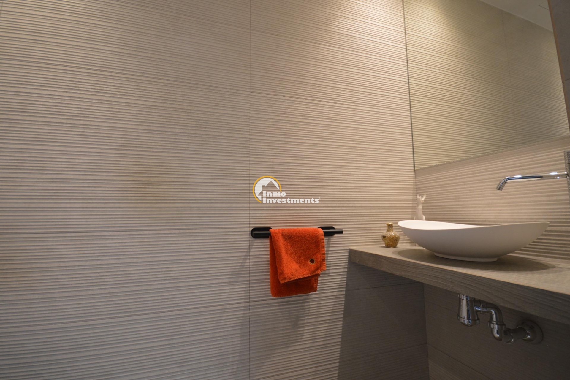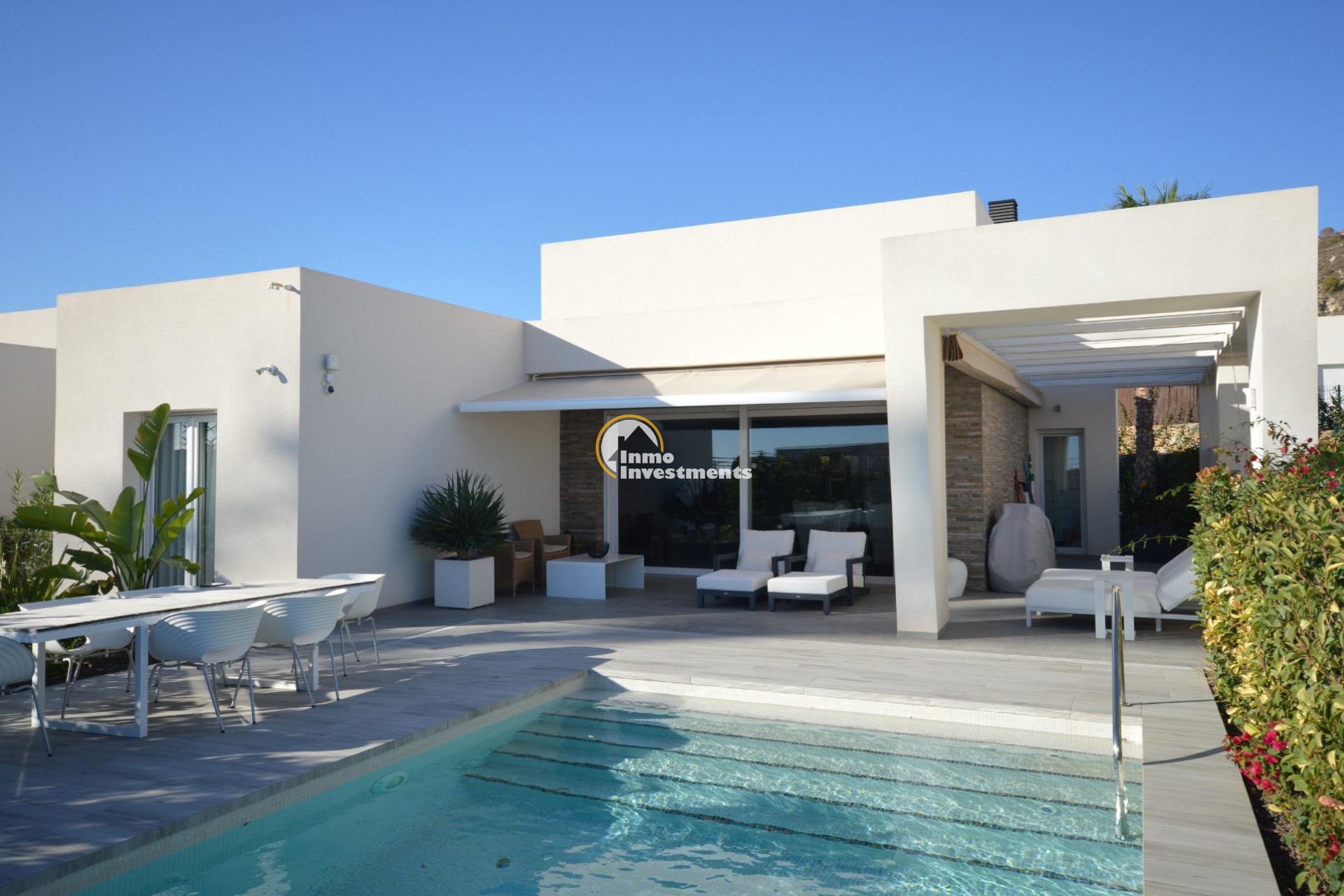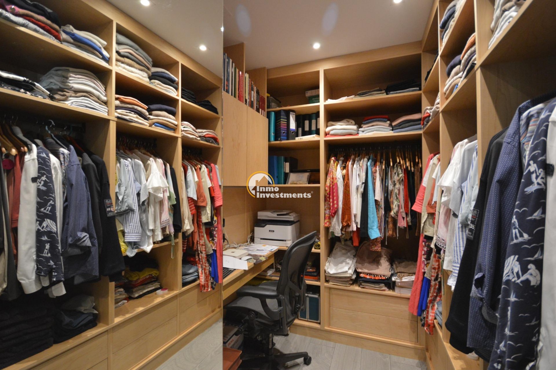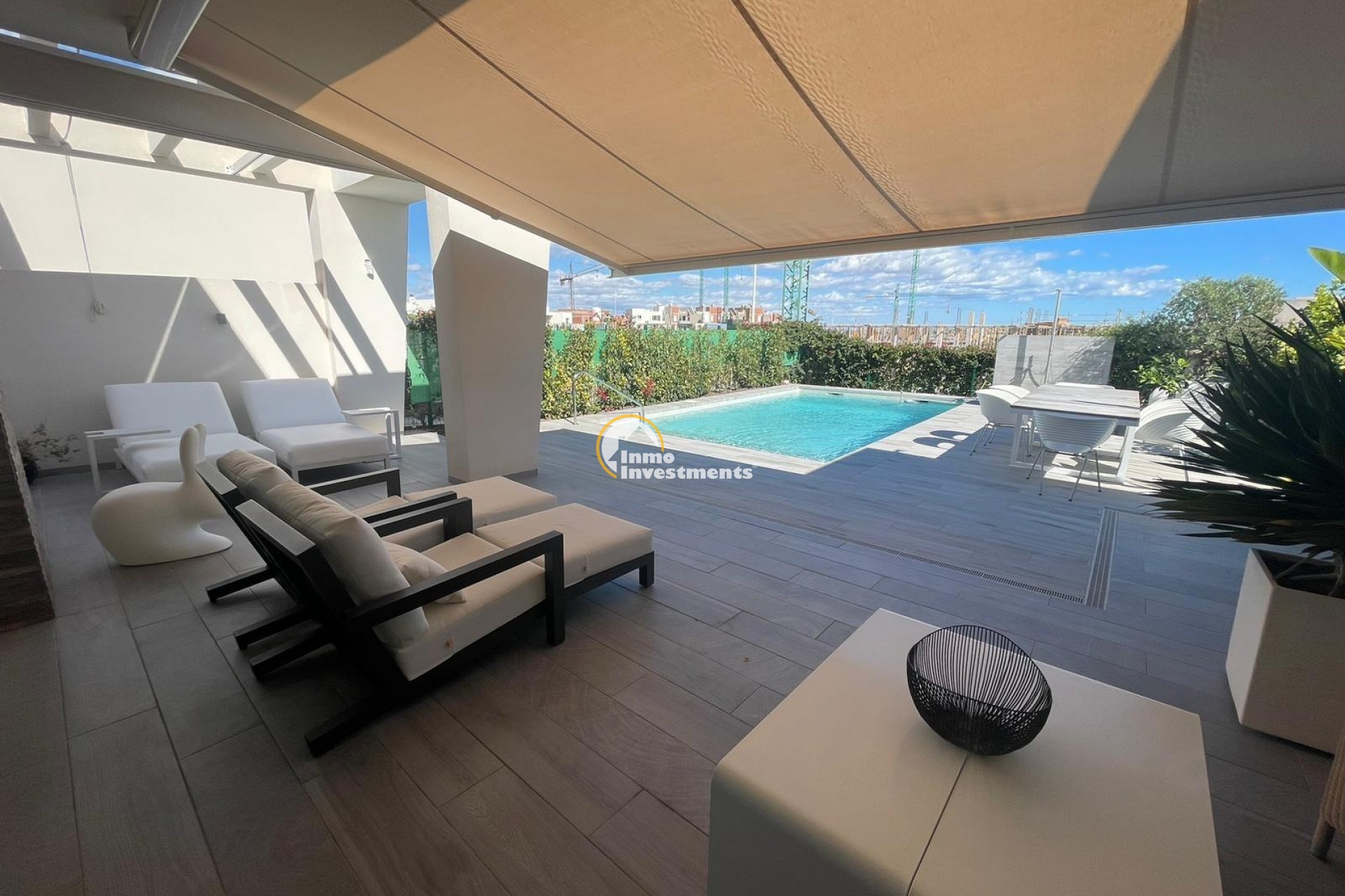 Unieke Vrijstaande Villa Te Koop in La Finca Golf Resort~~Gebouwd op een royale kavel van 500 m2, biedt deze exclusieve villa ruime, open woonruimtes die de woonkamer, keuken en eetkamer combineren. Grote ramen zorgen voor veel natuurlijk licht en openen naar een indrukwekkend L-vormig terras, een aangelegde tuin en een privézwembad. Het terras, gedeeltelijk overdekt met een pergola en elektrische zonneschermen, is de perfecte plek om het mediterrane klimaat het hele jaar door te genieten.~~De huidige eigenaren hebben de indeling aangepast tot een ruime woning met twee slaapkamers. Met kleine aanpassingen kan de villa echter eenvoudig worden teruggebracht naar drie slaapkamers. De woning kan volledig gemeubileerd of ongemeubileerd worden gekocht, naar wens van de koper.~~De villa is voorzien van hoogwaardige faciliteiten, waaronder zoneregeling voor verwarming en koeling, vloerverwarming in de badkamers, alarmsysteem met videobewaking, volledige domotica, elektrische rolluiken, privézwembad met buitendouche, laadpunt voor elektrische auto’s, meerdere elektrische zonneschermen, privéparkeerplaats met automatische poort en volwassen tuin met fruitbomen en aromatische planten.~~De keuken is van uitzonderlijke kwaliteit en volledig uitgerust met de nieuwste hoogwaardige apparatuur van Miele.~~Gelegen in het prestigieuze La Finca Golf Resort in Algorfa, in de Vega Baja van de Segura, kunnen bewoners genieten van een breed scala aan voorzieningen: restaurants met nationale en internationale gerechten, een luxe vijfsterrenhotel met spa en fitness, een exclusieve clubhouse en de bekroonde 18-holes golfbaan La Finca.~~Dankzij de gunstige ligging bent u dicht bij de prachtige stranden van Guardamar en Torrevieja, waar u meer dan 300 dagen per jaar van de zon en warme wateren kunt genieten. De luchthaven van Alicante ligt op slechts 40 minuten rijden en die van Murcia op 55 minuten.