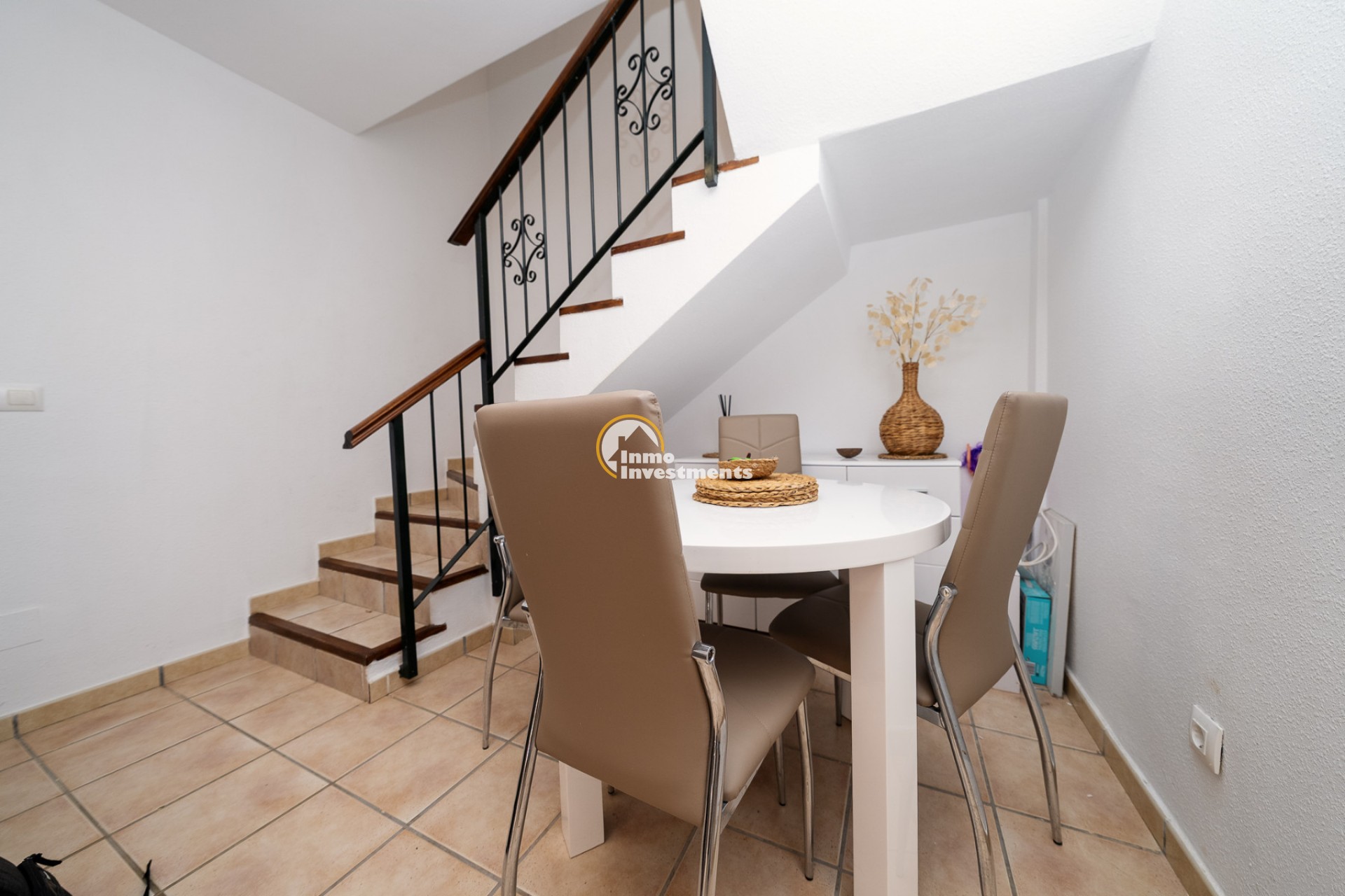 Goed gepresenteerde villa te koop in Playa Flamenca, gelegen aan een rustige woonstraat op loopafstand van lokale voorzieningen. De villa beschikt over een lichte open woon- en eetruimte met open haard en airconditioning, evenals een aparte moderne keuken met directe toegang tot het zwembadgedeelte. De begane grond omvat een tweepersoonsslaapkamer met inbouwkasten, airconditioning en een en-suite badkamer met inloopdouche. Op de eerste verdieping bevinden zich nog twee tweepersoonsslaapkamers, beide met inbouwkasten en airconditioning, evenals een familiebadkamer met bad en douche. Gelegen op een royaal perceel biedt de woning goede buitenruimte met terrassen en een privézwembad, wat een praktische plek biedt om te ontspannen en buiten te dineren, plus ruimte voor parkeren op eigen terrein. Een terras op de bovenverdieping biedt extra buitenruimte. De woning wordt volledig gemeubileerd verkocht en verkeert in uitstekende staat, geschikt voor permanente bewoning, vakantiegebruik of verhuurinvestering in een gevestigde en populaire omgeving van de Costa Blanca. Gelegen dicht bij het sportcentrum van Playa Flamenca, evenals de lokale zaterdagse straatmarkt, lokale voorzieningen en een wandeling van 20 minuten naar zowel het commerciële centrum van Playa Flamenca als La Zenia Boulevard. Het strand van Playa Flamenca ligt op minder dan 2km en op slechts enkele minuten met de auto. Neem vandaag nog contact met ons op om deze scherp geprijsde woning te bezichtigen