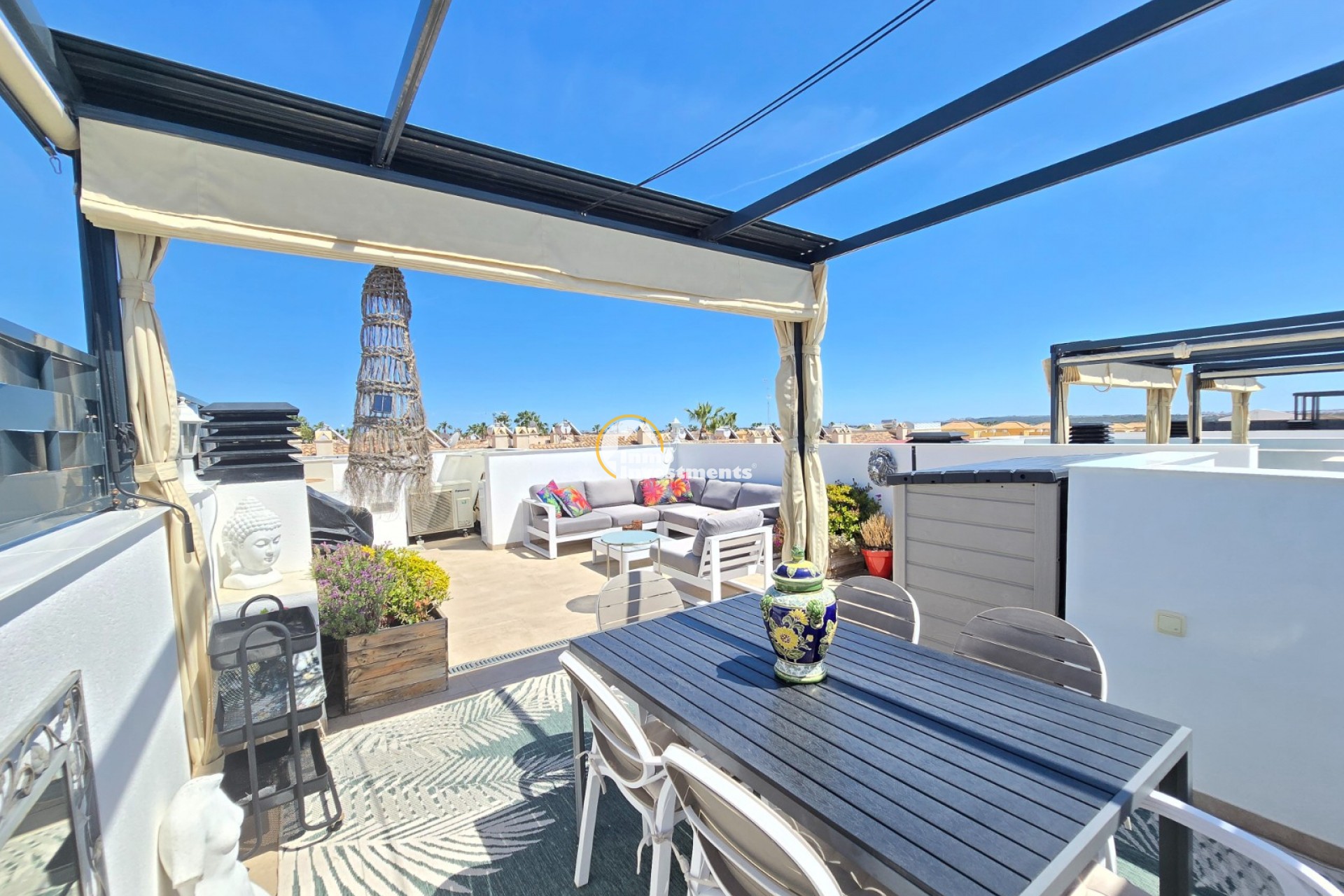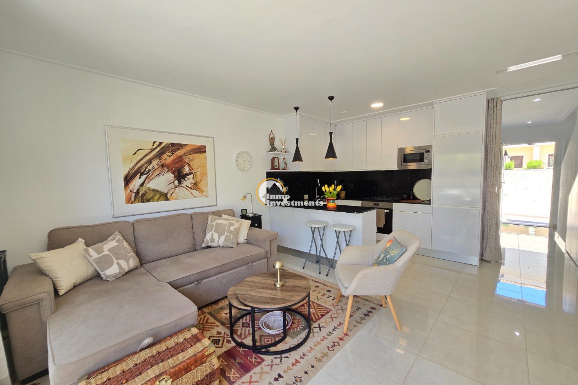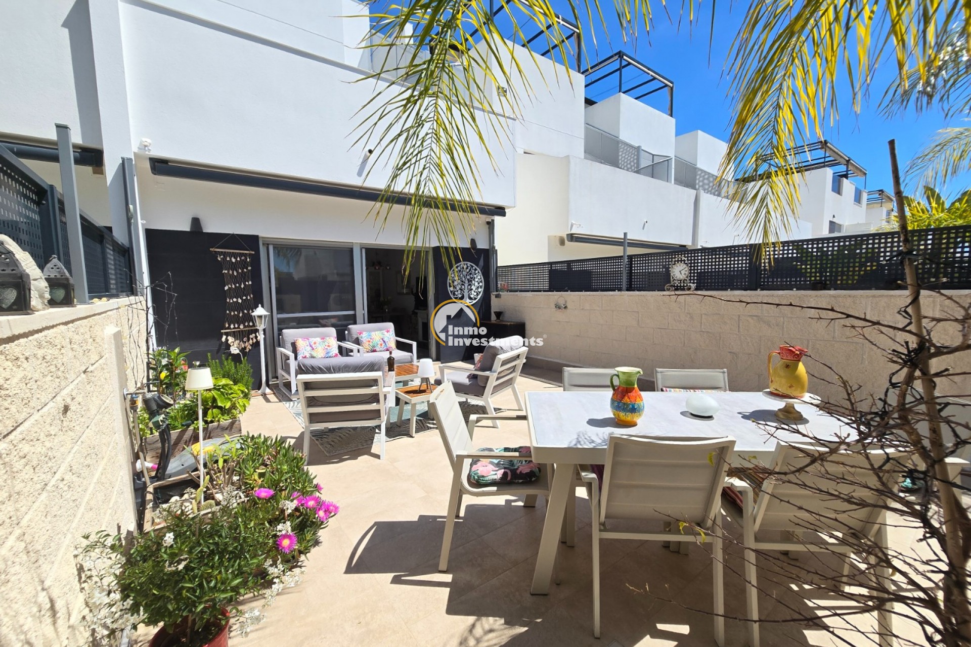 Ontdek deze prachtige, jonge en moderne woning gelegen in het geliefde Ciudad Quesada. Deze perfect onderhouden woning bevindt zich in een mooie, afgesloten urbanisatie en biedt alles wat u nodig heeft voor comfortabel en stijlvol wonen onder de Spaanse zon. De woning beschikt over 3 ruime slaapkamers en 2 moderne badkamers, ideaal voor zowel permanent wonen als vakantiegebruik. De open keuken sluit naadloos aan op de lichte leefruimte en is uitgerust met hoogwaardige afwerkingen, waaronder een praktische Quooker-kraan. Buiten geniet u van een zonnige tuin en terras, perfect om te ontspannen of gasten te ontvangen. Daarnaast beschikt de woning over een ruim solarium waar u het hele jaar door van de zon kunt genieten. De urbanisatie biedt een verzorgde gemeenschappelijke tuin en een zwembad, wat zorgt voor een extra gevoel van luxe en ontspanning. De ligging is uitstekend: op wandelafstand vindt u diverse winkels, bars en restaurants, en het bruisende centrum met alle voorzieningen ligt binnen handbereik. Bovendien bevindt u zich op slechts 10 km van de prachtige stranden van de Costa Blanca. De woning is voorzien van tal van extra’s die het wooncomfort verhogen, zoals zonneweringen, een waterontharder met filtersysteem en airconditioning op zowel de boven- als benedenverdieping, afzonderlijk regelbaar. Kortom, een instapklare woning op een toplocatie – ideaal voor wie op zoek is naar comfort, kwaliteit en een zorgeloze levensstijl in een mooie omgeving. SUMA: euro per jaar. Gemeenschapskosten: 660 euro/jaar.