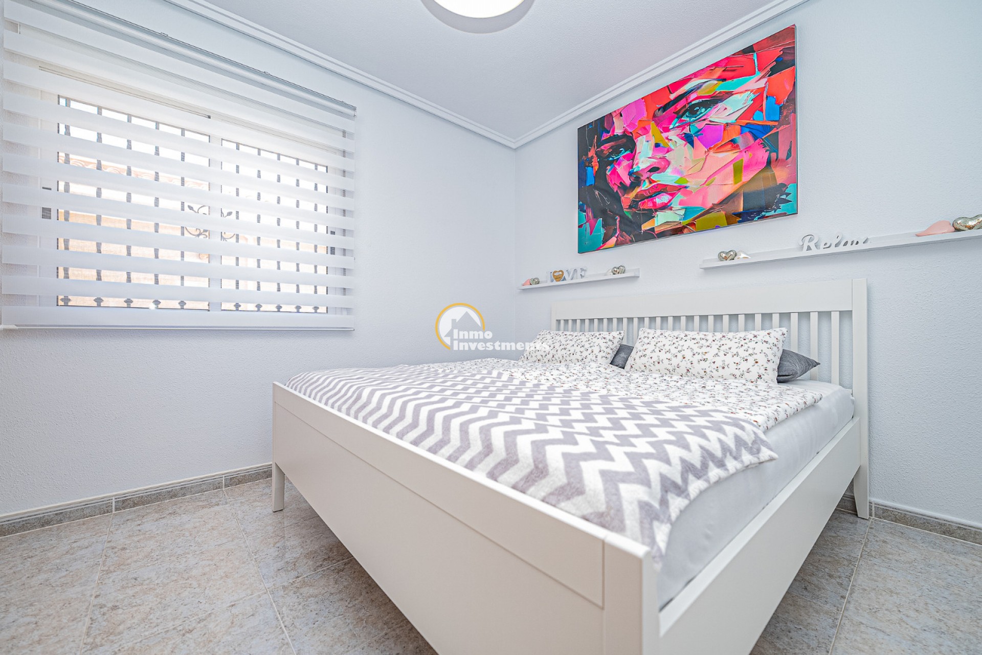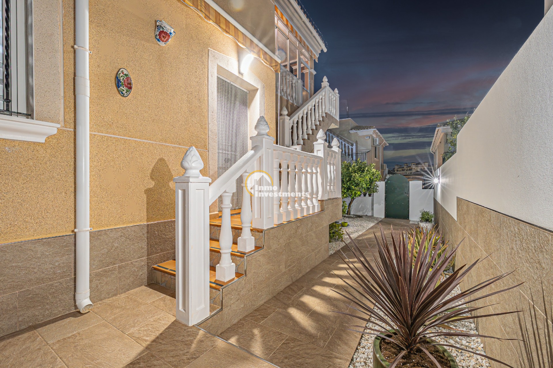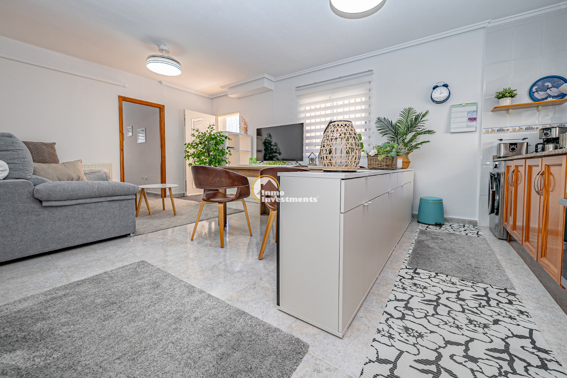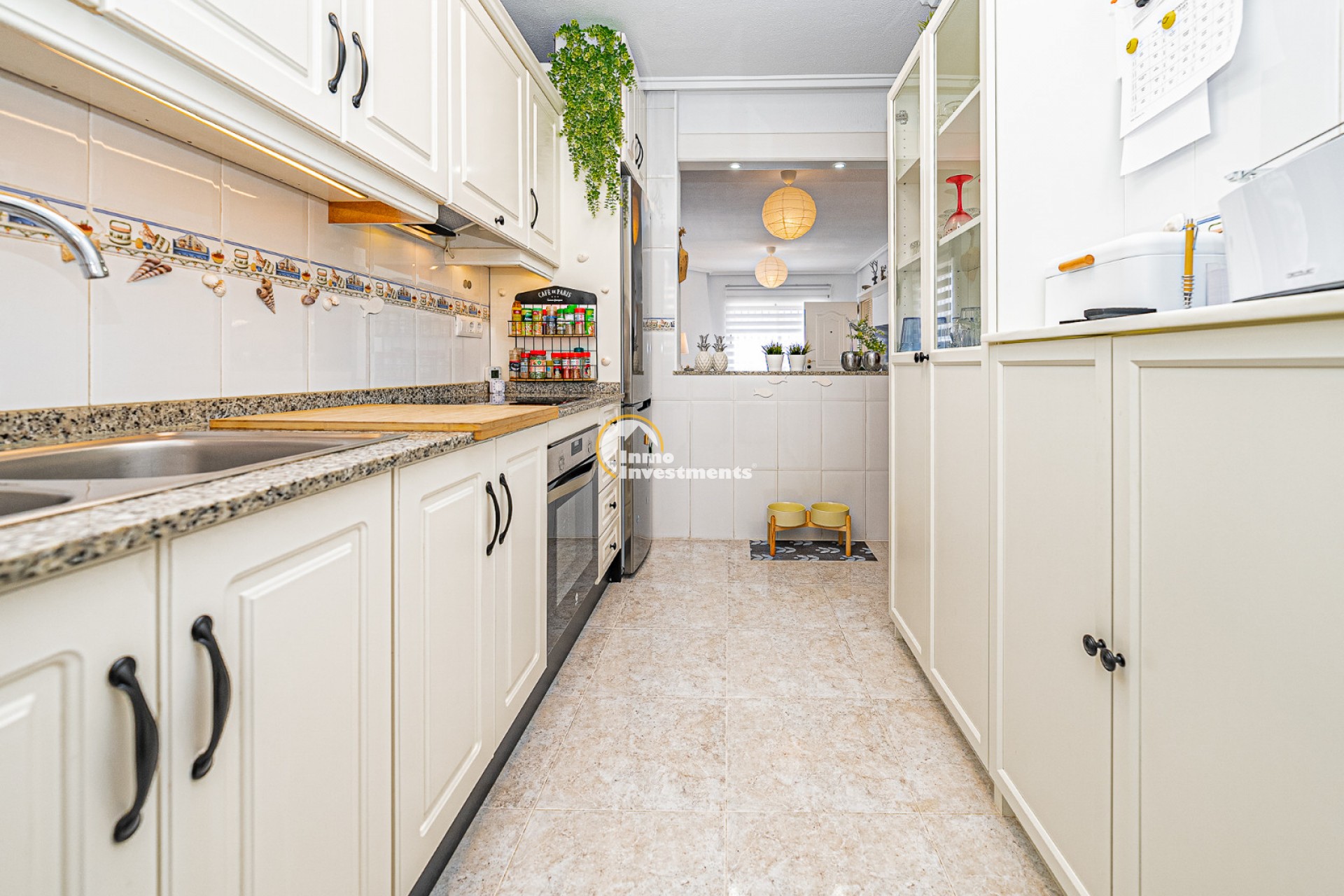 The upper floor features a bright and inviting lounge and dining area, a fully equipped kitchen, two spacious double bedrooms, and two modern bathrooms. From the lounge, step directly onto your private roof terrace, complete with a pergola – the perfect spot to unwind on warm Mediterranean evenings. A glazed balcony/conservatory adds to the living space, ideal for relaxing with a book or enjoying morning coffee year-round.
