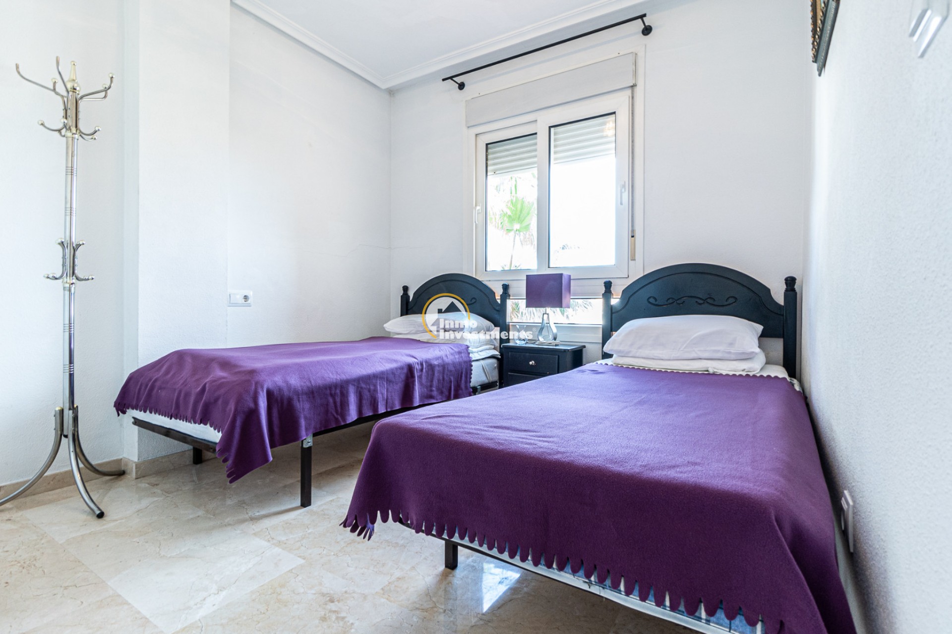 Sunny first floor apartment in the highly sought after complex Jumilla III, close to amenities. Noted for quality of build and design, the apartment offers a living space of 84 m2 and comprise an open living and dining area with a charming kitchen, 2 bedrooms and 2 bathrooms. The southwest orientation allows for plenty of natural light throughout the day and offers views over the communal areas. The property is sold fully furnished and includes air conditioning, a lift, and access to communal parking. Located in a sought after complex with lush gardens, communal swimming pool for adults and children and secure parking for residents. A 15 minute walk to the Playa Flamenca beach and close to all local amenities including bars, renowned restaurants, supermarkets and much more. Viewing is highly advisable. Contact Inmo Investments today for a viewing.