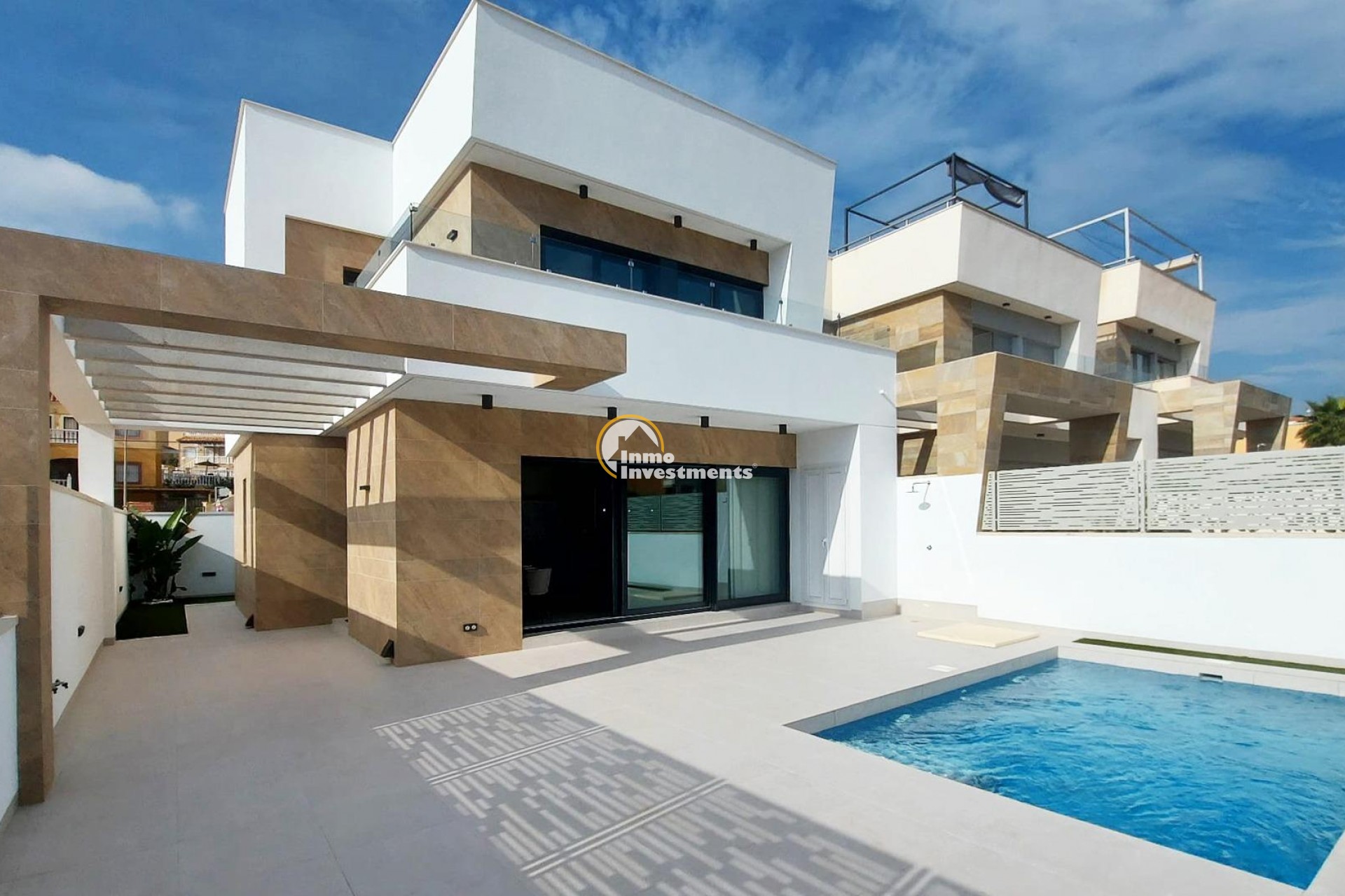 an exclusive new-build development that combines the charm of Mediterranean architecture with a modern design and premium-quality finishes. These homes are designed for maximum comfort, functionality, and style, located in one of the most desirable areas of the Costa Blanca.~~Set in a peaceful residential area with excellent connections, Villas Galán is just minutes from the Blue Flag white-sand beaches, ideal for year-round sun, and close to renowned golf courses such as Campoamor, Villamartín, and Las Ramblas.~~Each villa offers 3 spacious bedrooms and 3 full bathrooms, a fully equipped open-plan kitchen, and a bright living-dining area that opens directly onto the terrace and garden through large windows that let in plenty of natural light.~~A key highlight is the private swimming pool, included with each villa — perfect for relaxation and outdoor enjoyment. There's also a private solarium with open views, landscaped garden areas, and options to personalize finishes to your taste.~~All essential services are nearby: supermarkets, international schools, healthcare centers, restaurants, and the popular Zenia Boulevard shopping center.~~Villas Galán is more than just a home — it's an opportunity to enjoy the Mediterranean lifestyle in comfort and style, whether you're looking for a permanent residence, holiday home, or a sound investment.