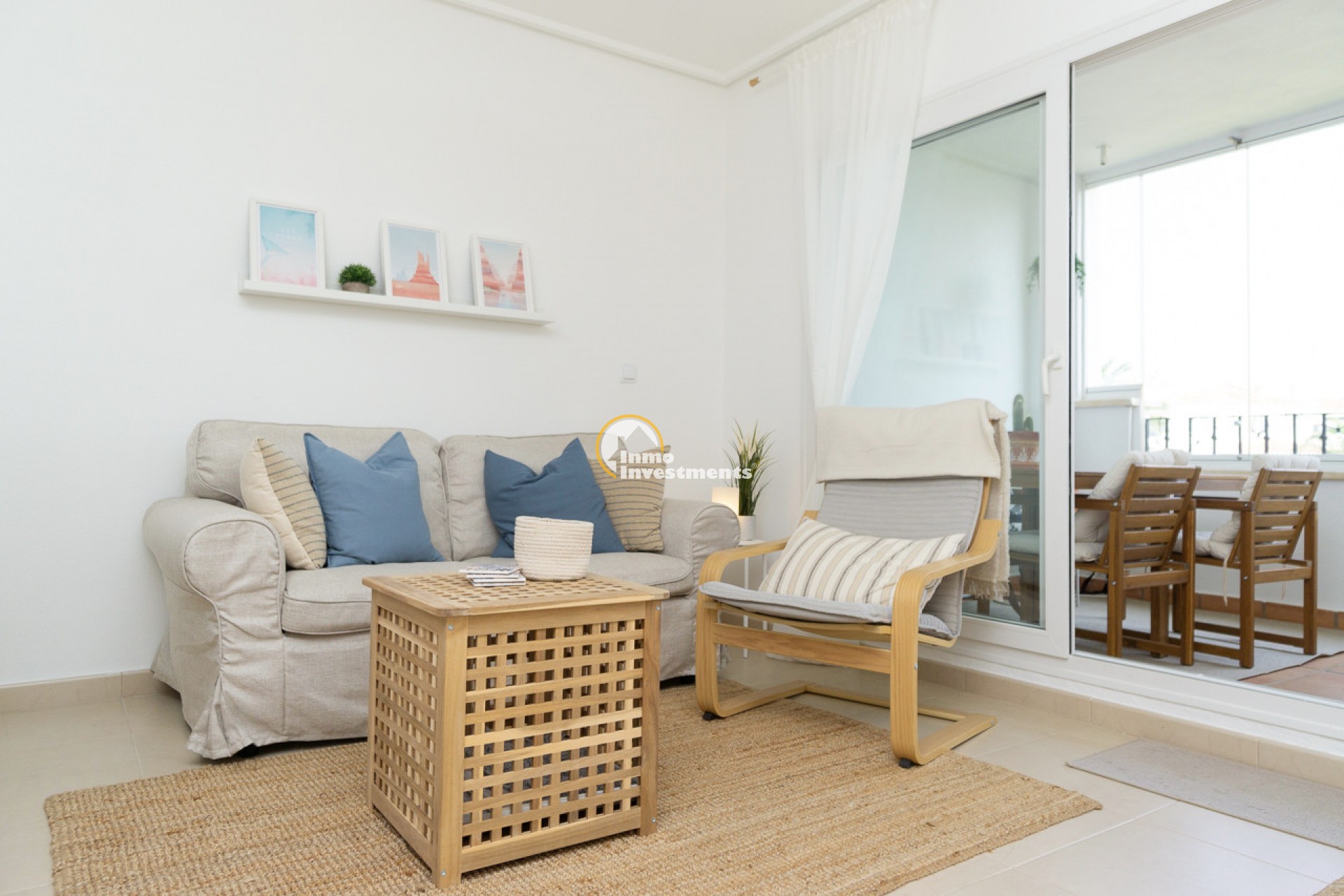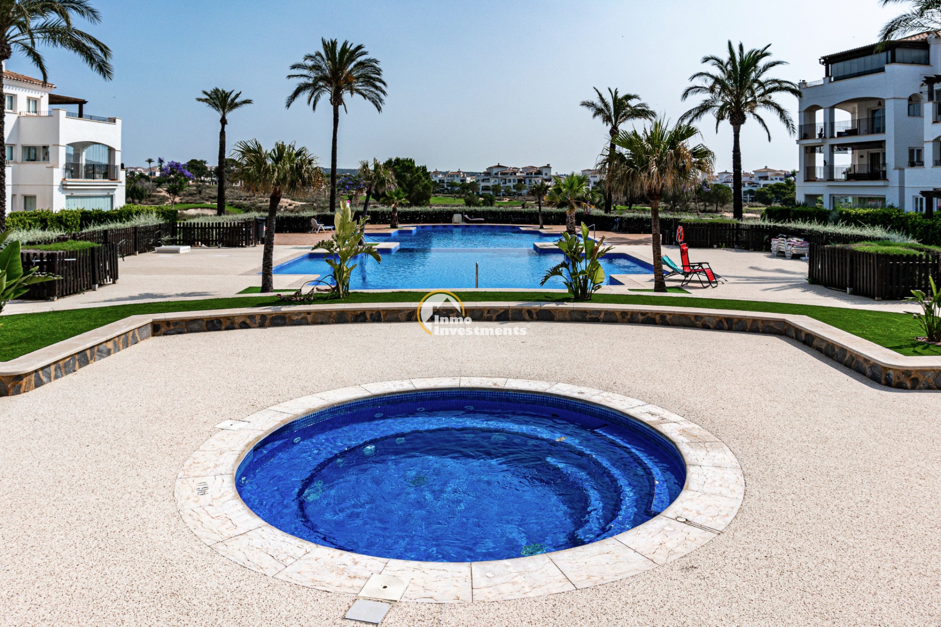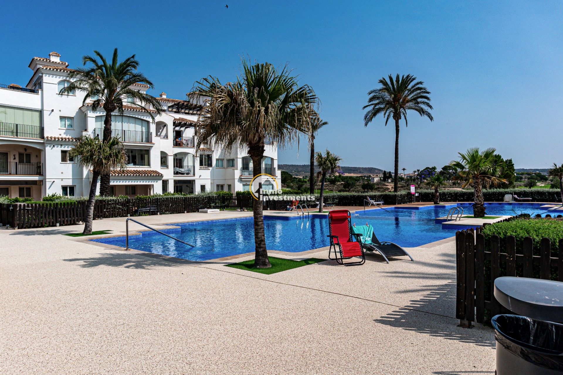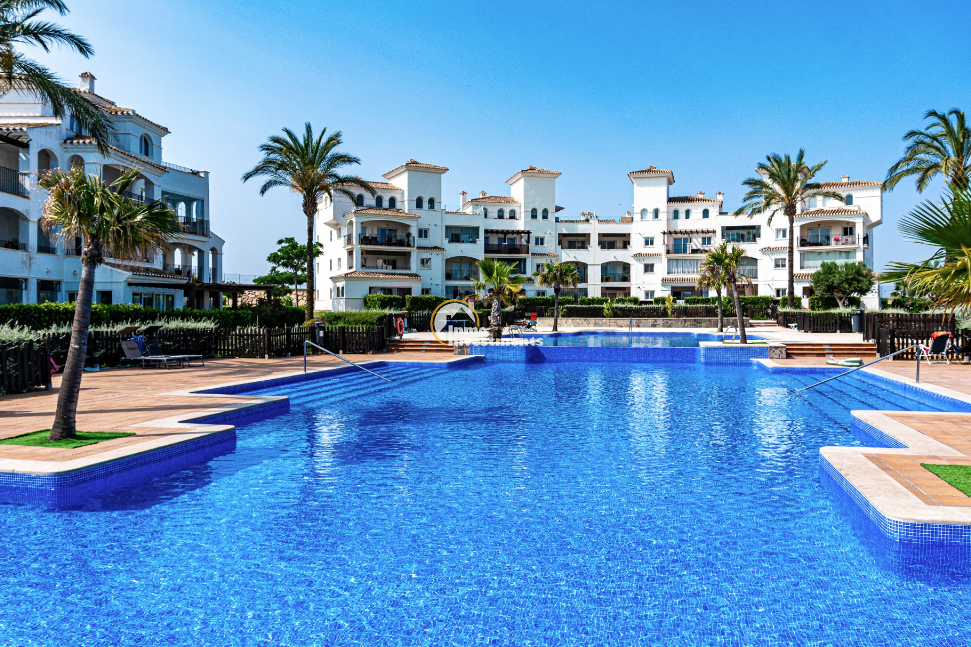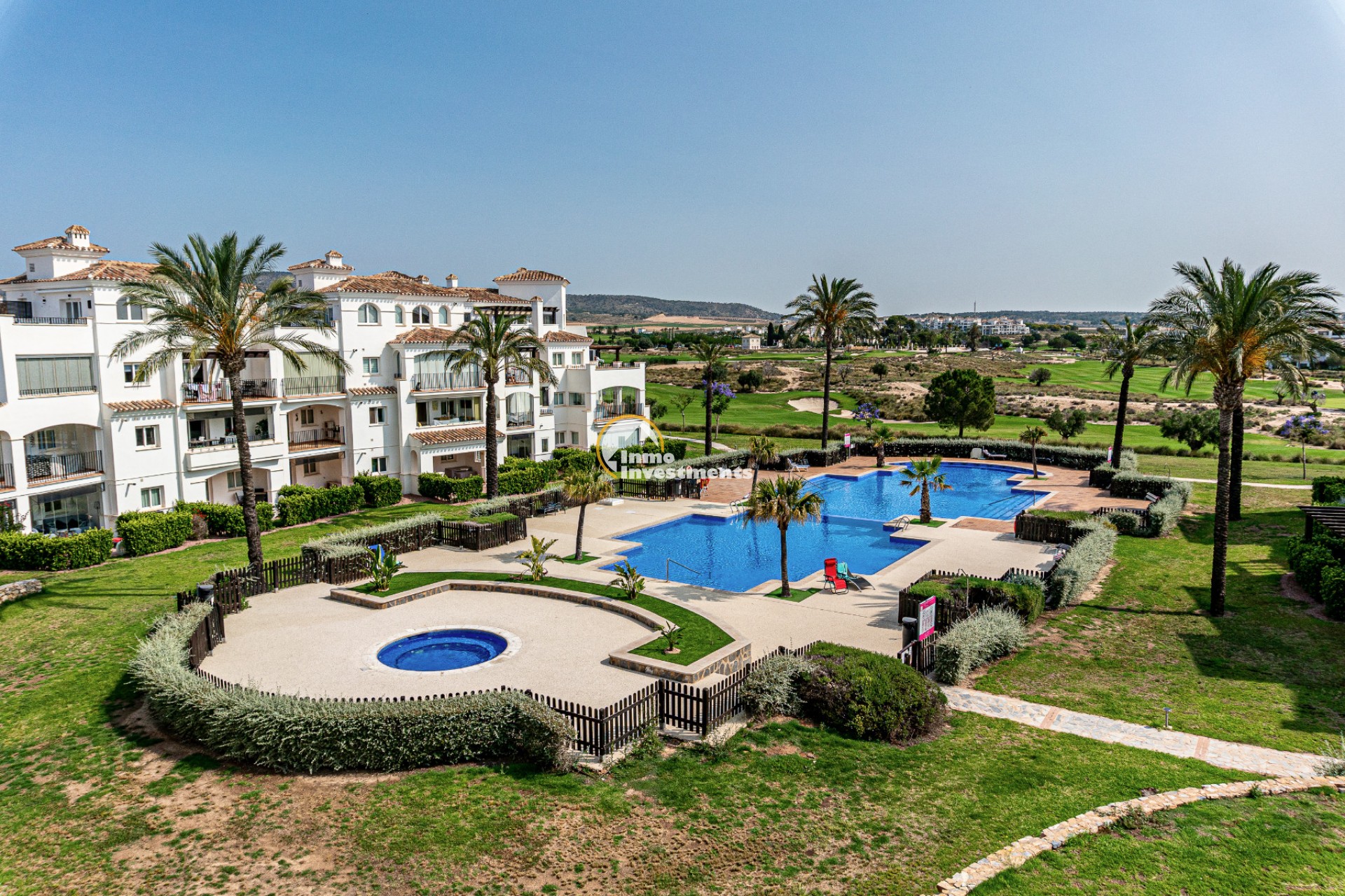 Fully renovated apartment for sale at the Hacienda Riquelme Golf Resort, Sucina, Murcia. The apartment offers 2 double bedrooms, (both bedrooms have Juliette balconies) 1 modern bathroom with shower, ample lounge/dining room with glazed terrace offering stunning views over the communal gardens and swimming pool and the golf course itself, plus independent fully fitted kitchen. The property is sold fully renovated and key ready with many luxury extras and touches. Hacienda Riquelme Golf Resort is a family-friendly holiday, golf and leisure complex located between the mountains and the Mediterranean Sea. With an uncompromising Nicklaus design, the 18 hole, par 72 links-styled parkland golf course has been built to championship standards. It provides a tranquil setting for those who want to relax in its luxurious gardens and pools, whilst offering a variety of leisure facilities for those that like to keep active with shots made difficult by undulating fairways, bunker hazards, wild grass, olive trees and large lakes. The Mar Menor and local beaches can be found in under 20 minutes. The friendly and typical Spanish village of Sucina with its bars, restaurants and church square is just a few minutes away by car. Murcia International airport is located approximately 20 minutes away by car. A perfect home for either golf enthusiasts and holiday makers alike. Contact us today for your viewing