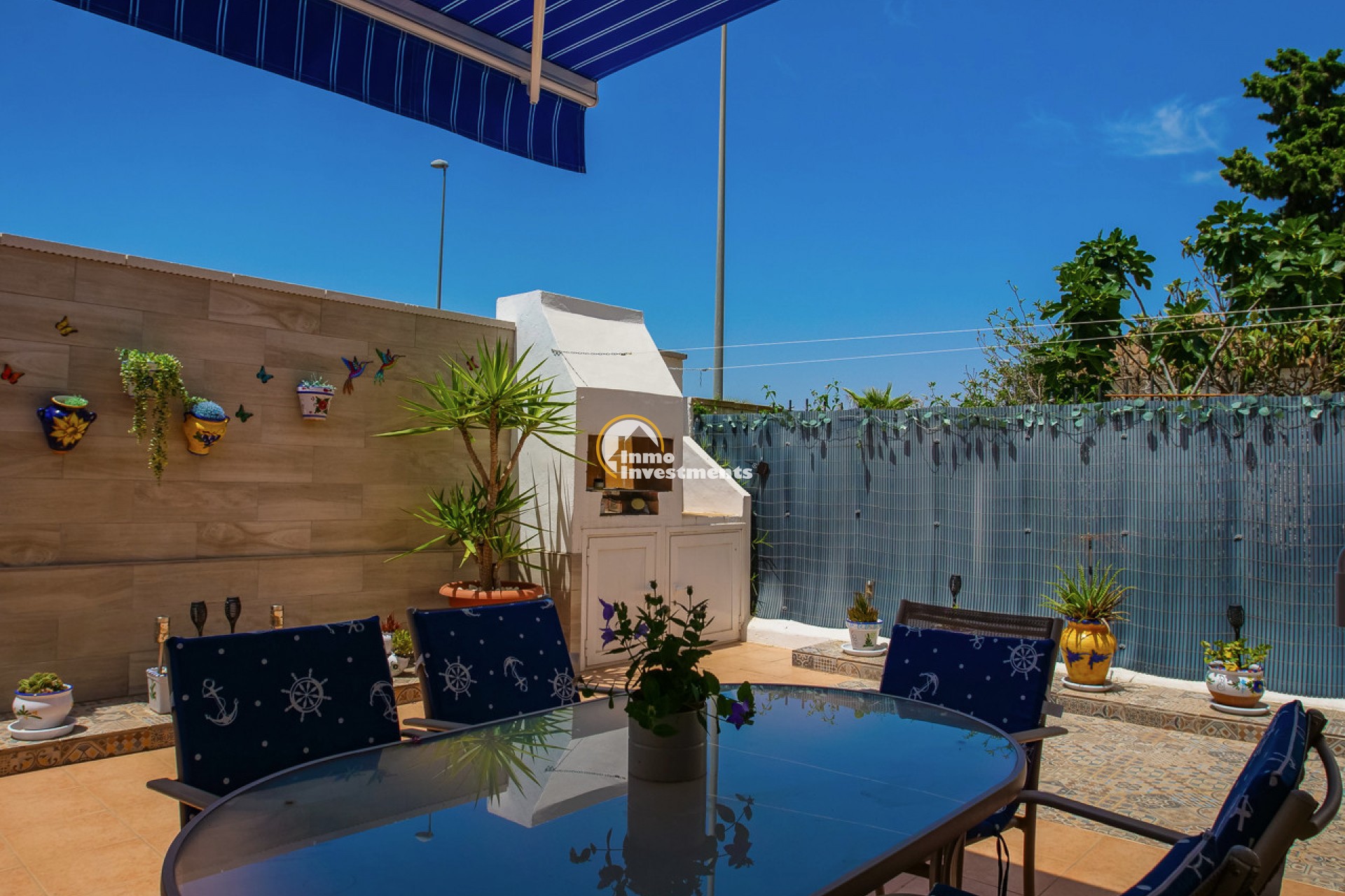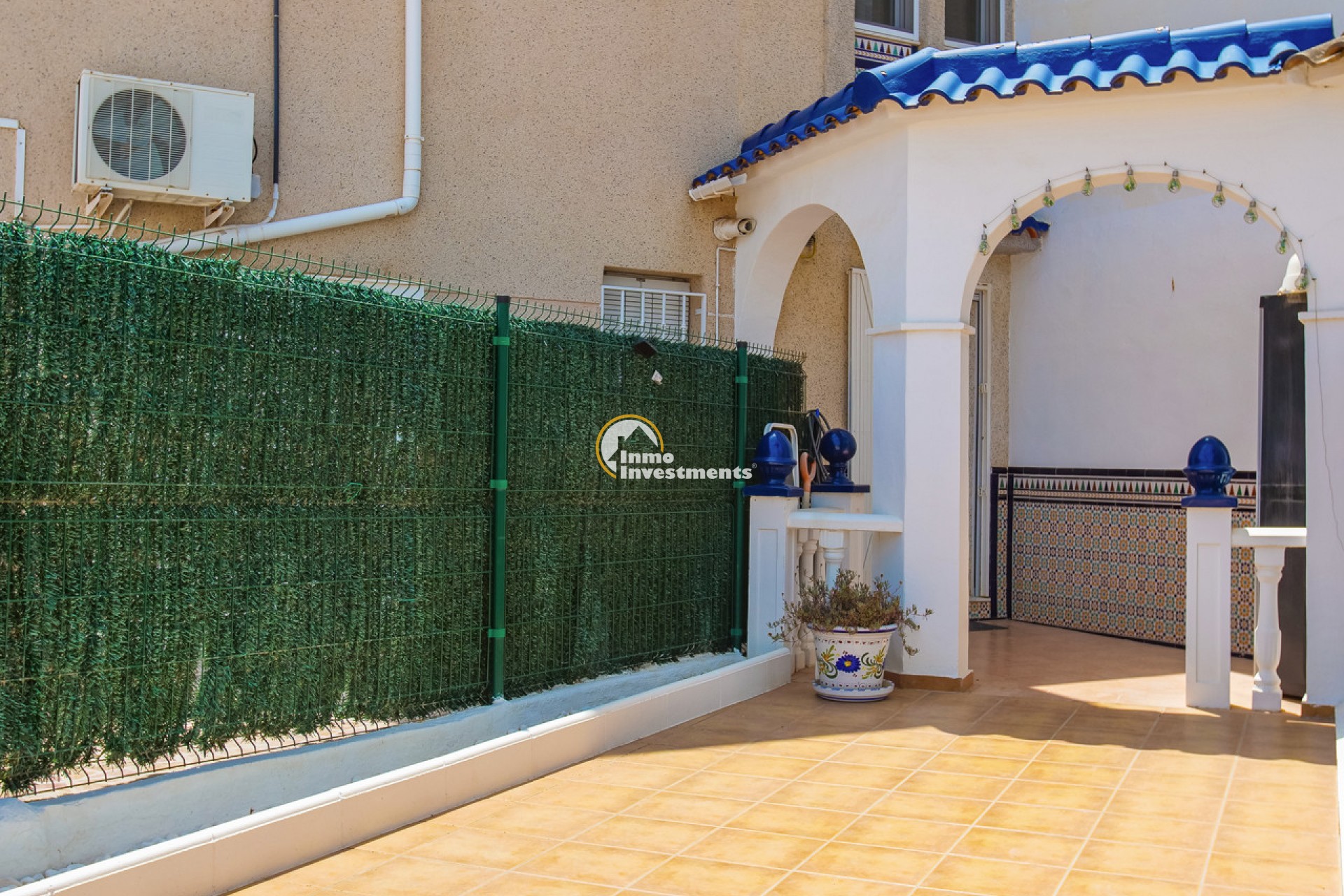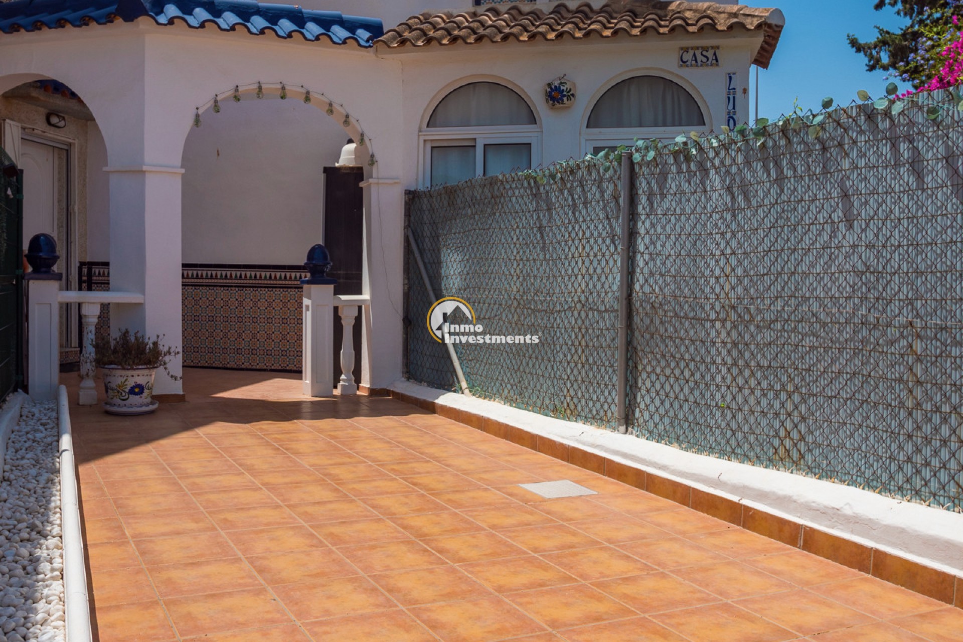 This well-presented 3 bedroom town house is located just a short walk from La Zenia beach. The property has been tastefully updated to include modern finishes while keeping some of its original features. At the front, there is an east-facing garden with direct access to the house. Inside, you'll find a bright living and dining area with a pellet burner and patio doors that lead to a spacious terrace, ideal for relaxing or dining outside. The separate kitchen has plenty of cupboard and worktop space and also has direct access to the rear patio. A family shower room and WC completes the ground floor. Upstairs on the first floor, there is a guest double bedroom with fitted wardrobes and a second modern bathroom. The main bedroom is very spacious, having been created by combining two original rooms and offers a sitting area and extensive fitted wardrobes. From the first floor, stairs lead to the third bedroom and out to the rooftop solarium, which has open views of the surrounding area and out to the Mediterranean Sea.