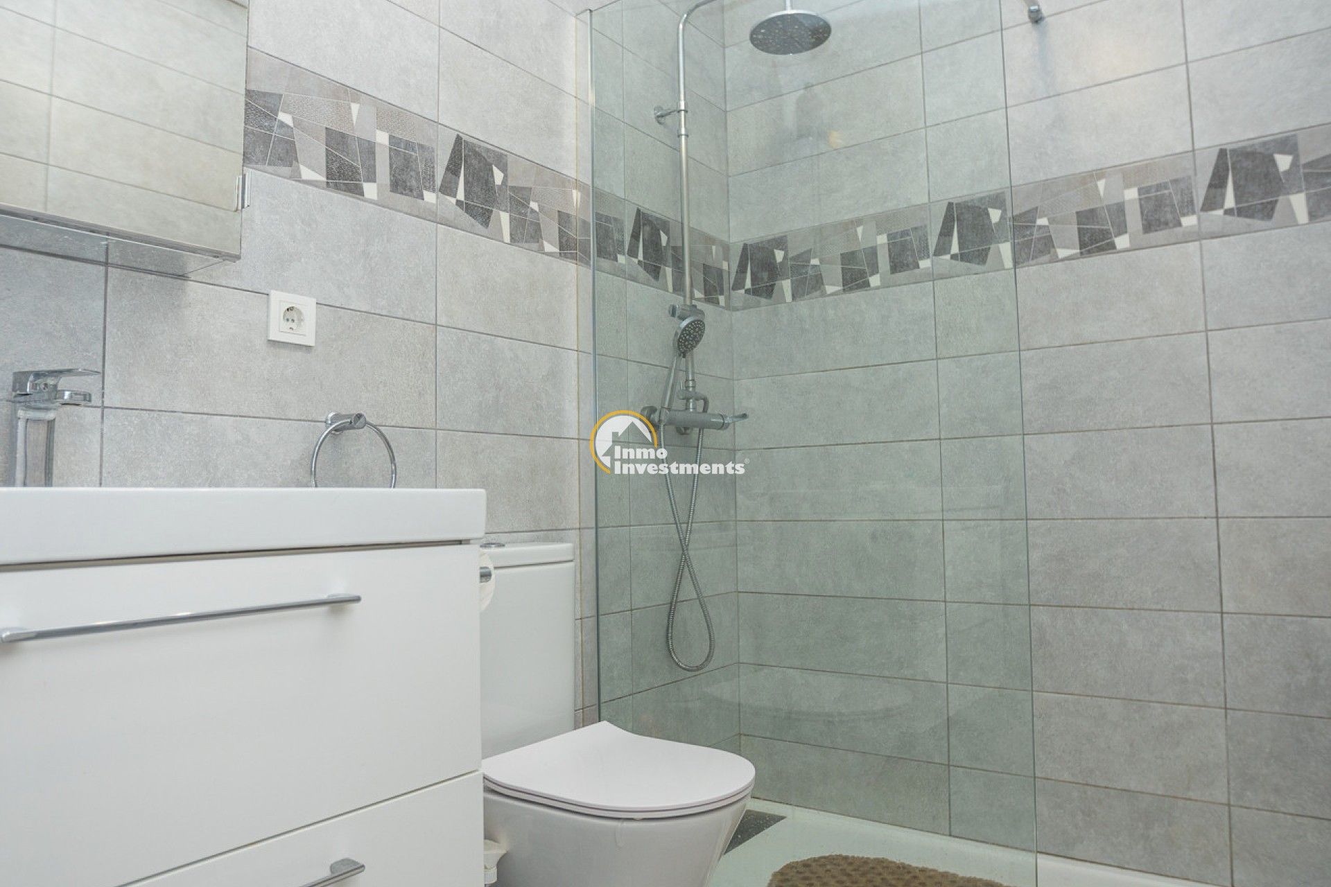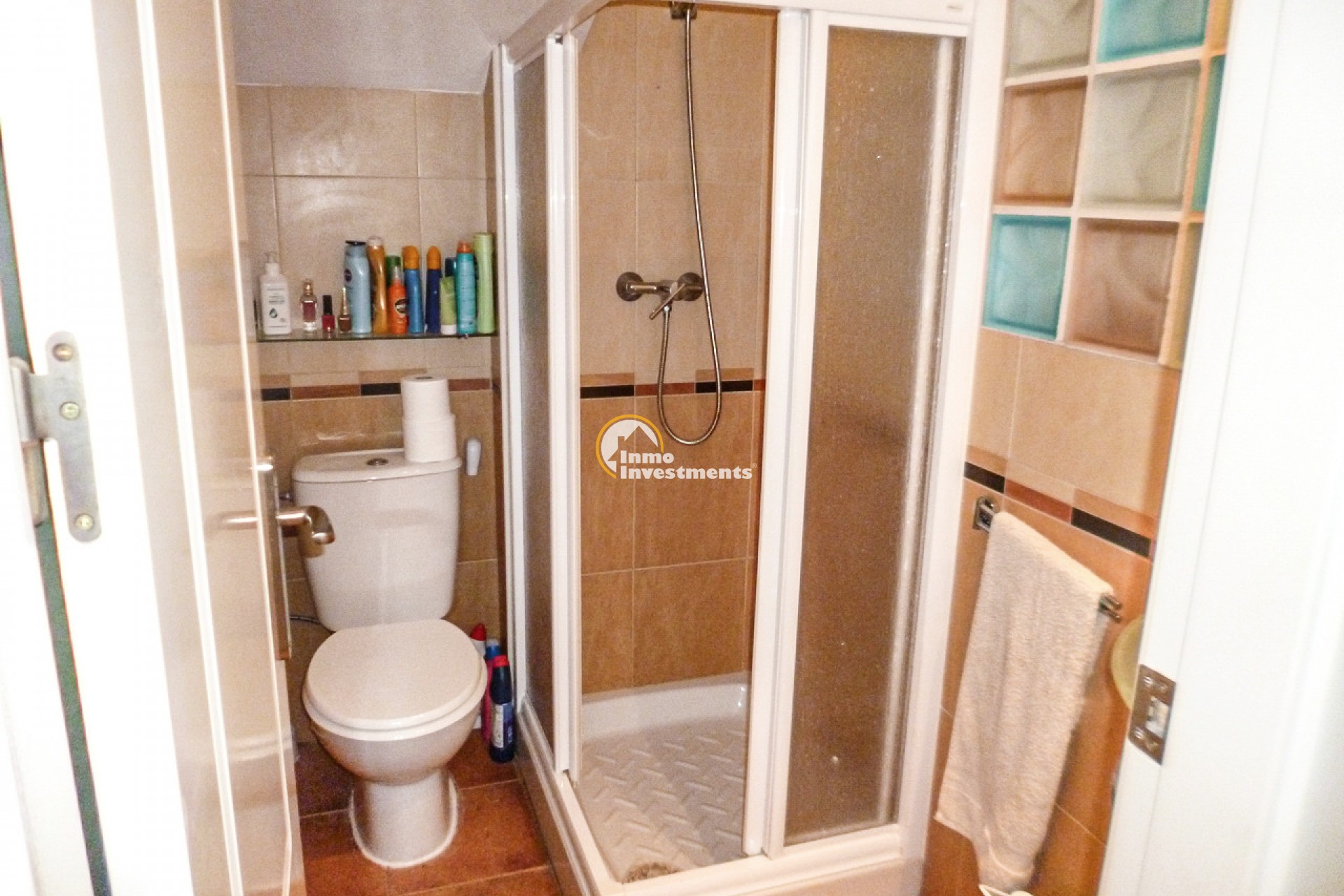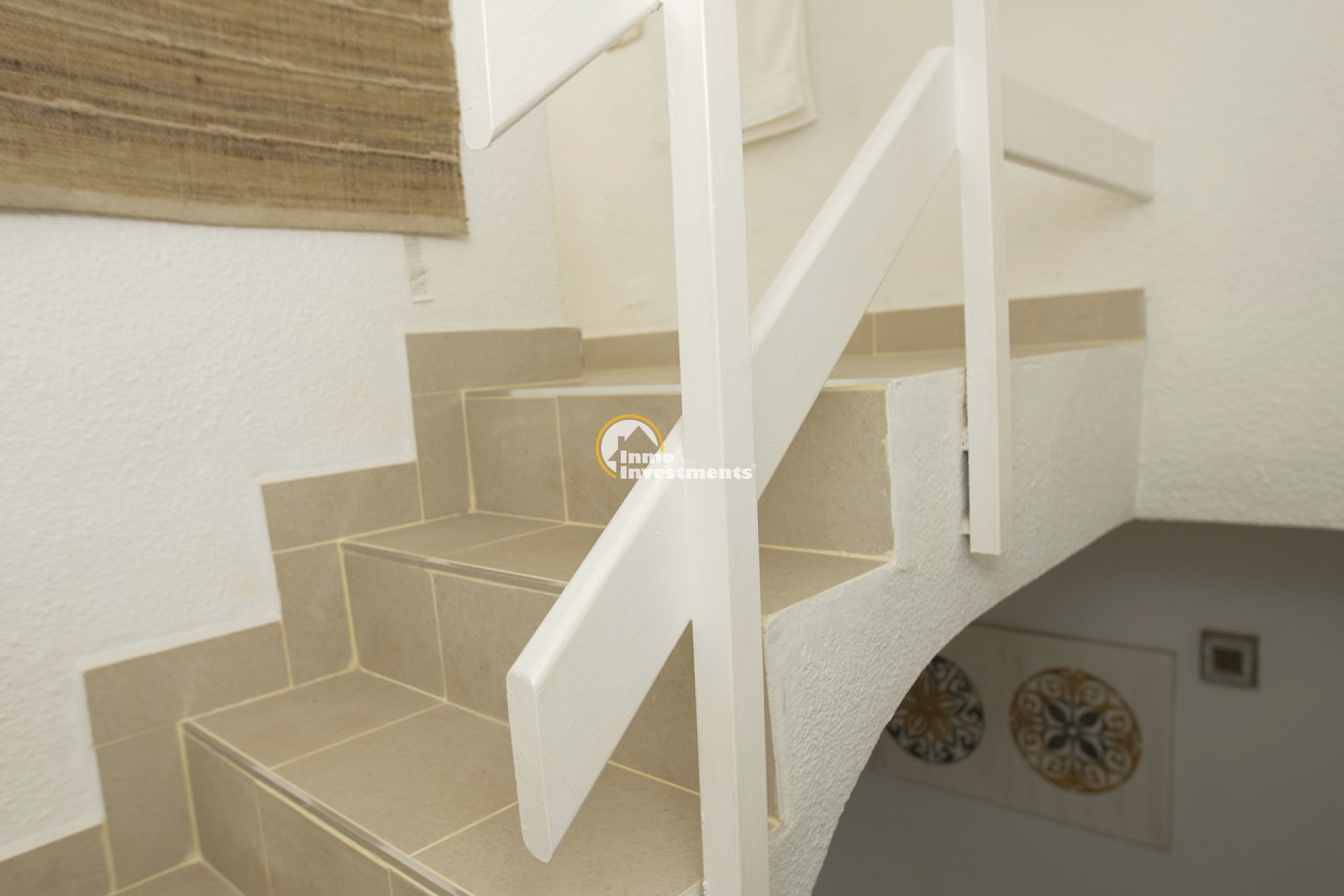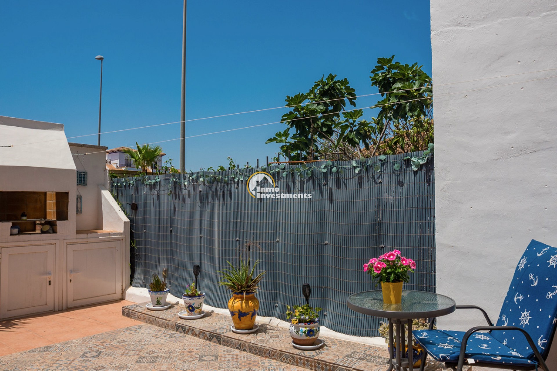 This well-presented 3 bedroom town house is located just a short walk from La Zenia beach. The property has been tastefully updated to include modern finishes while keeping some of its original features. At the front, there is an east-facing garden with direct access to the house. Inside, you'll find a bright living and dining area with a pellet burner and patio doors that lead to a spacious terrace, ideal for relaxing or dining outside. The separate kitchen has plenty of cupboard and worktop space and also has direct access to the rear patio. A family shower room and WC completes the ground floor. Upstairs on the first floor, there is a guest double bedroom with fitted wardrobes and a second modern bathroom. The main bedroom is very spacious, having been created by combining two original rooms and offers a sitting area and extensive fitted wardrobes. From the first floor, stairs lead to the third bedroom and out to the rooftop solarium, which has open views of the surrounding area and out to the Mediterranean Sea.