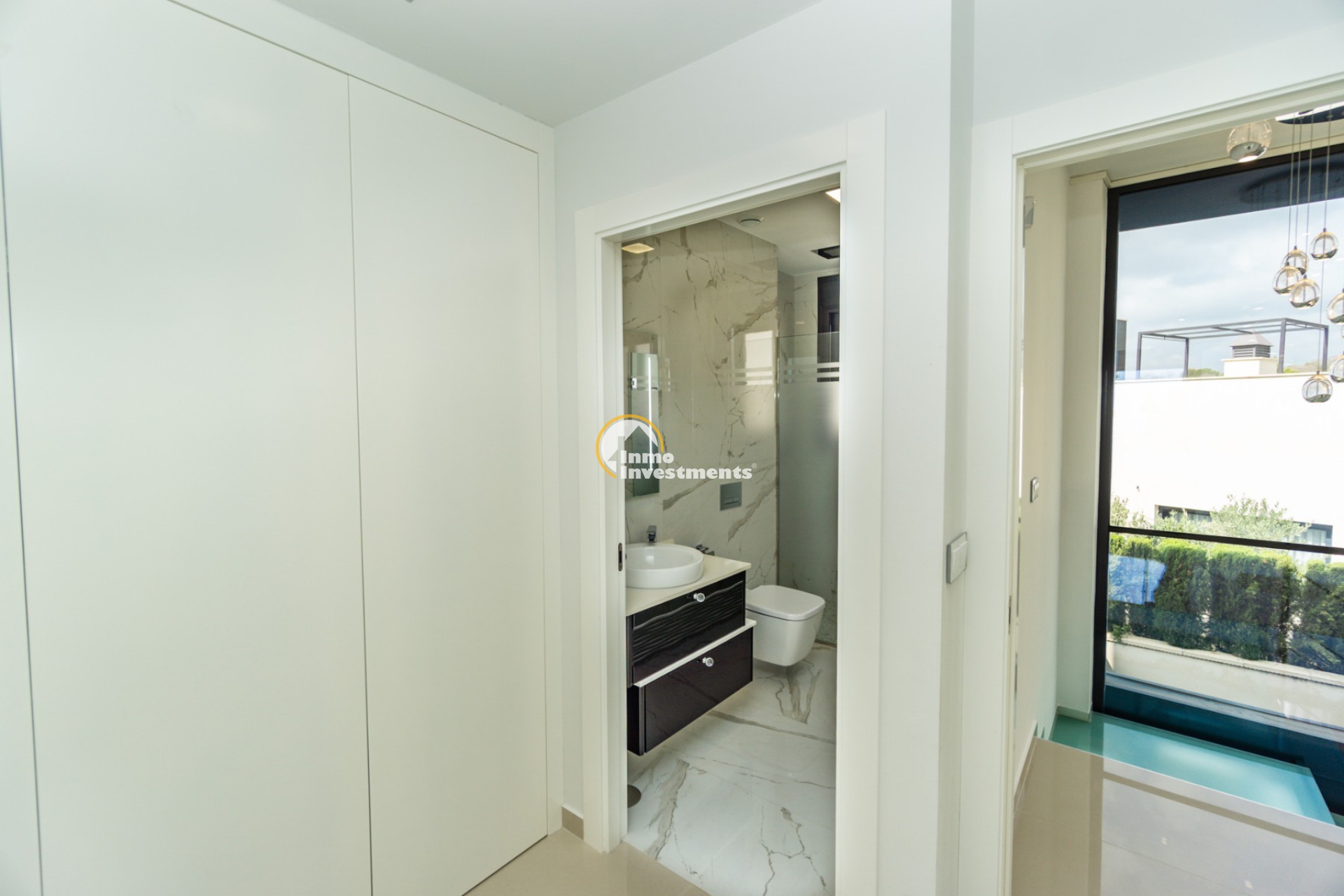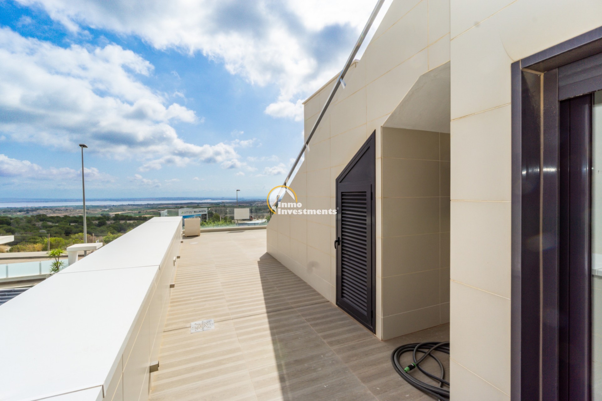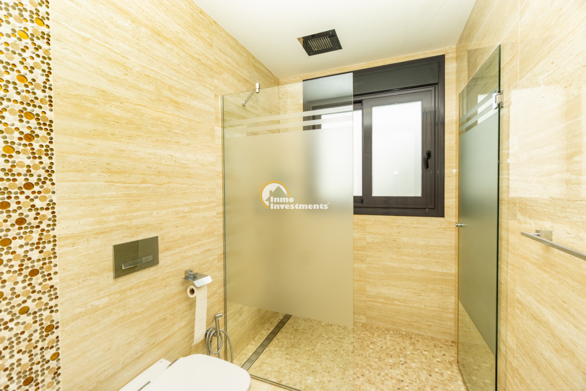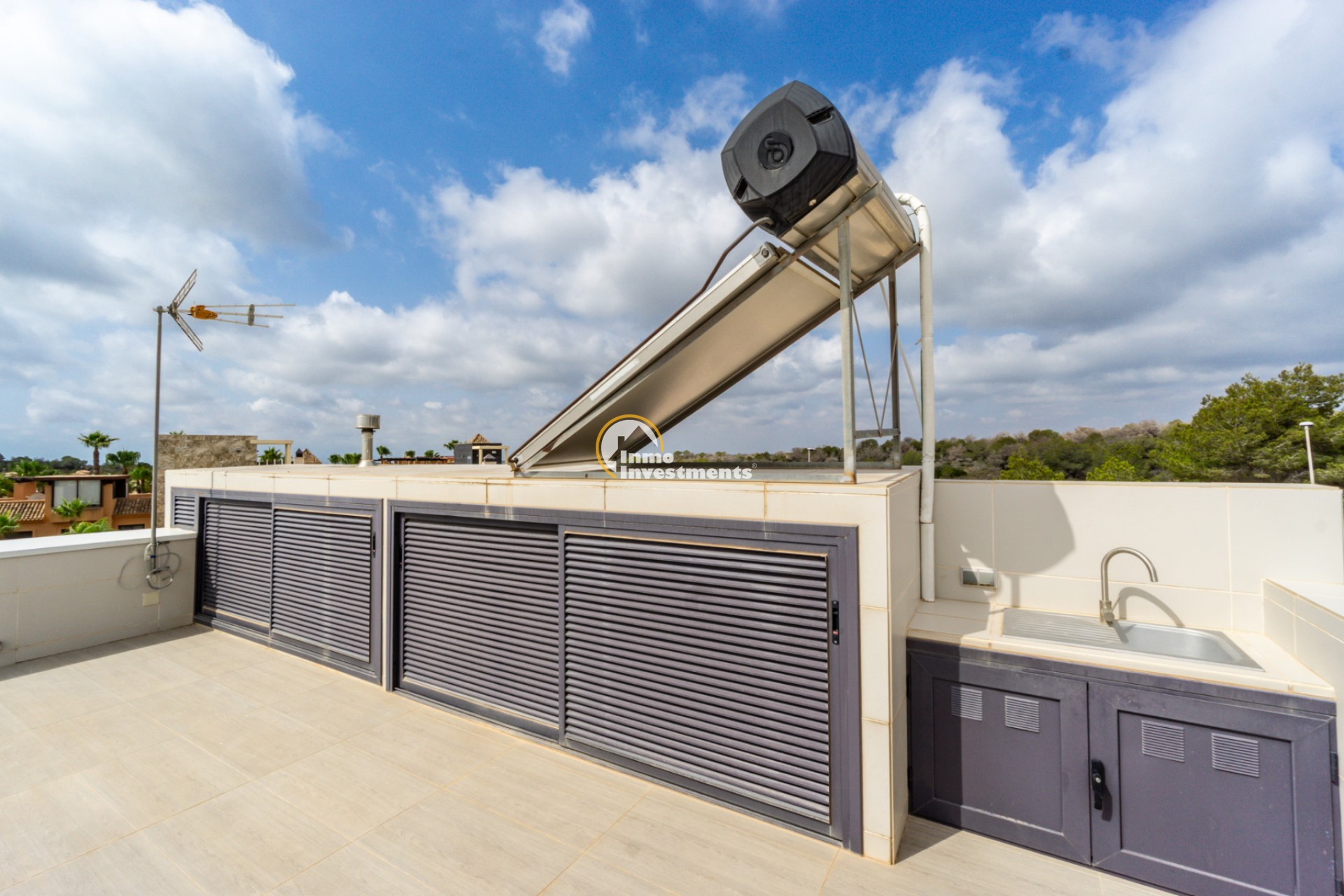 Upstairs on the first floor, you’ll find two further large bedrooms, both with en-suite bathrooms. One of them has direct access to a private terrace with fantastic open views. From here, an external staircase leads to the roof solarium, offering breathtaking 360º views of the sea and the salt lakes of Torrevieja.