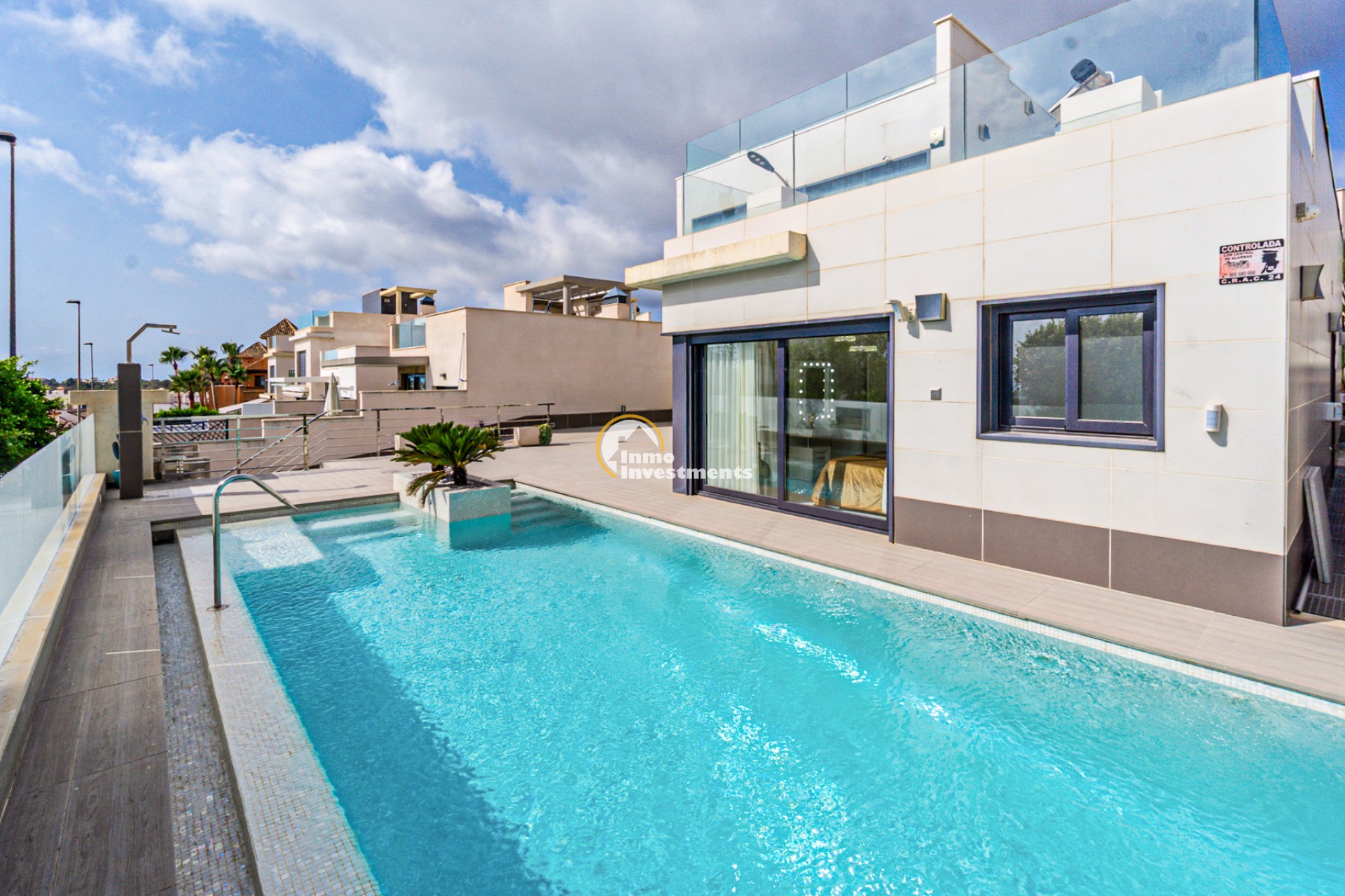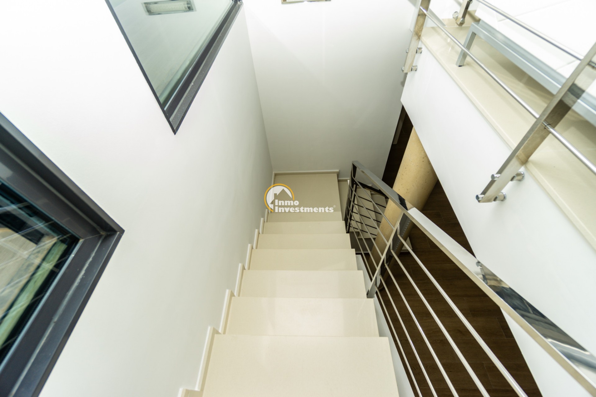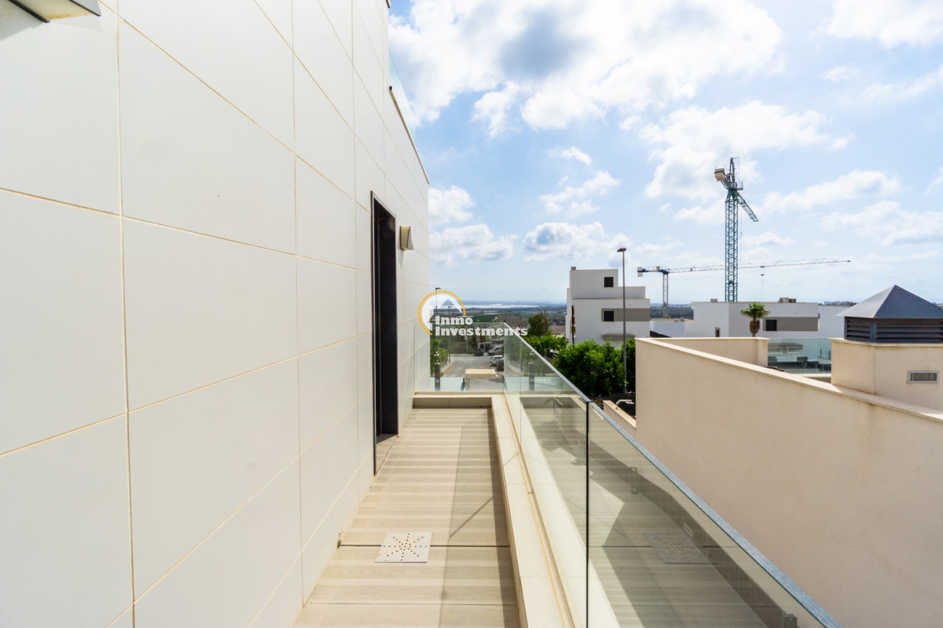 Upstairs on the first floor, you’ll find two further large bedrooms, both with en-suite bathrooms. One of them has direct access to a private terrace with fantastic open views. From here, an external staircase leads to the roof solarium, offering breathtaking 360º views of the sea and the salt lakes of Torrevieja.