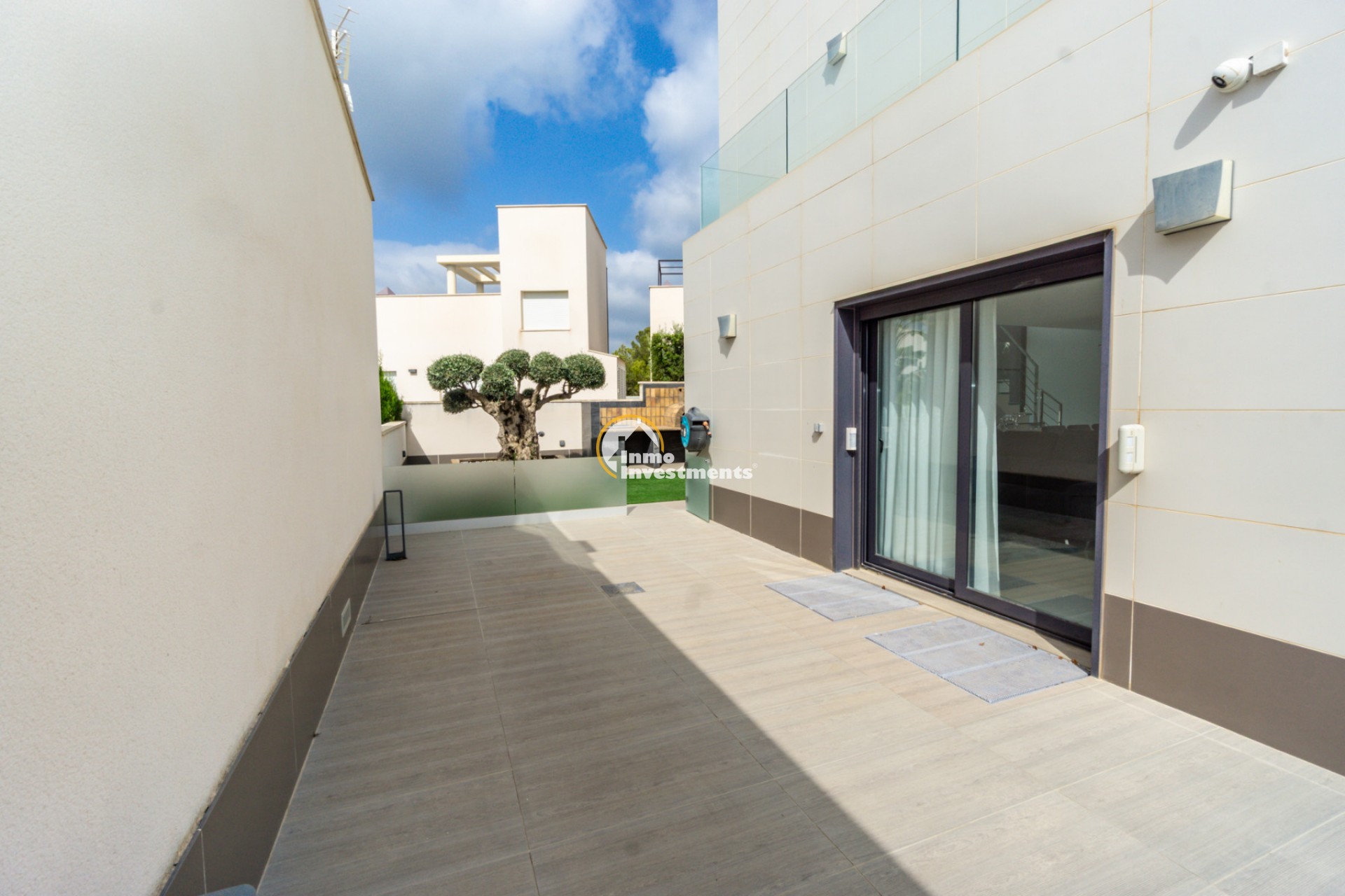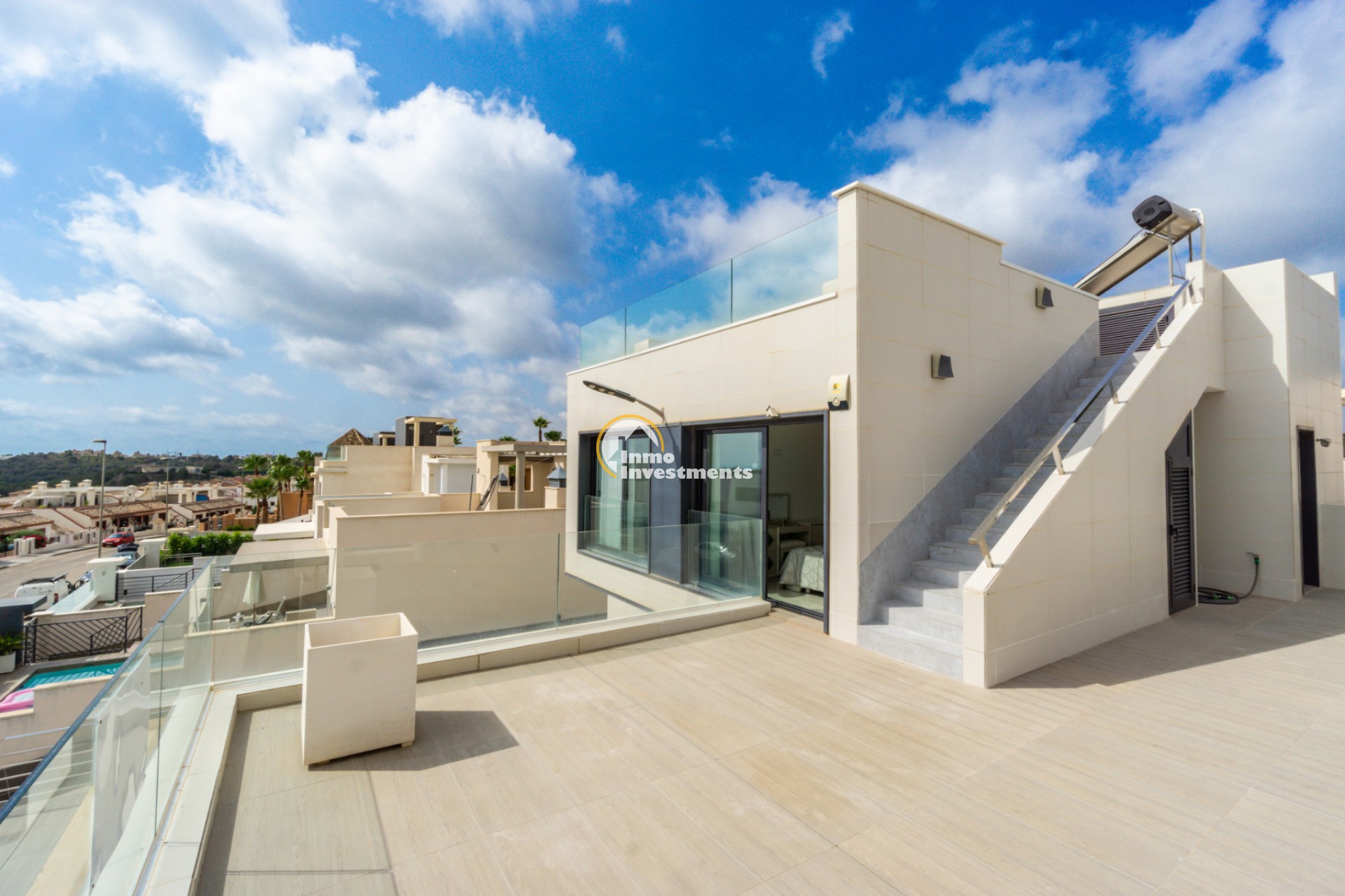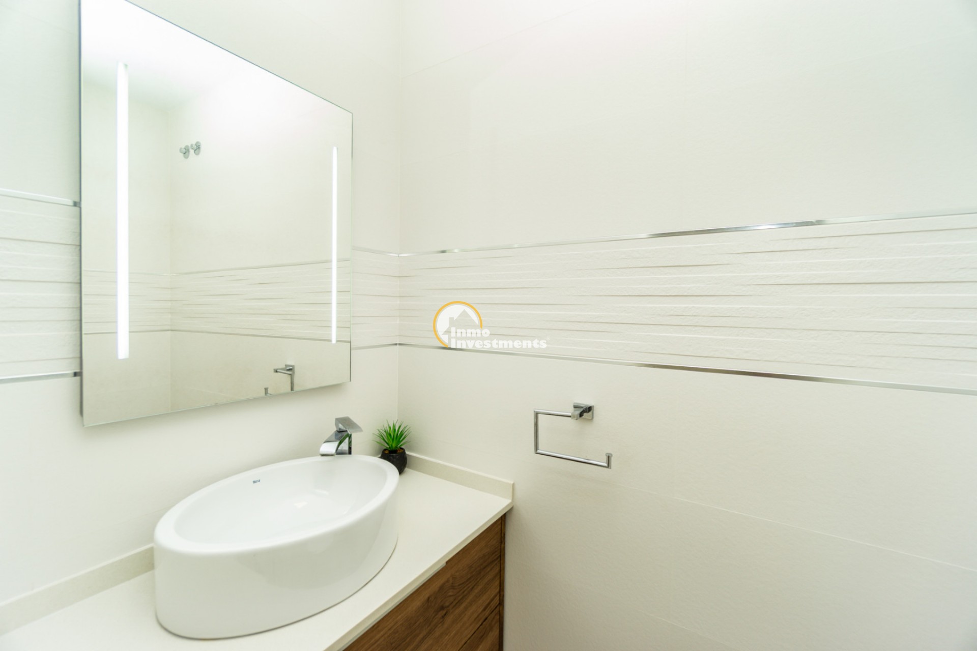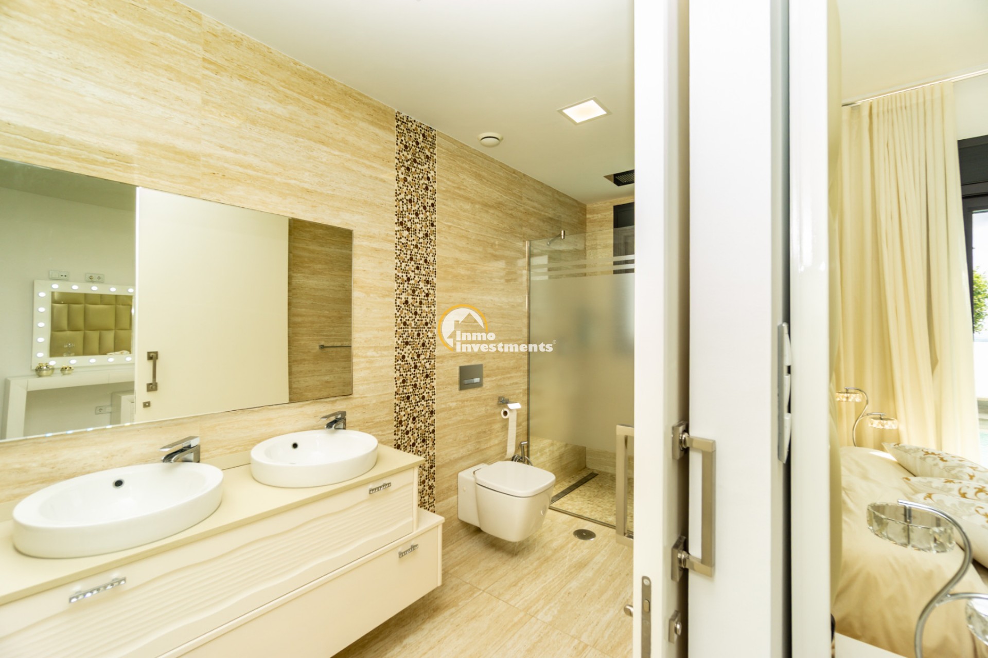 Upstairs on the first floor, you’ll find two further large bedrooms, both with en-suite bathrooms. One of them has direct access to a private terrace with fantastic open views. From here, an external staircase leads to the roof solarium, offering breathtaking 360º views of the sea and the salt lakes of Torrevieja.