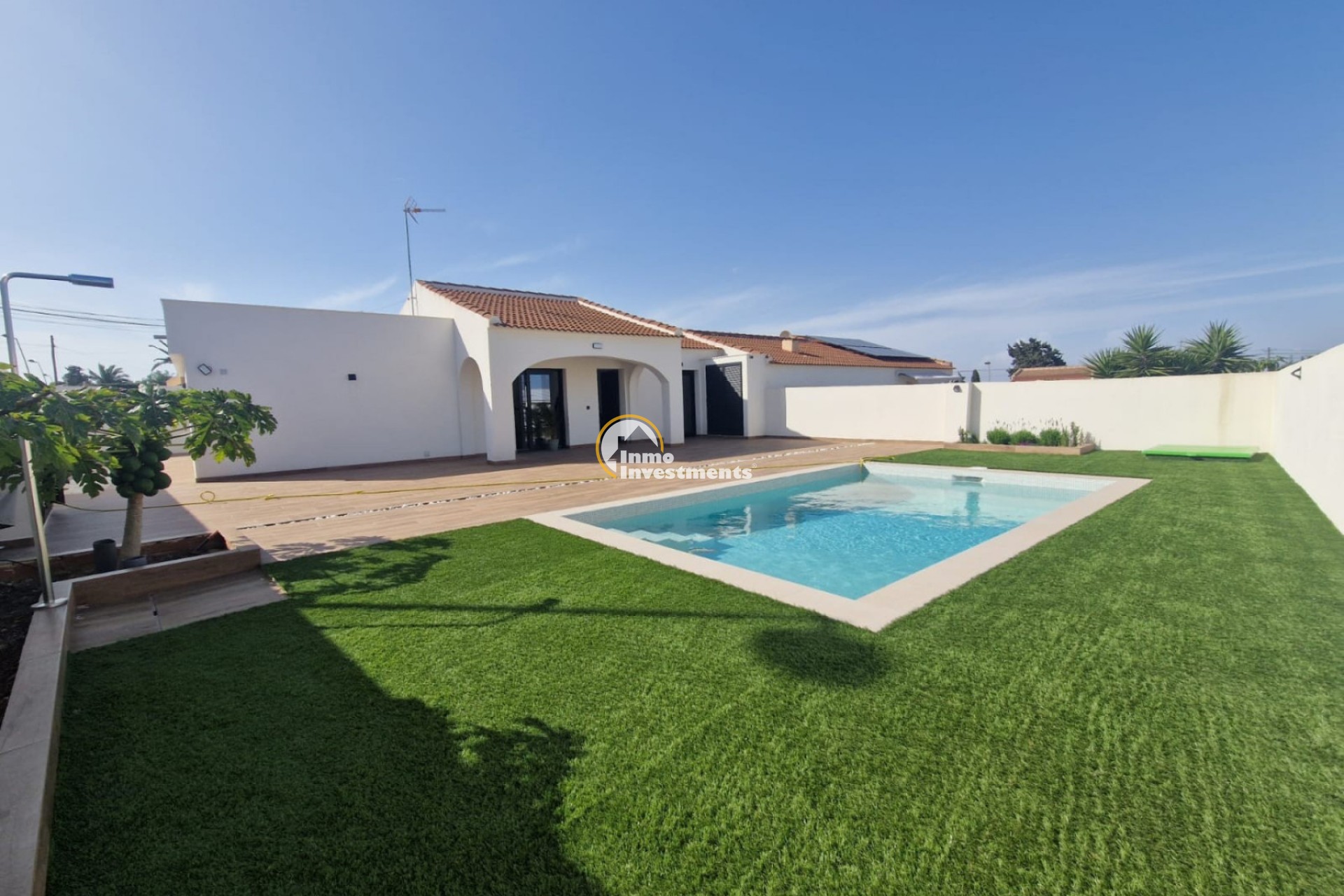 This modern new build villa in Los Balcones offers comfortable living on one level, with three bedrooms and two bathrooms. The interior features an open-plan living and dining area, a separate modern kitchen, and sliding glass doors that open directly to the pool and garden area, creating a smooth connection between indoor and outdoor spaces. The property includes a private swimming pool, an easy-to-maintain garden, off-road parking, and a covered front terrace that provides a shaded area for relaxation. The home is equipped with air conditioning throughout and is situated in a quiet residential area close to all necessary amenities. Contact us for further information!