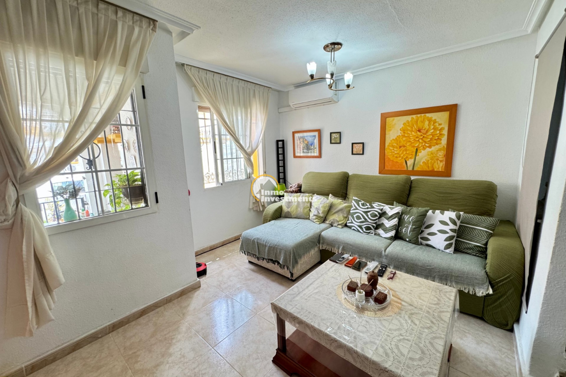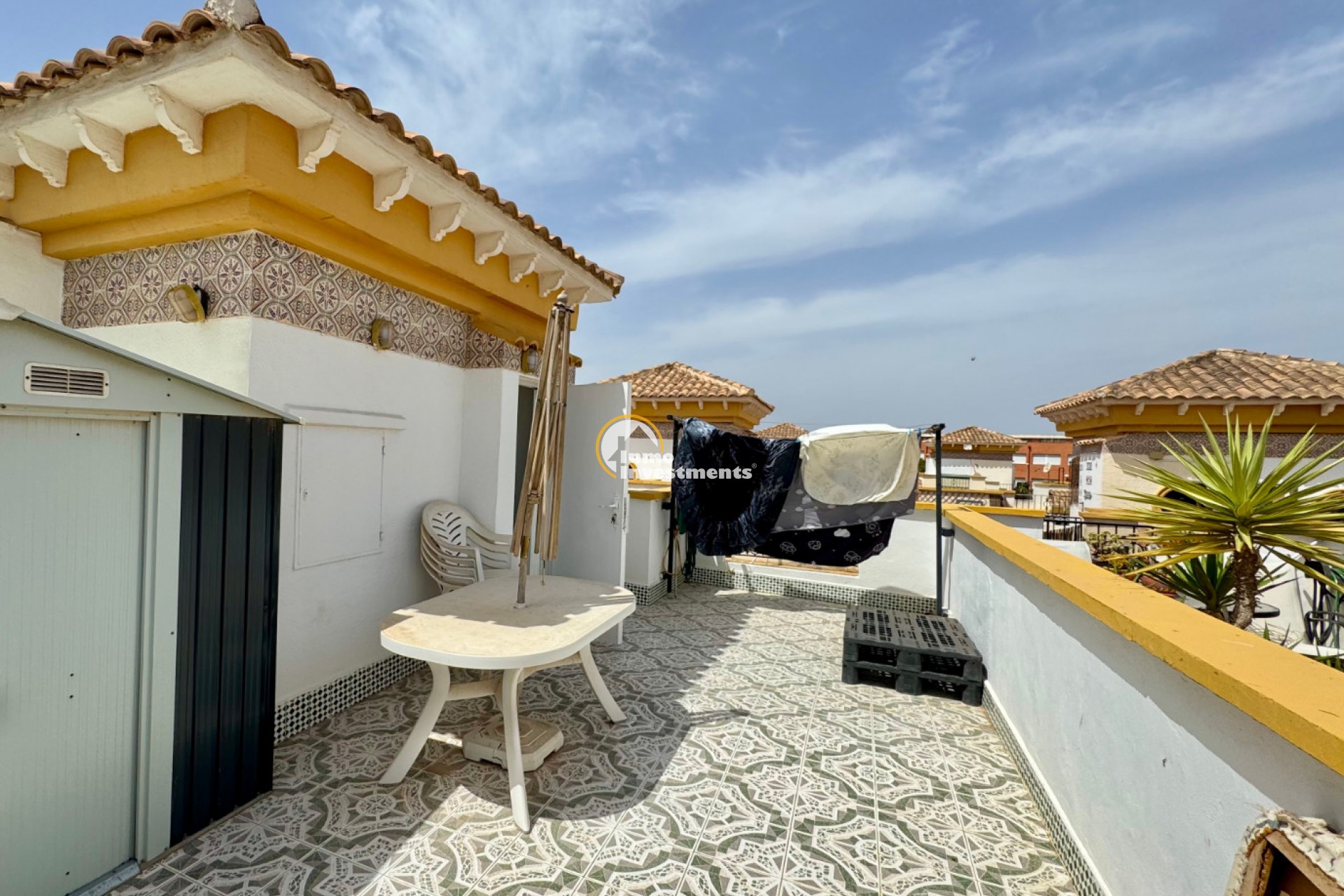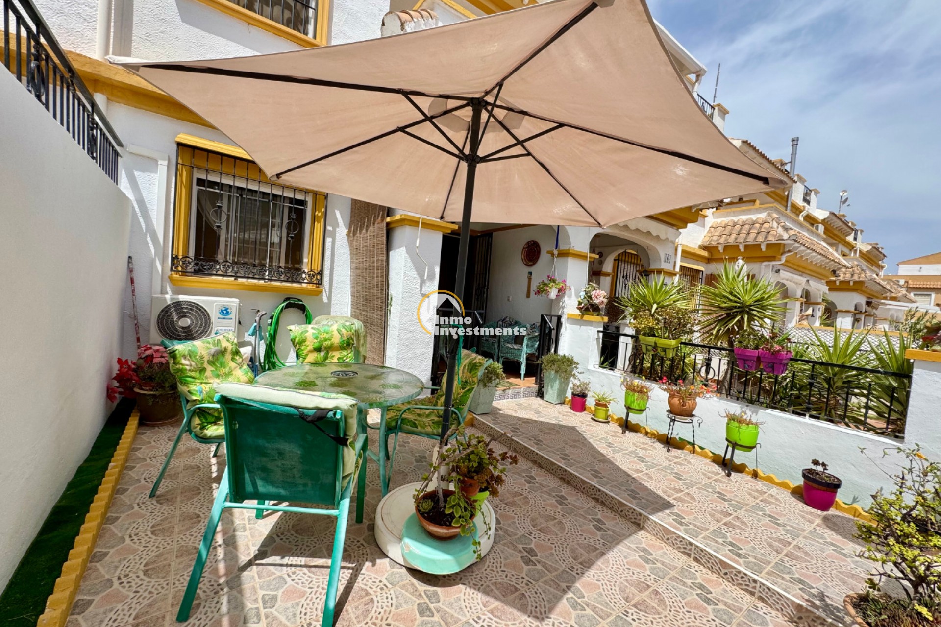 This charming town house in the popular urbanisation Jardin del Mar in Torrevieja. The property features 85 m² of living space plus a 20 m² private garden, comprising 3 bedrooms, 2 bathrooms, a bright living area, and a sunny solarium. Situated in a secure community with a large communal pool and private parking. Conveniently located close to all amenities. Contact us for further information!
