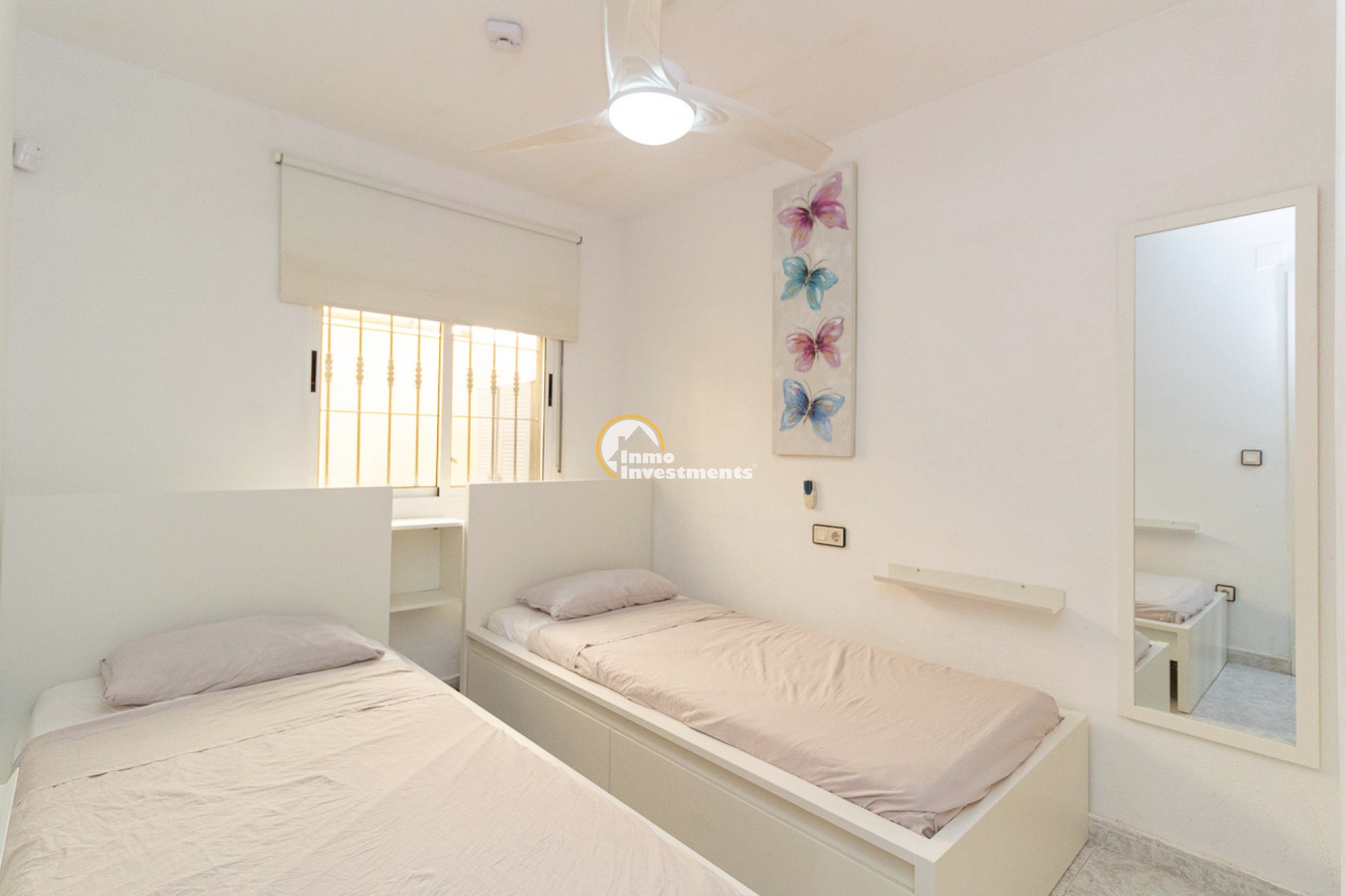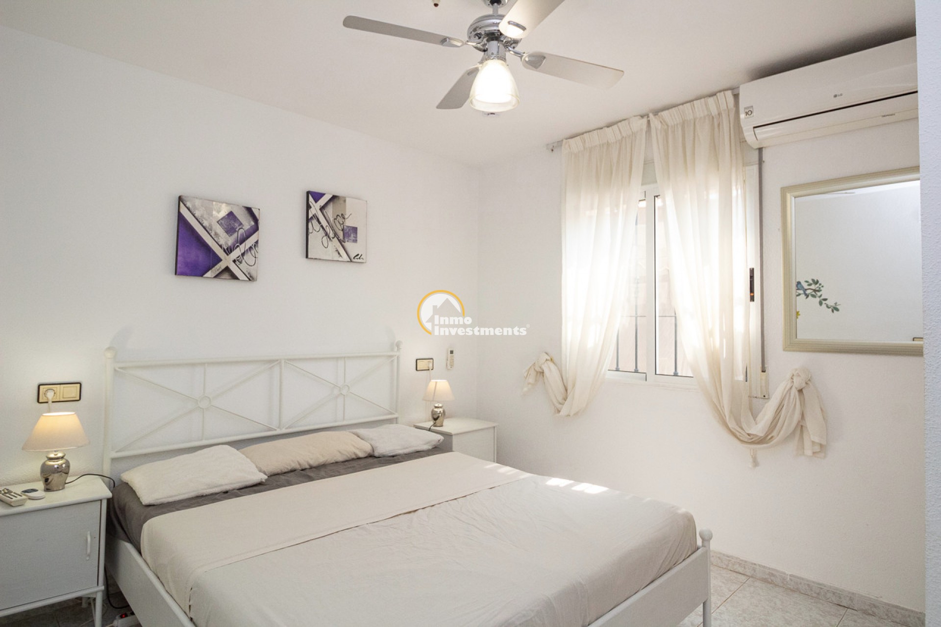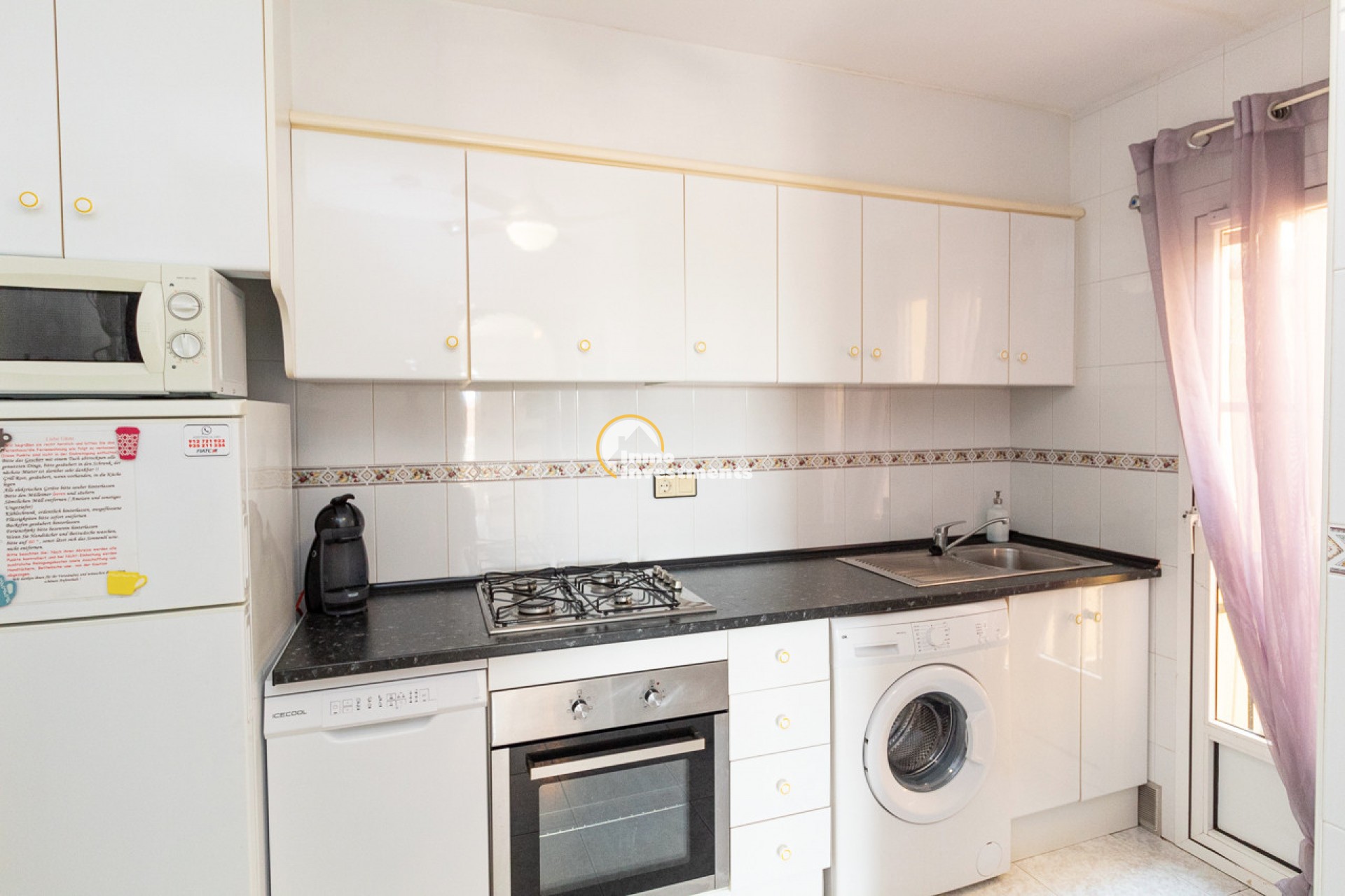 Well presented and bright ground floor apartment in La Siesta. This spacious home offers 3 bedrooms, modern bathroom, spacious lounge/dining room and independent kitchen with access to a rear courtyard, ideal for additional storage/laundry space. The property boasts a very spacious low maintenance patio garden and raised terrace for al fresco dining, brick built BBQ and retractable awnings to help with the summer sun and heat! The property has been renovated in the main and is in excellent condition, sold fully furnished with extras including air conditioning, ceiling fans, sun blinds and much more. Set on a complex with communal pool and gardens for residents, a short walk to the stunning salt lakes and local amenities of La Siesta. La Siesta features the recently opened La Siesta Park, which includes a large Pump Track for skateboards and BMX, three paddle tennis courts, and plenty of green space for outdoor activities. The area has a strong sense of community, with local churches hosting social events and gatherings, and it is well-connected to central Torrevieja, shops, and the coast. Less than 5km to the beaches and port of Torrevieja. Contact us today for a viewing.