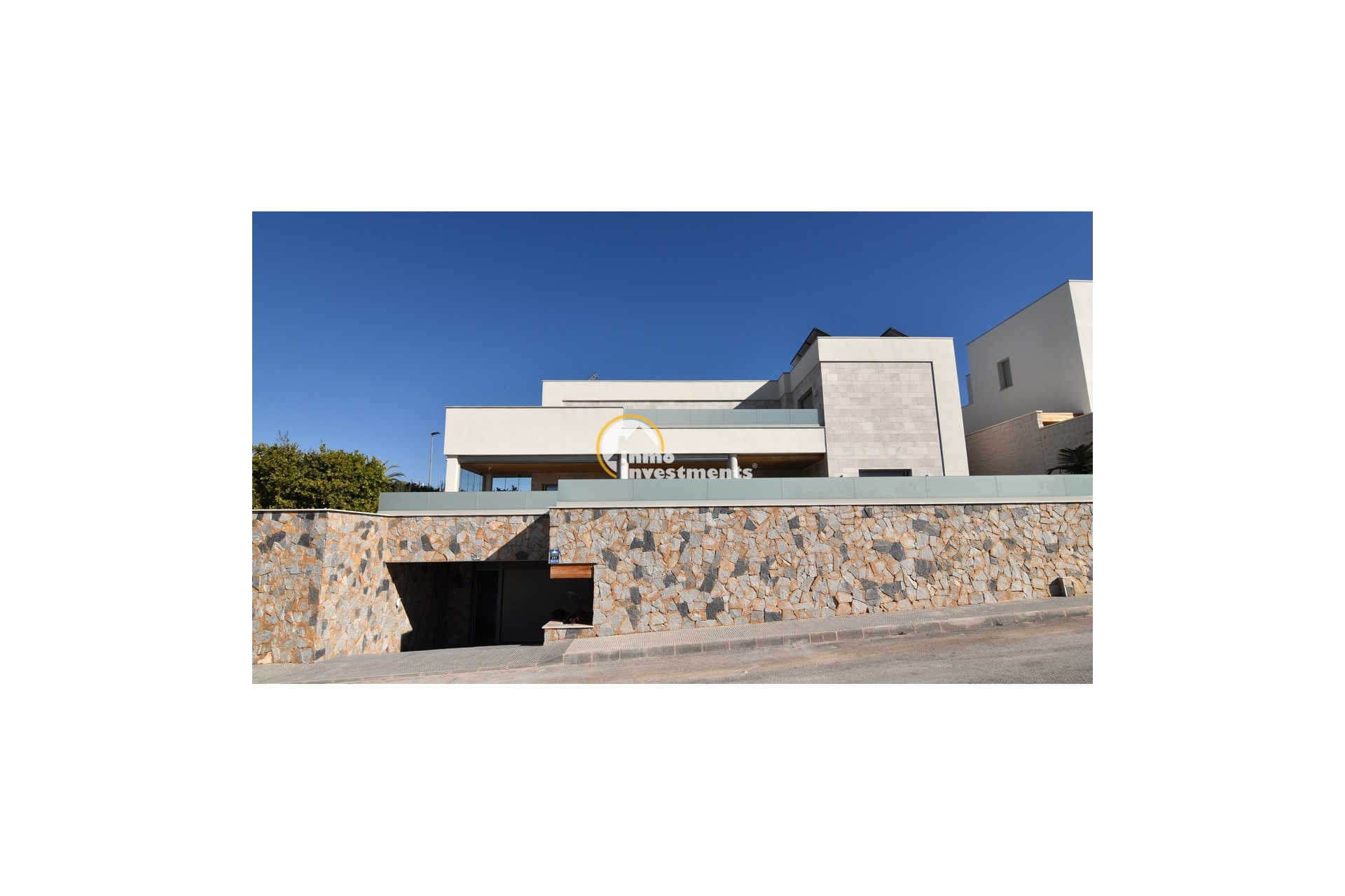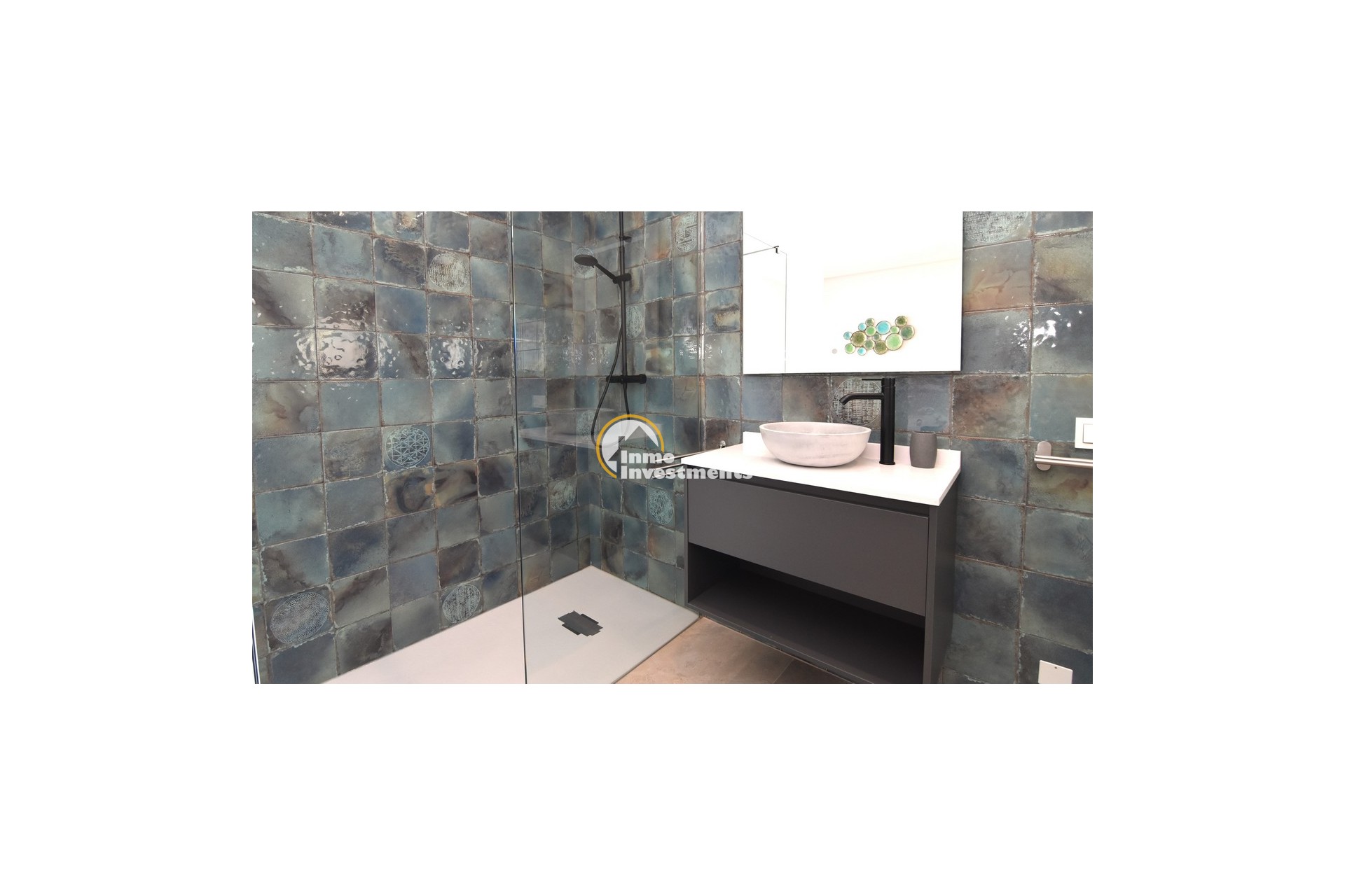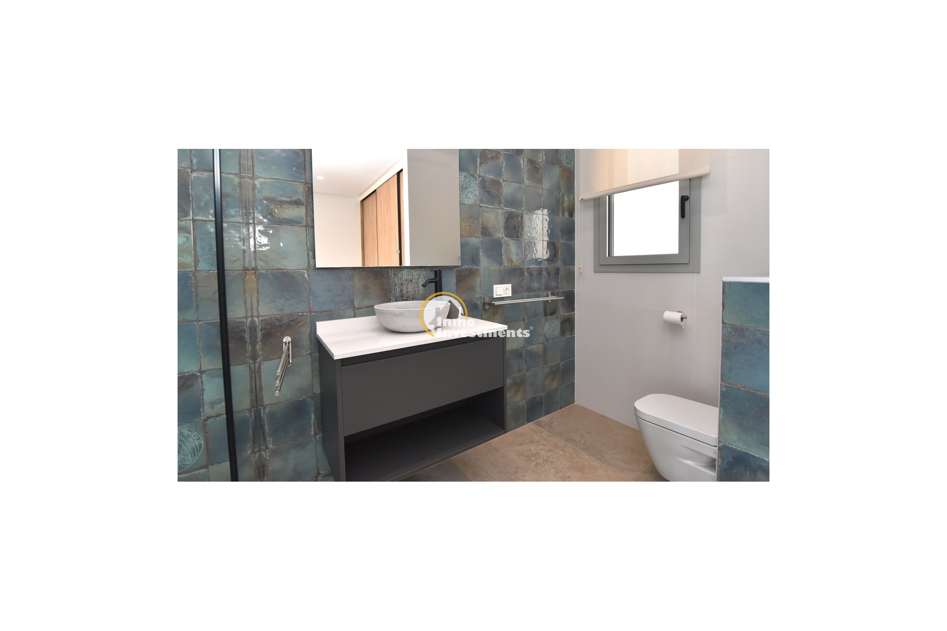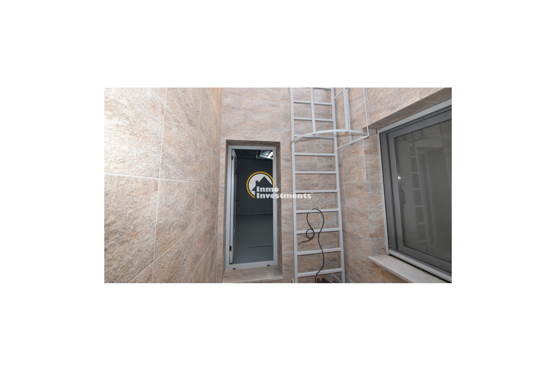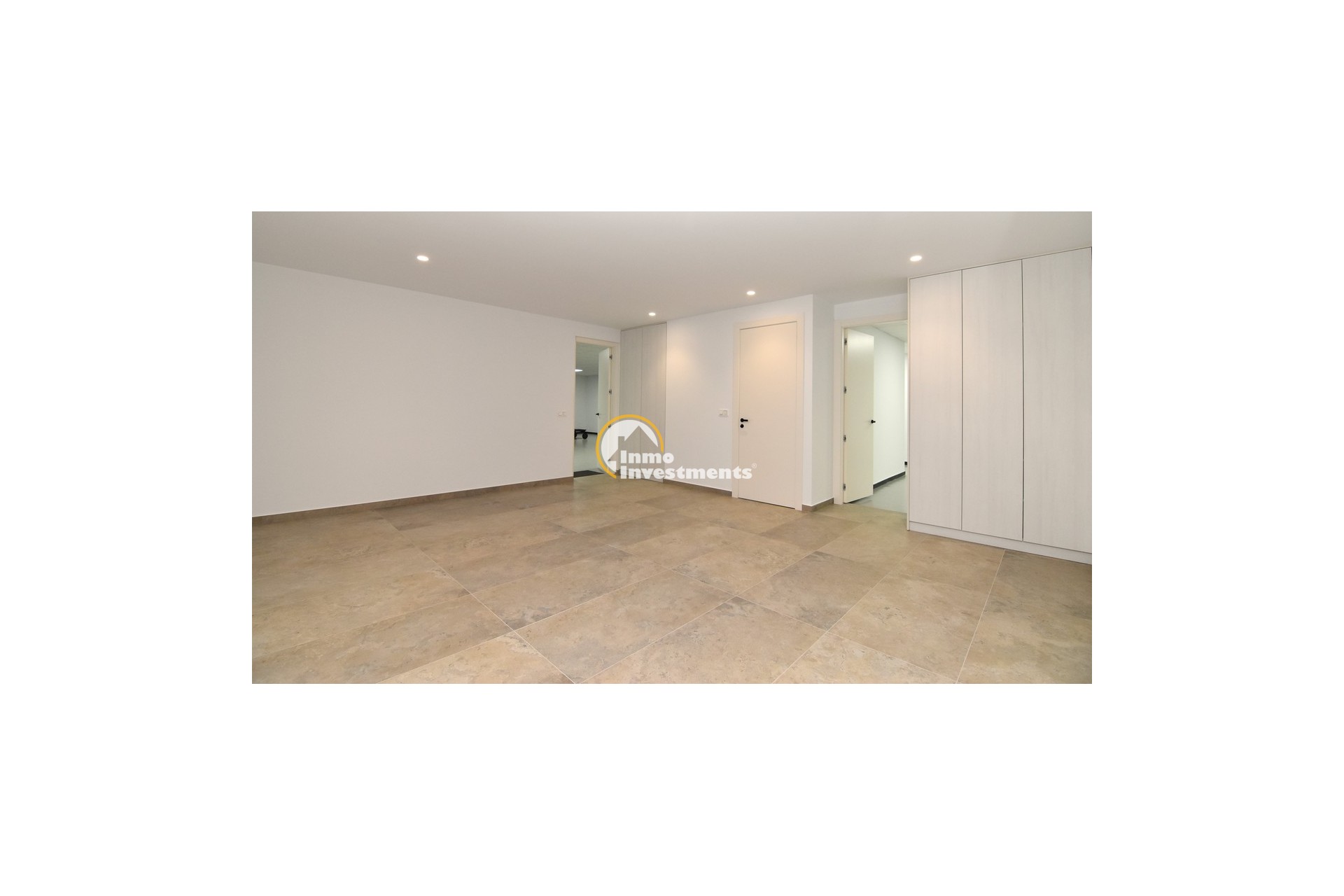 Upstairs, the home offers three further large double bedrooms, each with its own stylish open-plan bathroom. All bedrooms have direct access to a spacious upper terrace via sliding doors, offering panoramic views and ample outdoor space. A smaller balcony can also be found to the rear on this level. Motion-activated lighting in the hallway and subtle foot-level stair lighting add both safety and ambiance during evening hours.