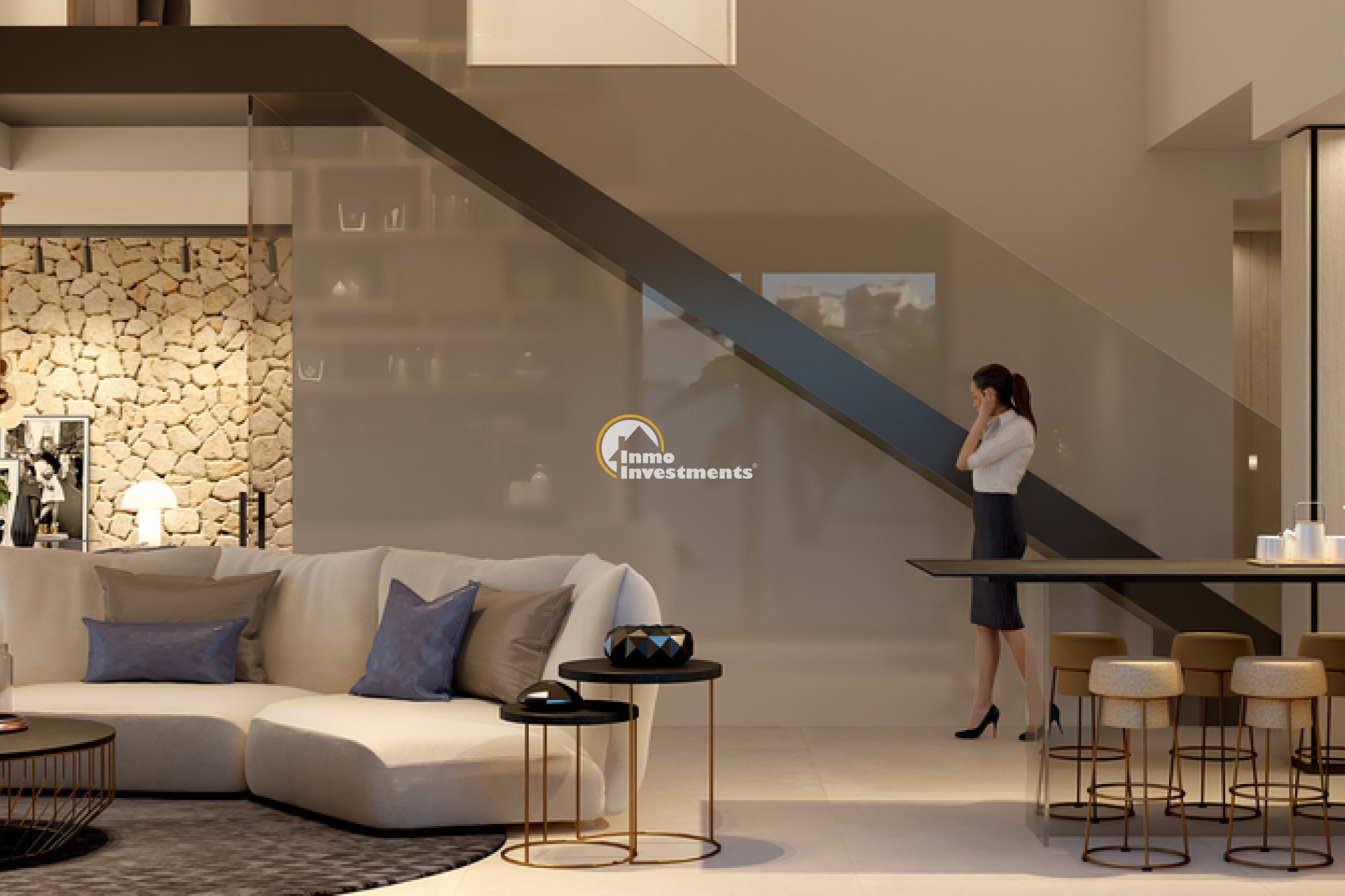 The luxury villa at La Finca Golf Resort stands out for its modern and elegant exterior design. Set on a 469 m² plot, the property boasts a perfectly manicured private garden that includes an infinity pool, ideal for enjoying the Mediterranean climate and relaxing while taking in the views of the golf course. The poolside lounge area is perfect for social gatherings and quiet moments. The villa also features a large solarium, which offers additional space for sunbathing and enjoying the breathtaking views. The underground garage provides security and convenience, allowing easy and protected access to the property.