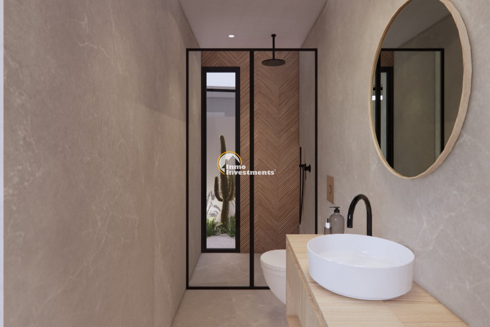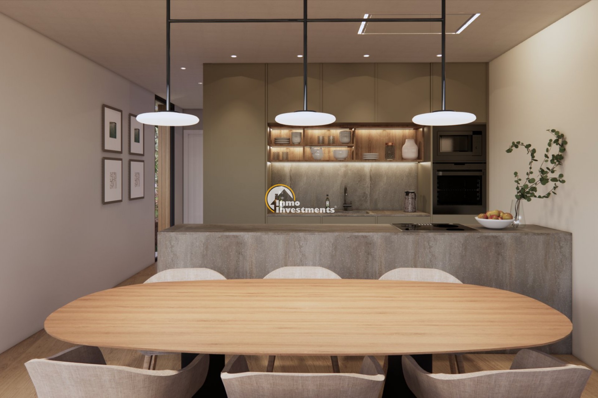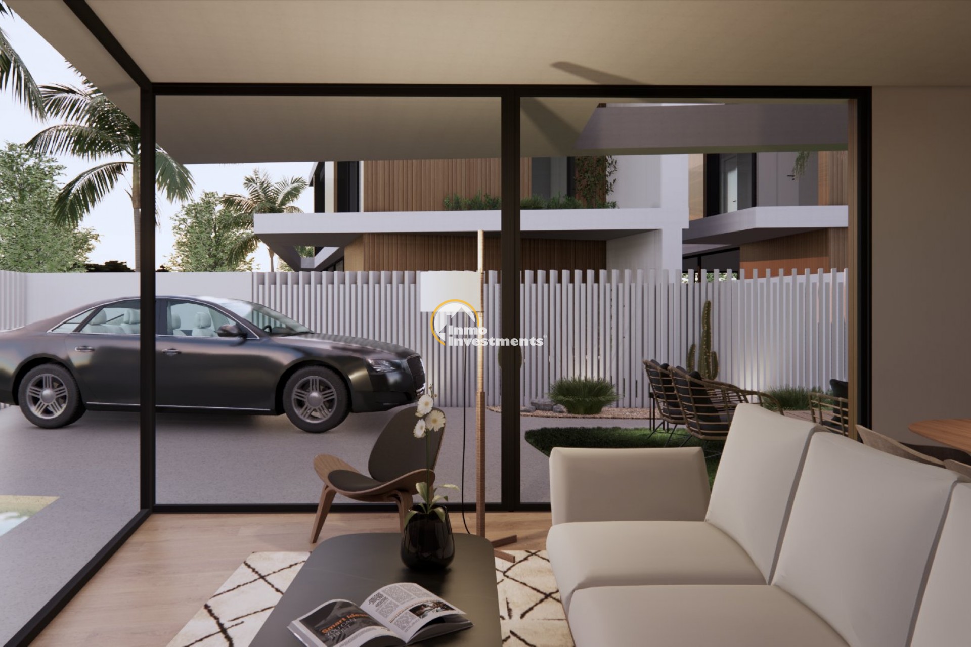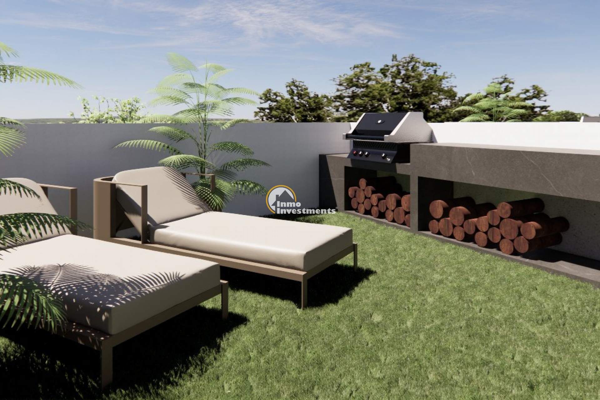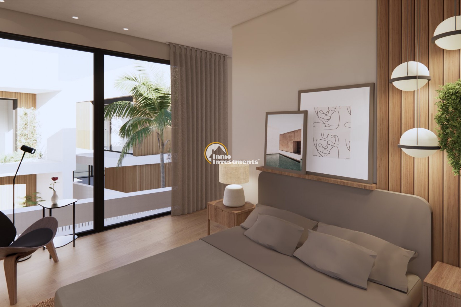 On the ground floor you will find one of the bedrooms, a bathroom and the spacious living room with open kitchen. On the first floor you will find 2 more bedrooms and 2 bathrooms, one of them en suite. In all villas, the master bedroom also has a private terrace on this floor. Each villa also has a spacious 50m2 roof terrace with sea views. The villas also feature fully finished kitchen with all appliances, full installation of air conditioning, fully finished bathrooms, fitted wardrobes and electric blinds.