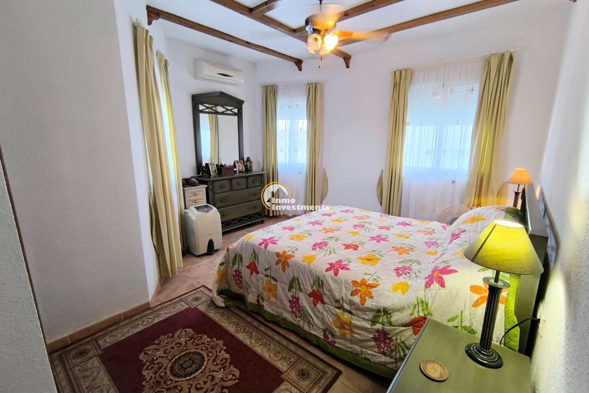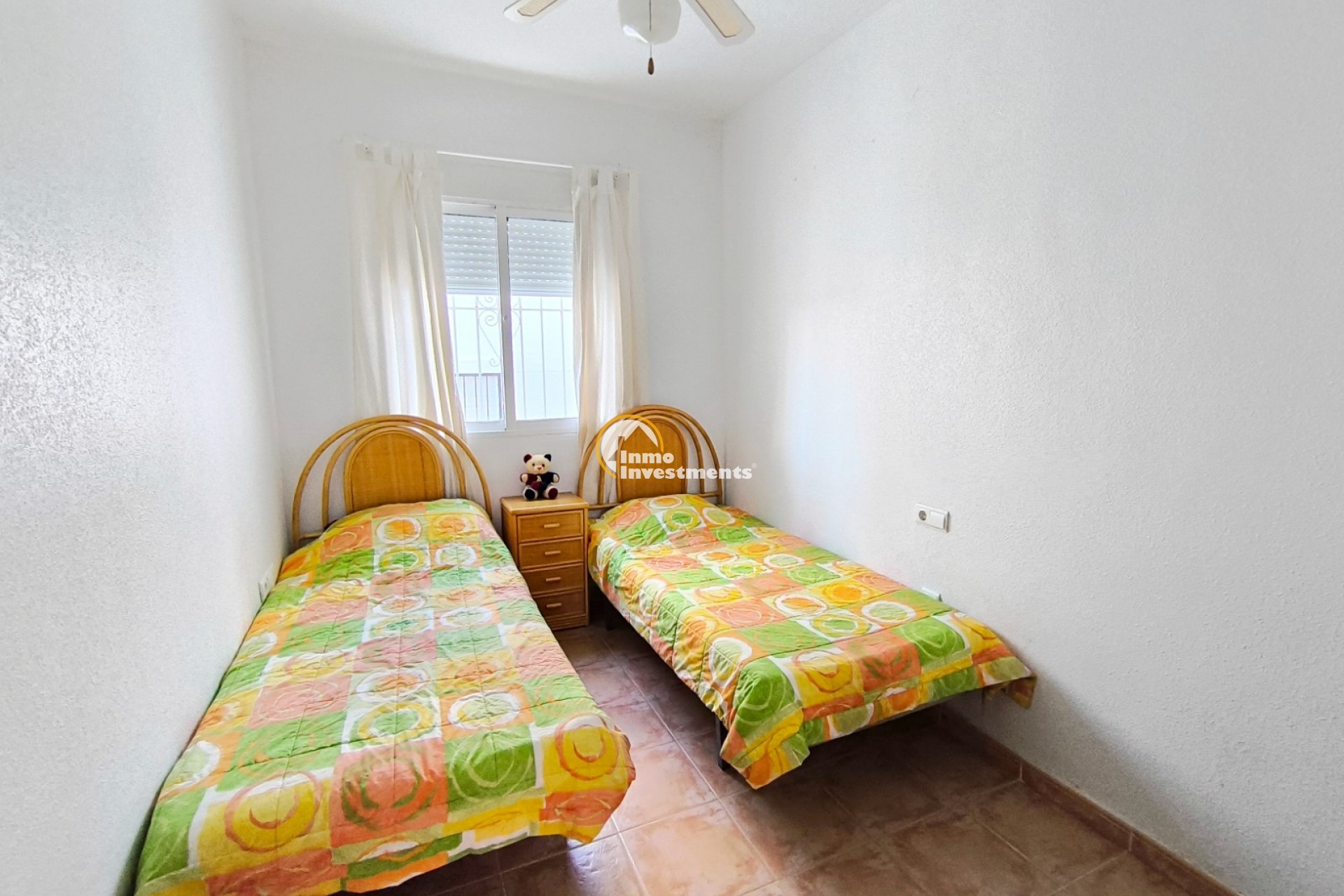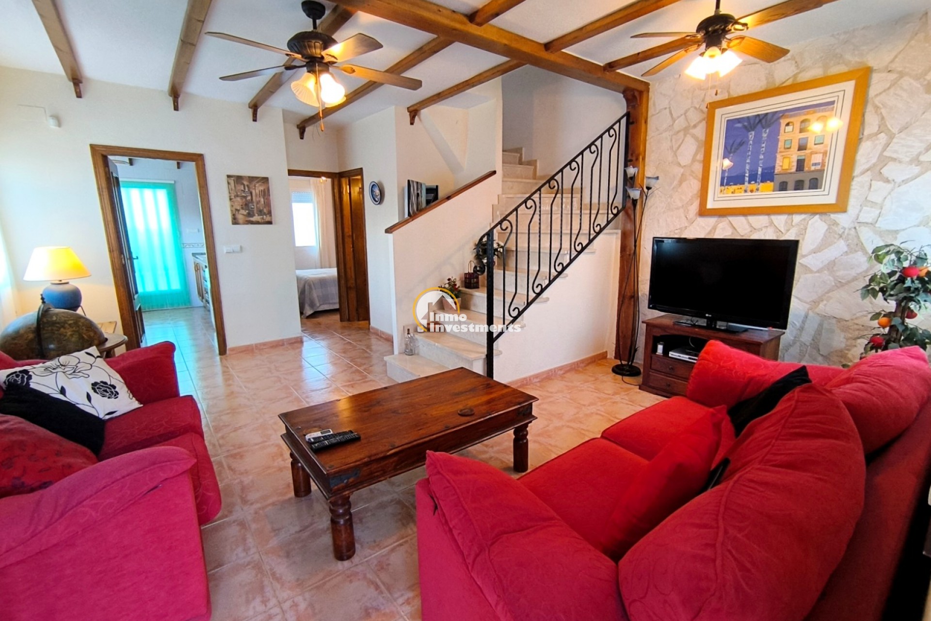 This corner town house offers a spacious lounge, dining-sized kitchen, three double bedrooms, a ground-floor shower room, and a full bathroom upstairs. Outside, the property includes private gardens, off-road parking, a sunny terrace, and a rooftop solarium with mountain views. Located within walking distance of La Finca Golf’s commercial centre and close to all amenities, the home also has access to a communal pool. Equipped with air conditioning and heating, it provides comfort all year round.