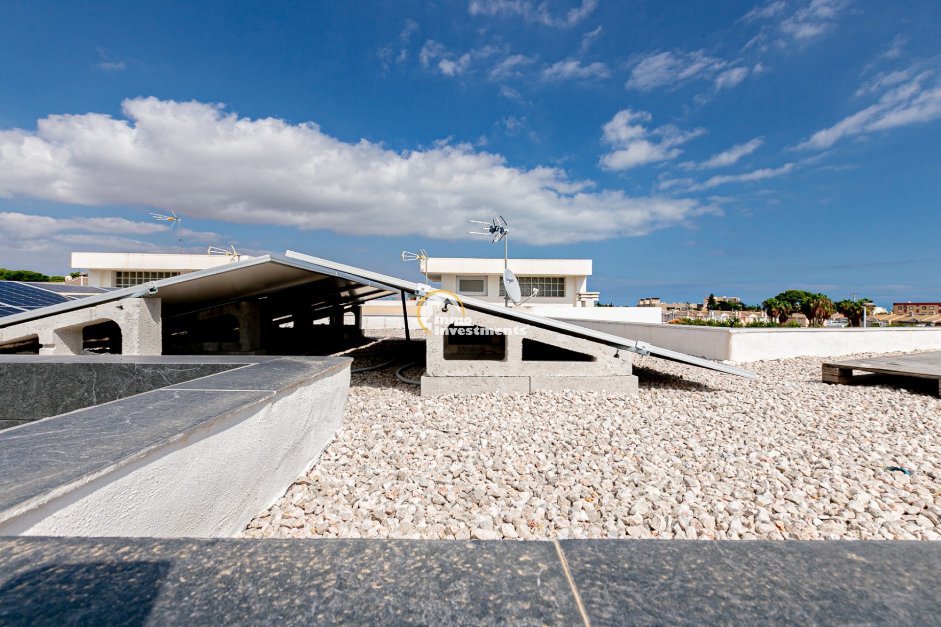 Less than 200 m away are Colegio Castelar and Castellar College; just a short walk to bars and restaurants such as Kus Karaoke, Trebol Sport Bar, Pub Estrella or Bombay Tacos – Indian & Mexican Restaurant; supermarkets including Pinatar II, Dia and Carrefour Express; and several banks like La Caixa, SabadellCAM and Bankia. The area also offers a private hospital, gym and multiple entertainment options, making it ideal for both permanent living and holidays.