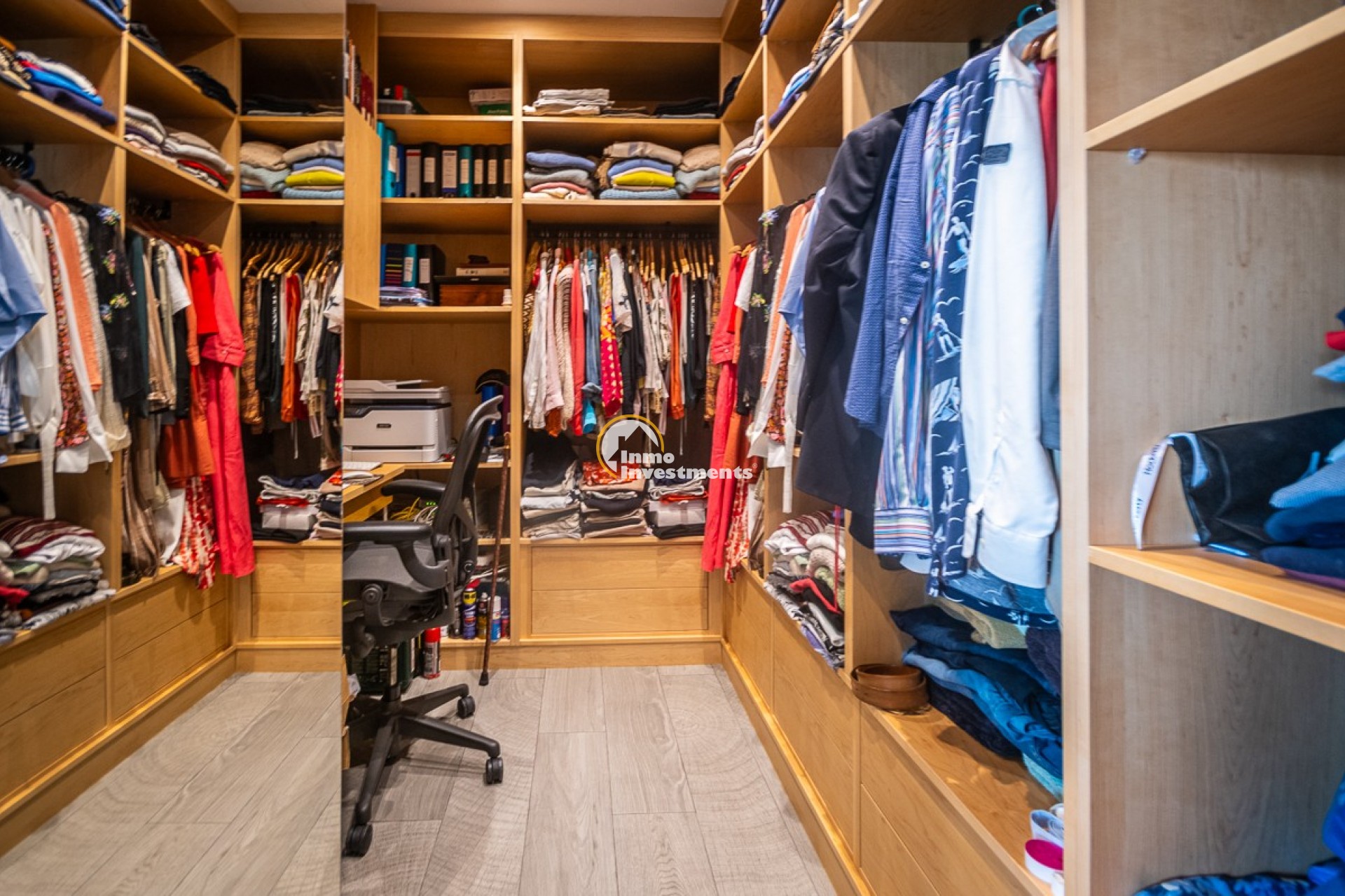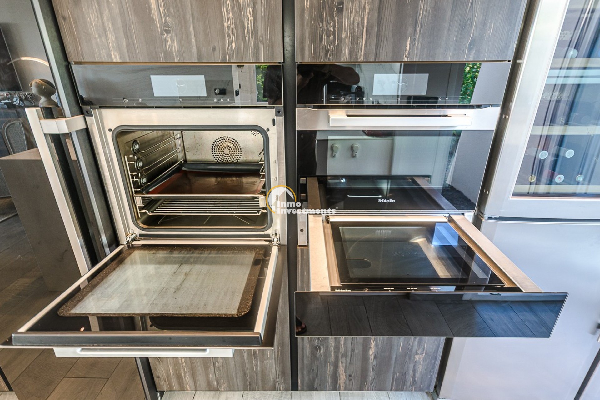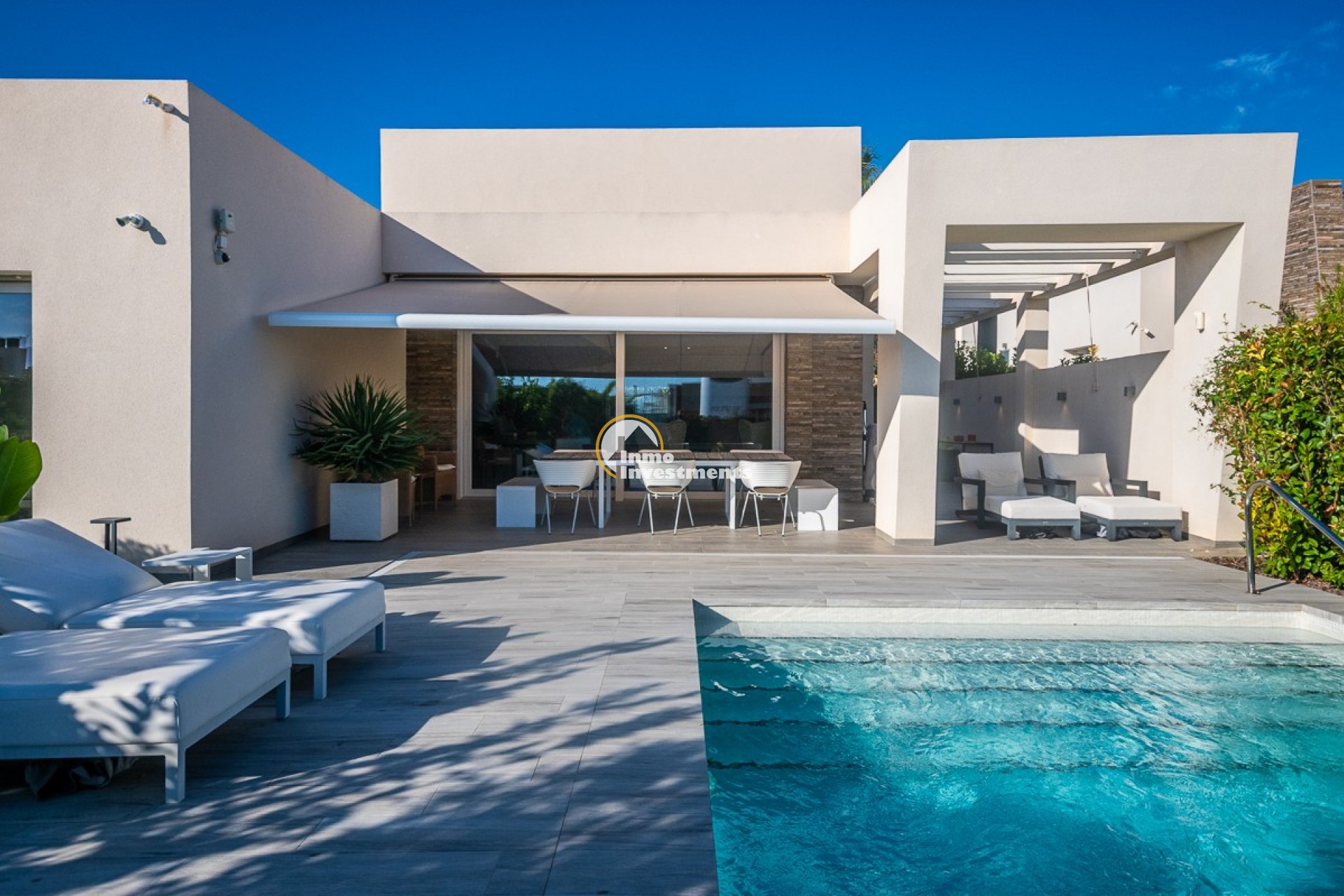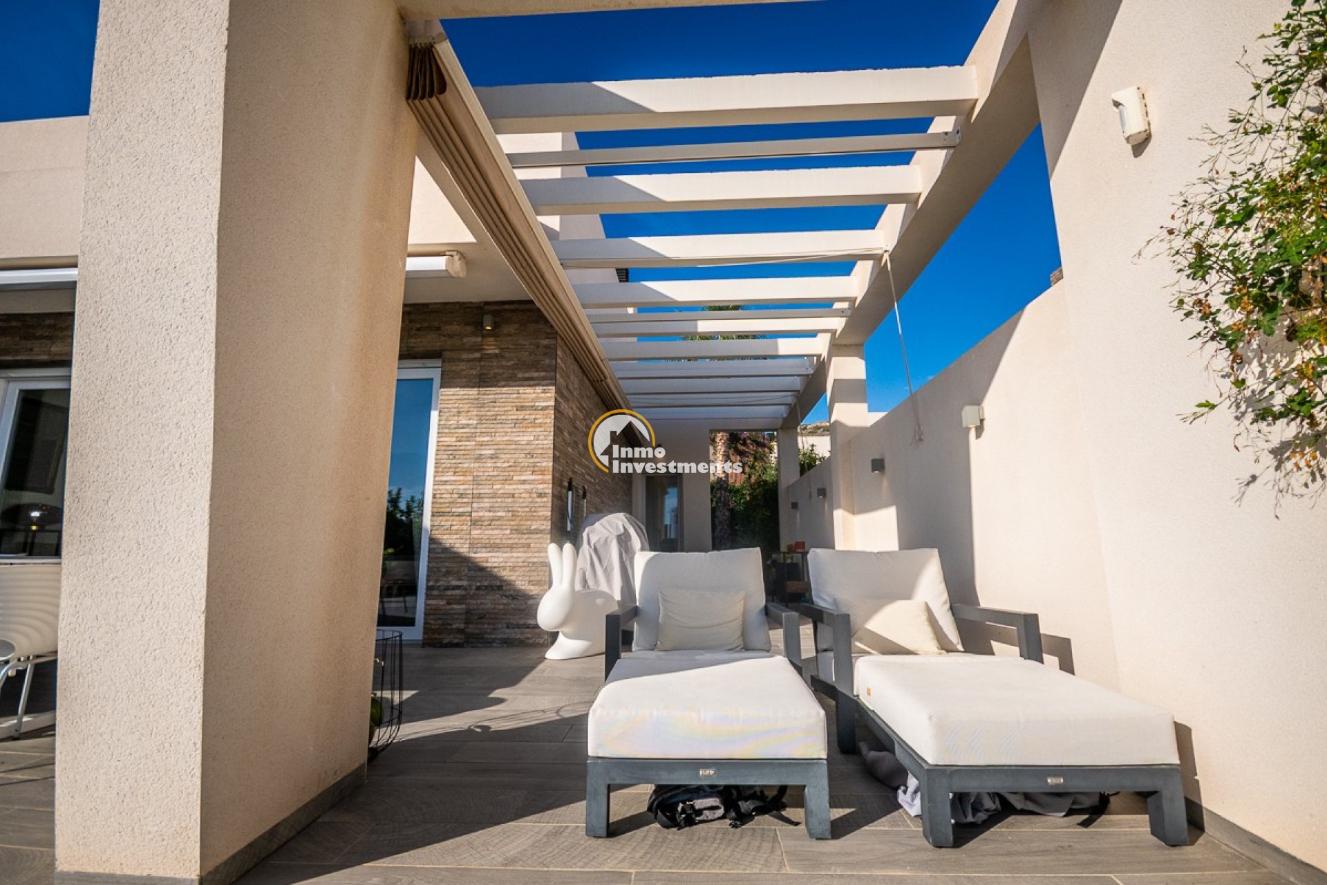 Stunning Detached Villa with high-end extra´s at La Finca Golf Resort – Algorfa This unique villa, situated on a spacious 500m² plot, offers a perfect blend of modern comfort and Mediterranean charm. The bright, open-plan layout seamlessly connects the living area, kitchen and dining space, all opening onto an impressive L-shaped terrace, beautifully landscaped garden, and a private pool. Thanks to the large windows, natural light floods every corner of the home, creating a warm and inviting atmosphere. The terrace, partially covered by a stylish pergola with electric awnings, is the ideal spot to relax or entertain — a perfect setting to enjoy the Mediterranean climate all year round. Originally designed with three bedrooms, the current owners have customised the layout into a more spacious two-bedroom configuration. With minimal effort, the villa can easily be converted back into a three-bedroom home. The 3th bedroom can be constructed again if the buyer wishes this. Do you drive electric? Your own charging point is already installed, and the house has 3-phase selectric wires fitted up to 400V This villa is equipped to the highest standard: Zoned hot/cold air conditioning Underfloor heating in the bathrooms Security system with video surveillance Smart home automation Electric shutters Private pool with outdoor shower Charging point for electric vehicles Multiple electric awnings Private parking with automatic gate Colorful garden with fruit treesHigh-tech extras throughout the house The mature garden surrounds the villa with fruit trees and aromatic plants, offering privacy and a sense of tranquillity. The kitchen is a true highlight — fitted with high-end Miele appliances and finished to the very best quality standards. There is even a basement that still needs to be finished wher you have more then 100m2 to make your own extra rooms, mancave or bodega.. Located within the prestigious La Finca Golf Resort in Algorfa, at the heart of the Vega Baja, this home offers access to exclusive amenities: fine dining restaurants, a luxurious 5-star hotel with spa and gym, an elegant clubhouse, and the renowned La Finca 18-hole golf course. Just a short drive away you’ll find the beautiful beaches of Guardamar and Torrevieja, where the sun shines over 300 days a year. Both Alicante and Murcia airports are within easy reach — 40 and 55 minutes respectively. A truly exceptional villa, offering peace, luxury and the perfect Mediterranean lifestyle.