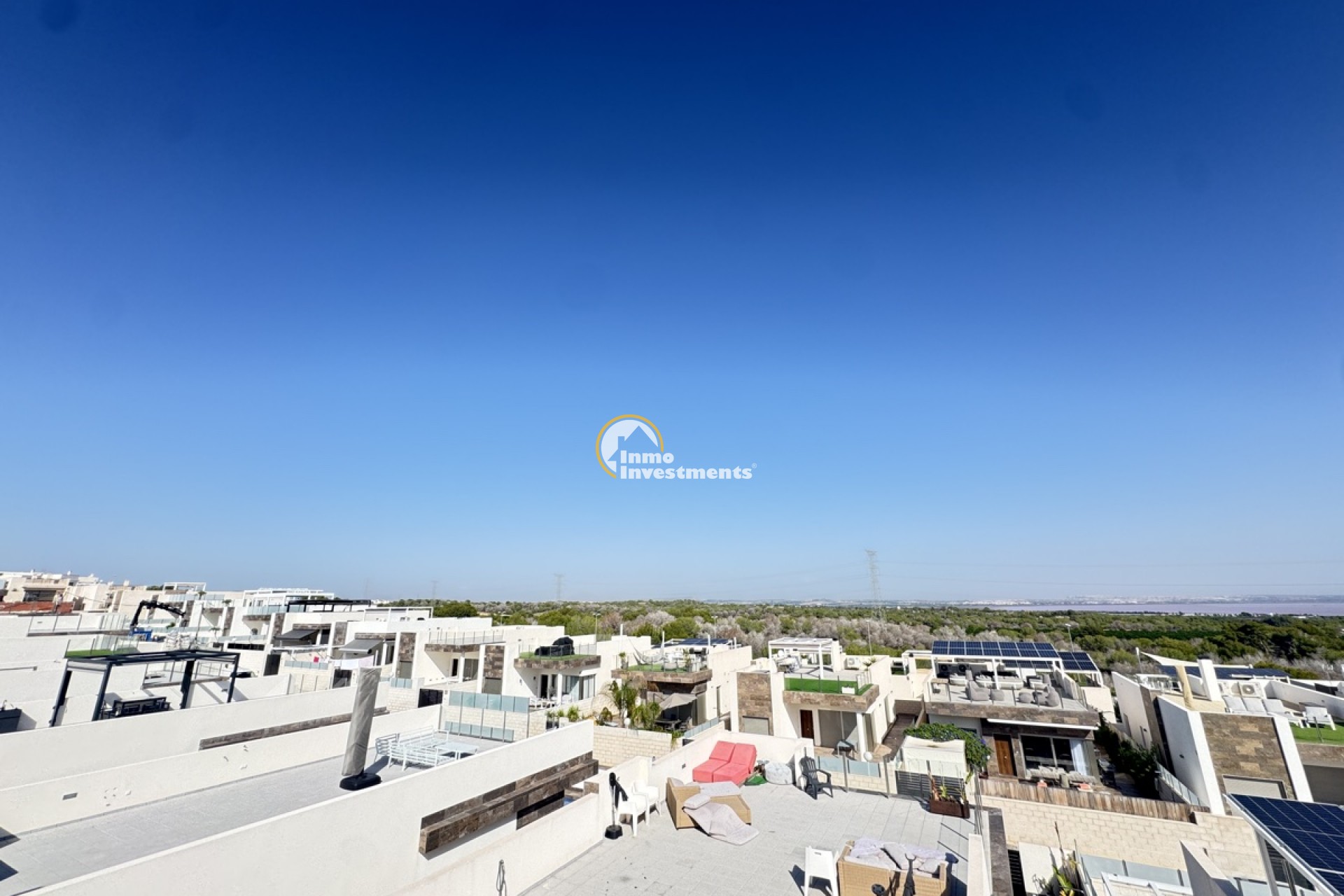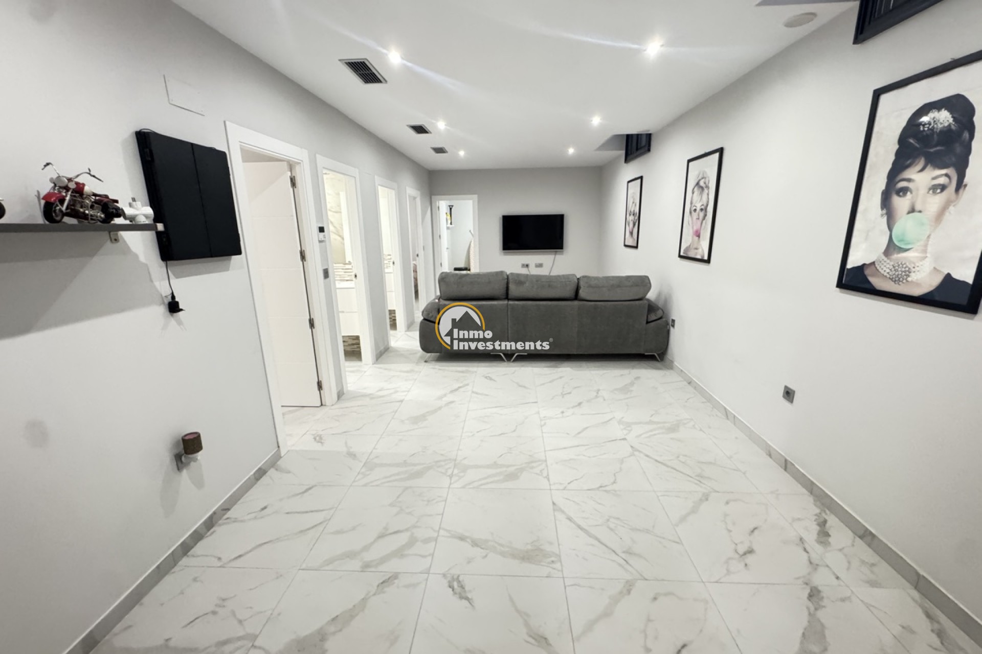 The villa includes a spacious underbuild with two bedrooms, two bathrooms, a lounge, and a utility room — ideal for guests or family. The large roof terrace features an outdoor kitchen and panoramic views of the Torrevieja Pink Lakes.