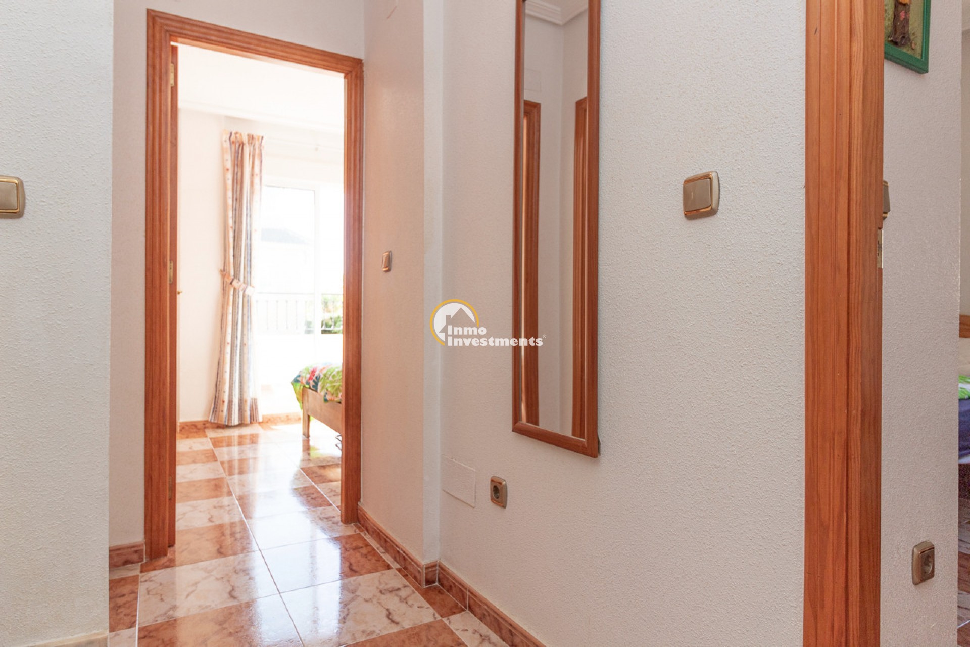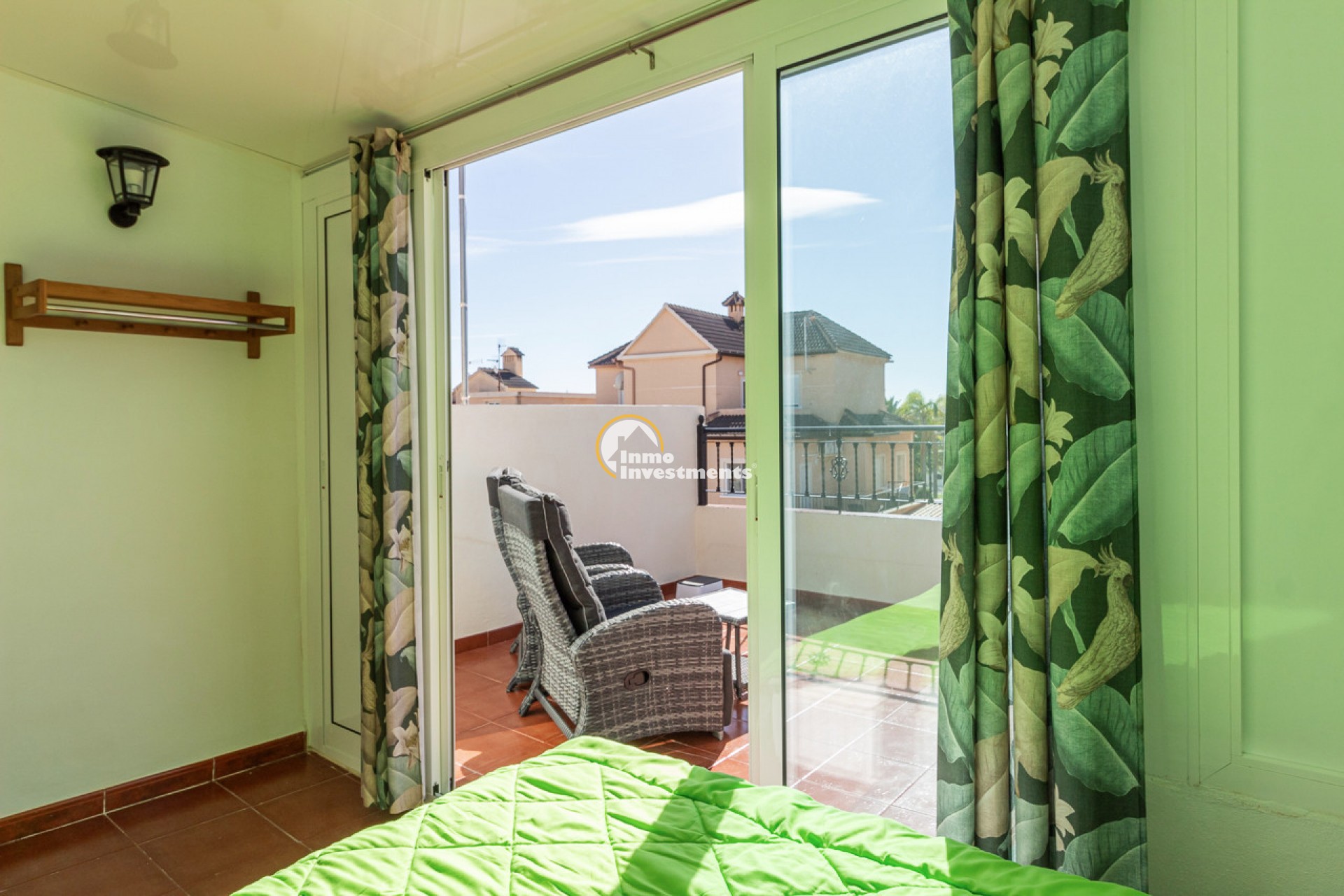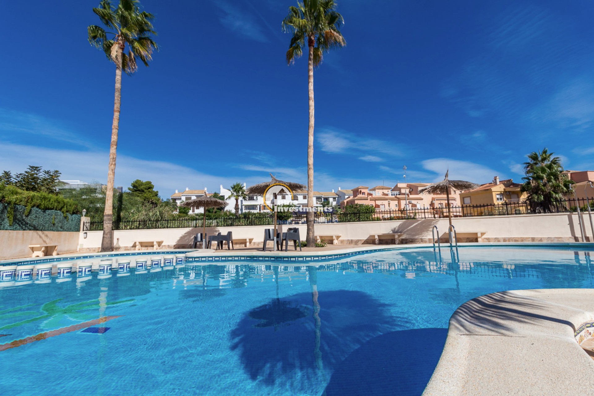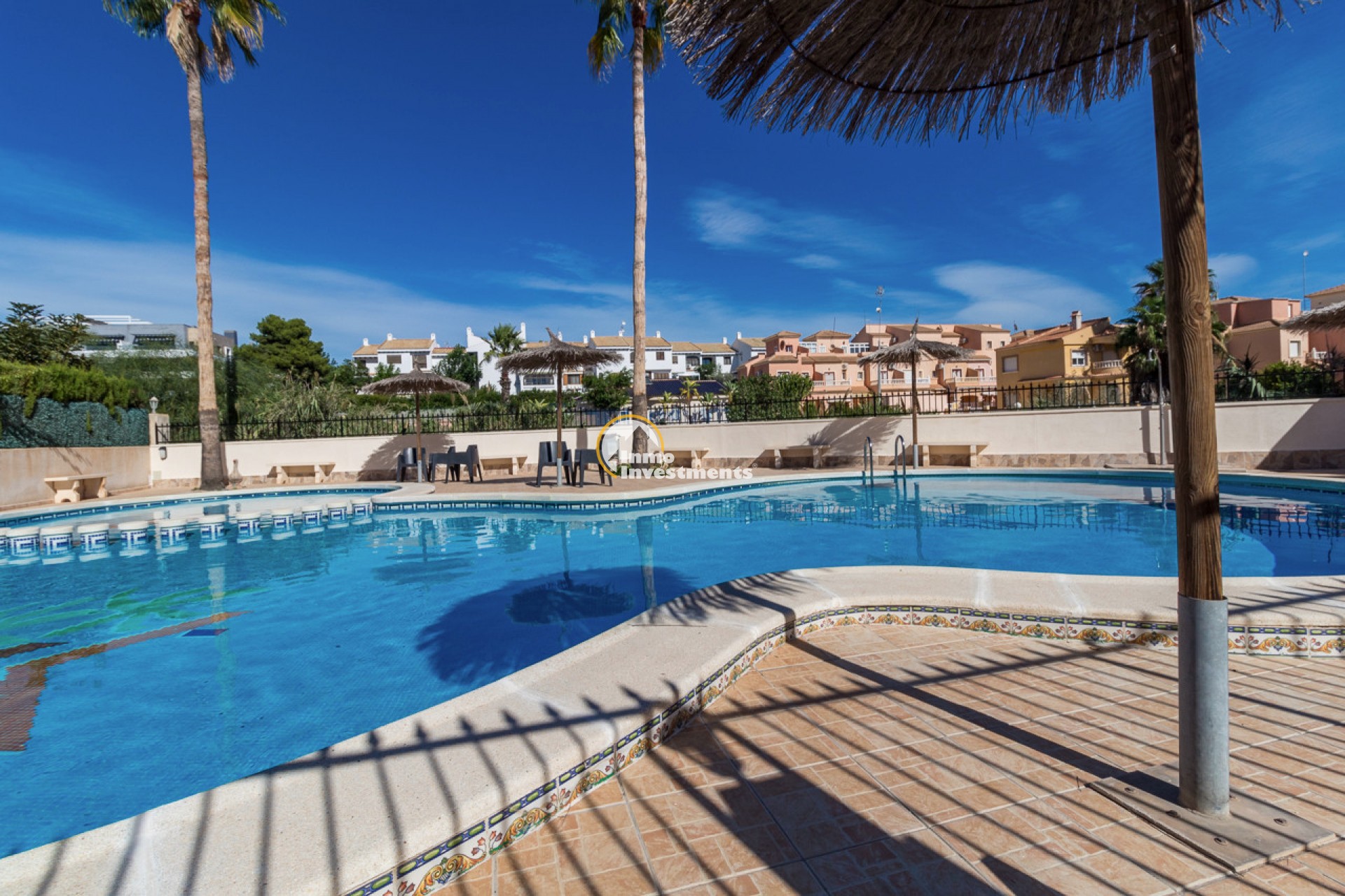 Outstanding location for this San Jose quad villa, located on the border of La Zenia and Playa Flamenca, located on the highly sought after Villas San Jose complex. The spacious villa offers 2 double bedrooms, master bedroom with sunny balcony terrace with lateral sea views, full family bathroom, downstairs WC, spacious lounge/dining room and fully equipped kitchen with breakfast bar. The lounge and dining area can easily be separated to add in a third downstairs bedroom. The villa also boasts a bonus room on the top floor with access to the sun roof terrace , this is currently serving as a bedroom but could equally be used as a studio, office or simply additional storage space. Outside space boasts, patio garden with renovated tile work giving it a clean and modern feel and on-site parking. The property is sold fully furnished as seen with extras including air conditioning, security shutters and grilles. Highly sought after residential complex with communal pool for adults and children. Walking distance to all necessary local amenities including the La Zenia Boulevard shopping mall, all local amenities of Playa Flamenca,the La Zenia beach and much more. Viewing highly recommended for this excellent value for money property. Contact Inmo Investments today for your viewing appointment.