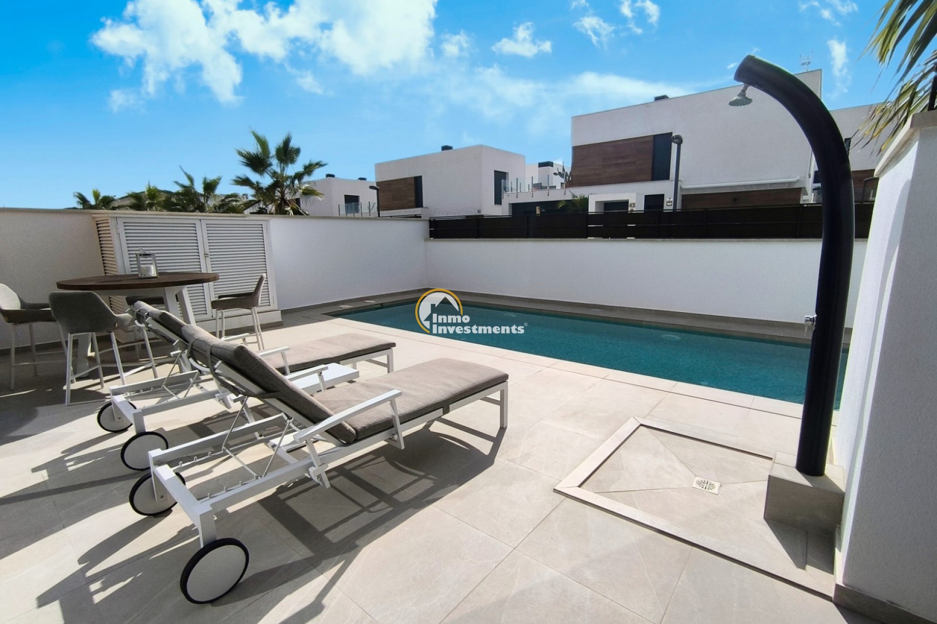 **Stunning End of Terrace Villa in La Finca Golf Resort, Algorfa**Discover the perfect blend of luxury and comfort in this exquisite end of terrace villa located in the prestigious 5-star La Finca Golf Resort. With thoughtfully designed living space, this home boasts three beautifully crafted floors, making it ideal for both relaxation and entertainment. The central position on the plot allows for stunning gardens on three elevations, while the private parking ensures convenience at all times.Step inside to find a contemporary open-plan kitchen, dining, and lounge area, complete with a Quooker tap for instant hot/cold as well as filtered, chilled, still & sparkling water. The main level features a double bedroom with an en-suite shower room, along with a guest cloakroom. Upstairs, two additional double bedrooms each have dedicated en-suite shower rooms, providing ample privacy for family or guests. Access to a sun-drenched terrace enhances the outdoor living experience.The versatile lower ground floor offers a spacious relaxation and games room, perfect for movie nights or entertaining friends. Additional amenities include a utility room, modern shower room, ducted hot & cold air-conditioning, and a monitored alarm system for peace of mind. Enjoy the heated swimming pool area, electric gates, and awnings that add to the home's appeal.
