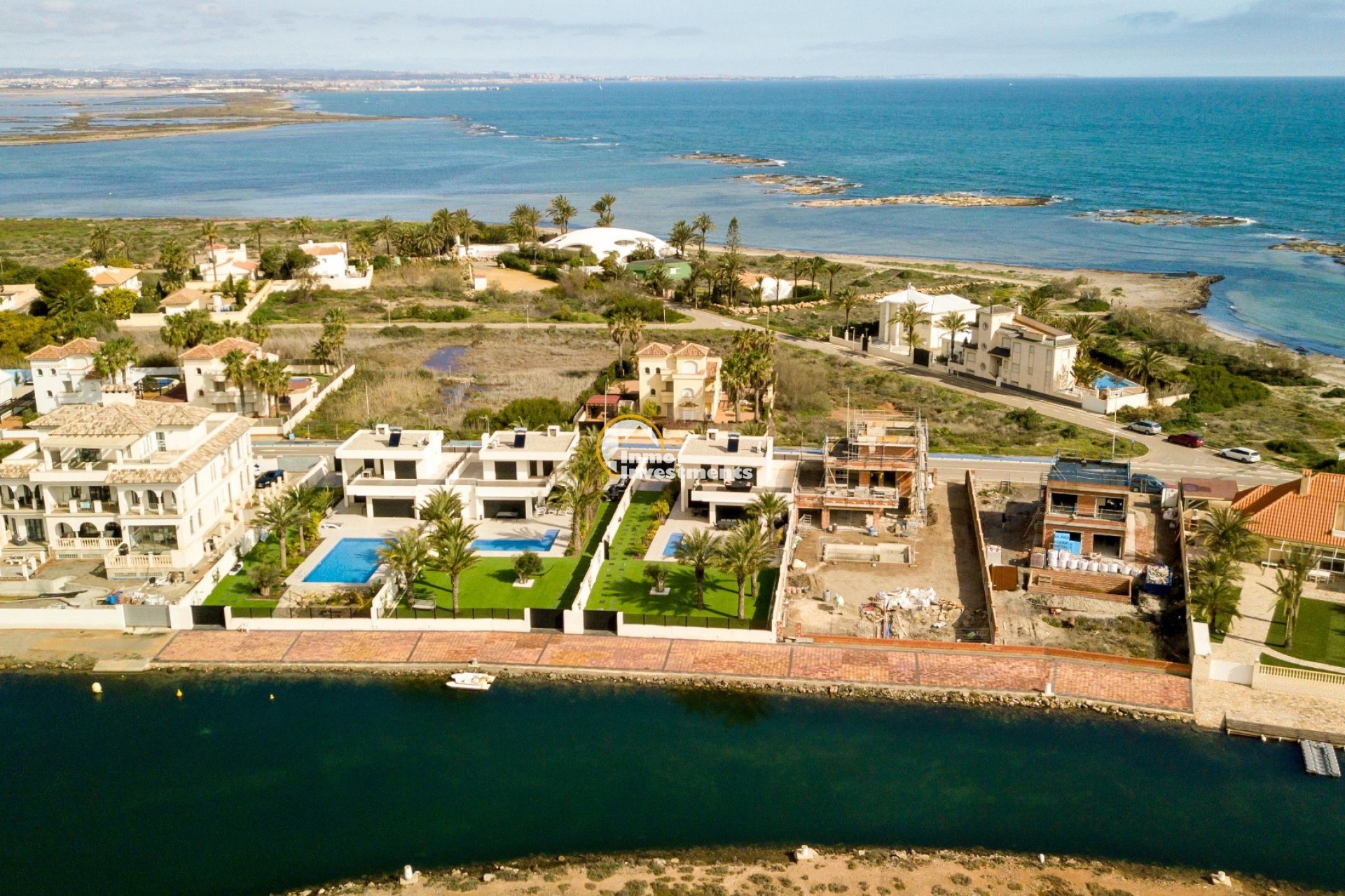 This unique villa with direct boat access is located between the Mar Menor and the Mediterranean Sea. The property stands on a 1,000 m² plot and offers 192 m² of living space over two floors, including 5 bedrooms and 5 bathrooms. One side of the villa overlooks the canal, while the other provides direct access to the beach. The outdoor area features a private swimming pool, a solarium and a well-maintained garden. The property also includes a storage room, private parking and solid construction throughout. This home offers generous space, privacy and a pleasant setting, making it suitable as a family residence or a comfortable retreat by the coast. Contact us for more information!