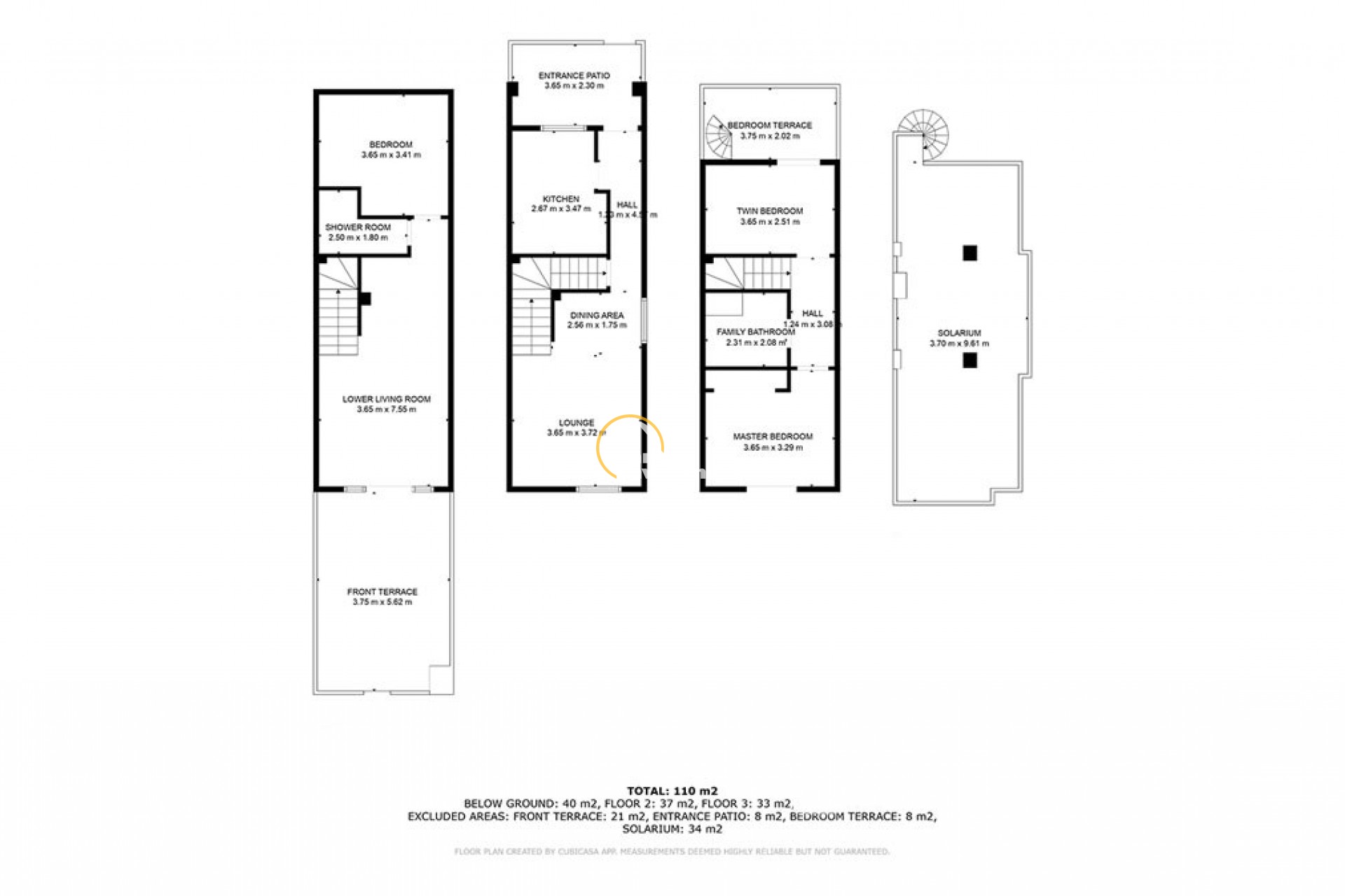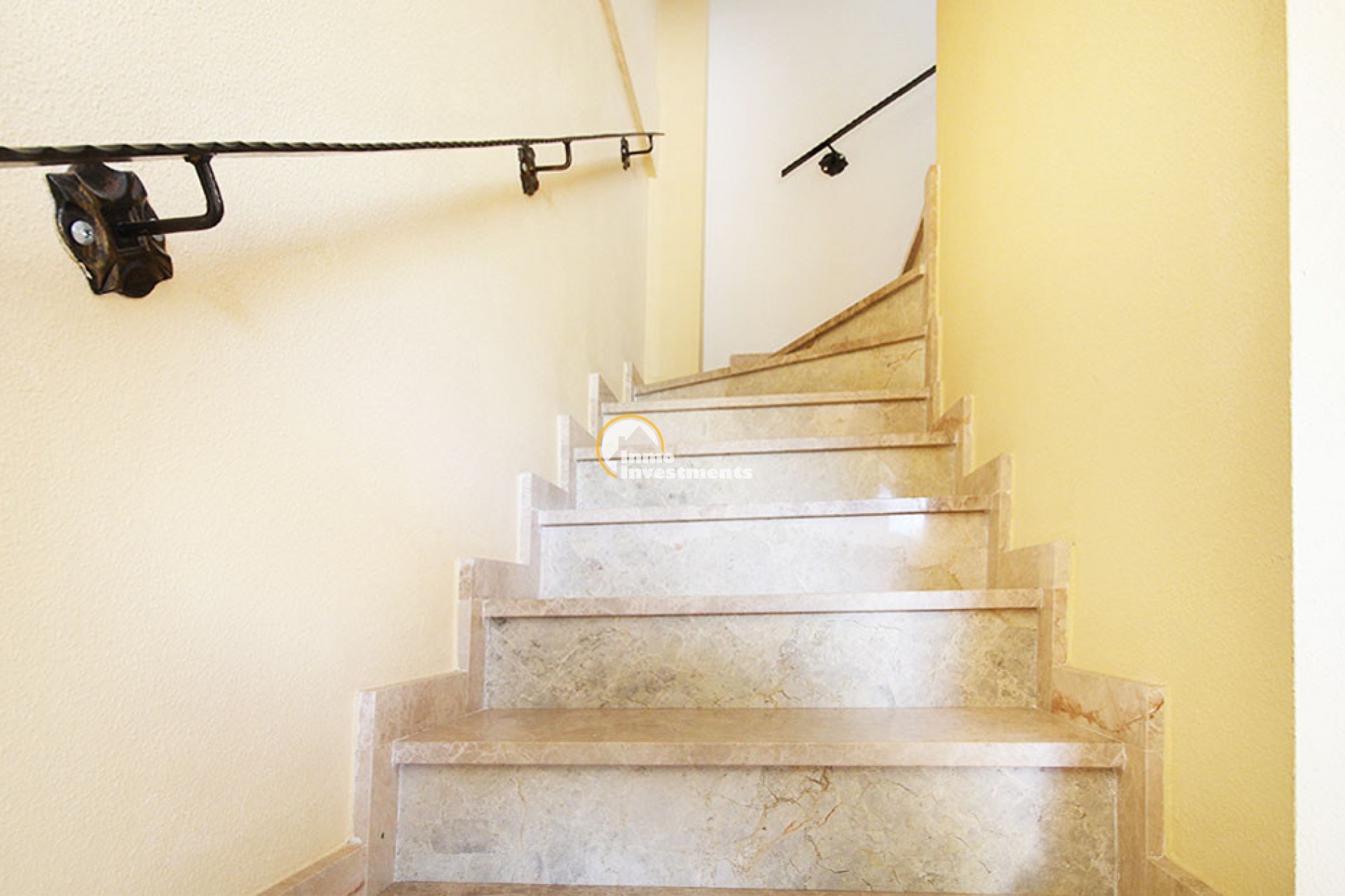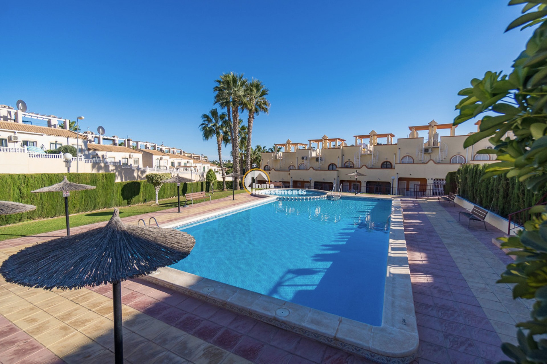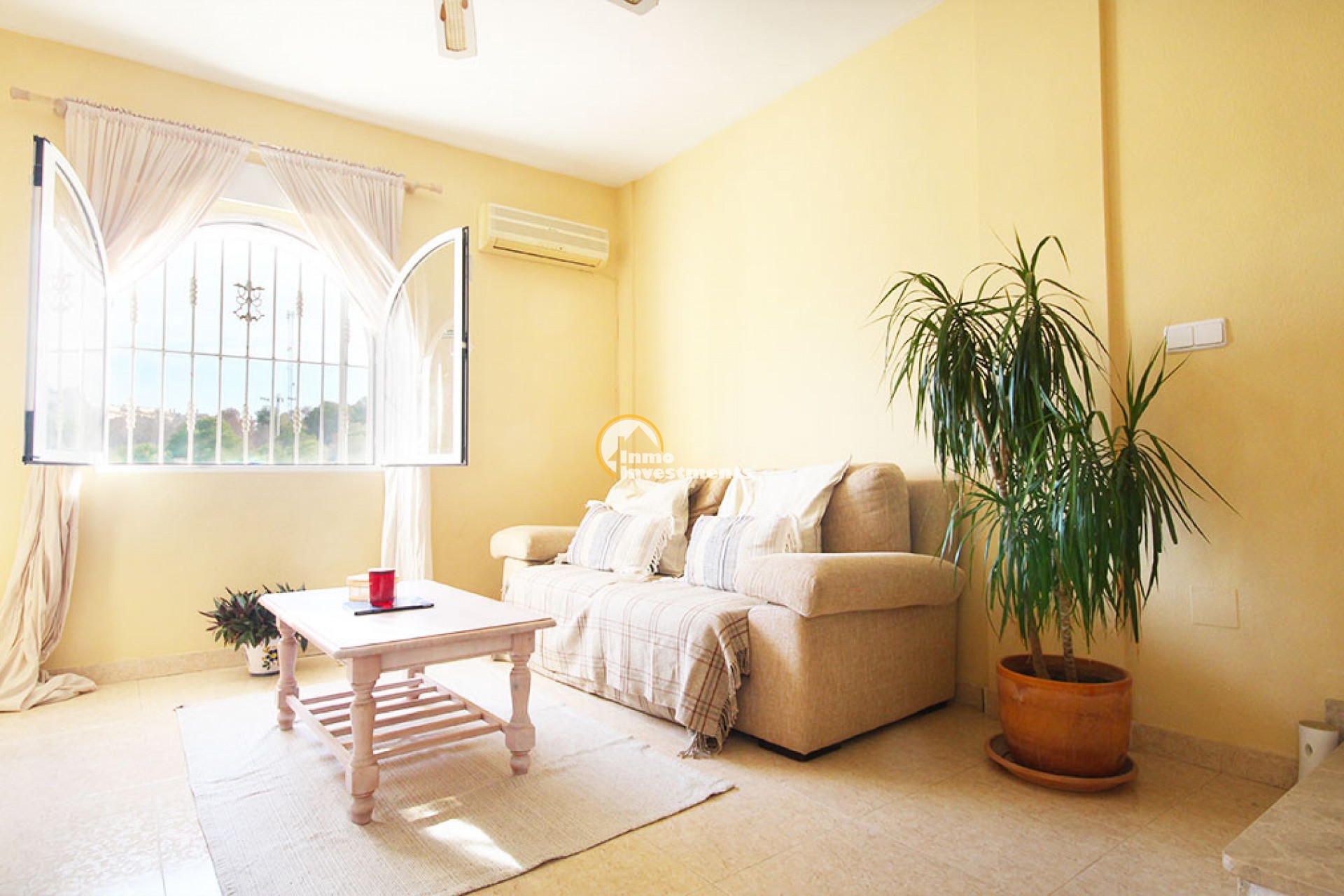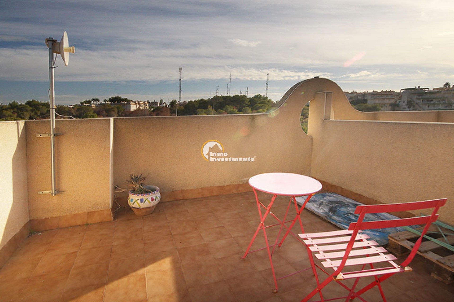 South facing town house in Las Filipinas, Villamartin offering 3 bedrooms and 2 bathrooms, lounge/dining room and kitchen. From the twin bedroom on the first floor there is a terrace overlooking a rock garden. This terrace has spiral stair-case access that leads up to the 33m² solarium offering more sunshine and views over the ramblas. From the street there is a gate opening onto a 20m² south-facing front garden that gets the sun all day long. This is a low maintenance paved space with potted plants. Sold part furnished including extras such as air conditioning. Set on a community with swiming pool for residents in Las Filipinas, Villamartin. There is a choice of clean, sandy, family friendly beaches just a 5 minute drive. 4 golf courses; Las Ramblas, Campoamor, Las Colinas and Villamartin are all within 10 minutes drive. The well known La Zenia Boulevard is also only a 7 minute drive away.
