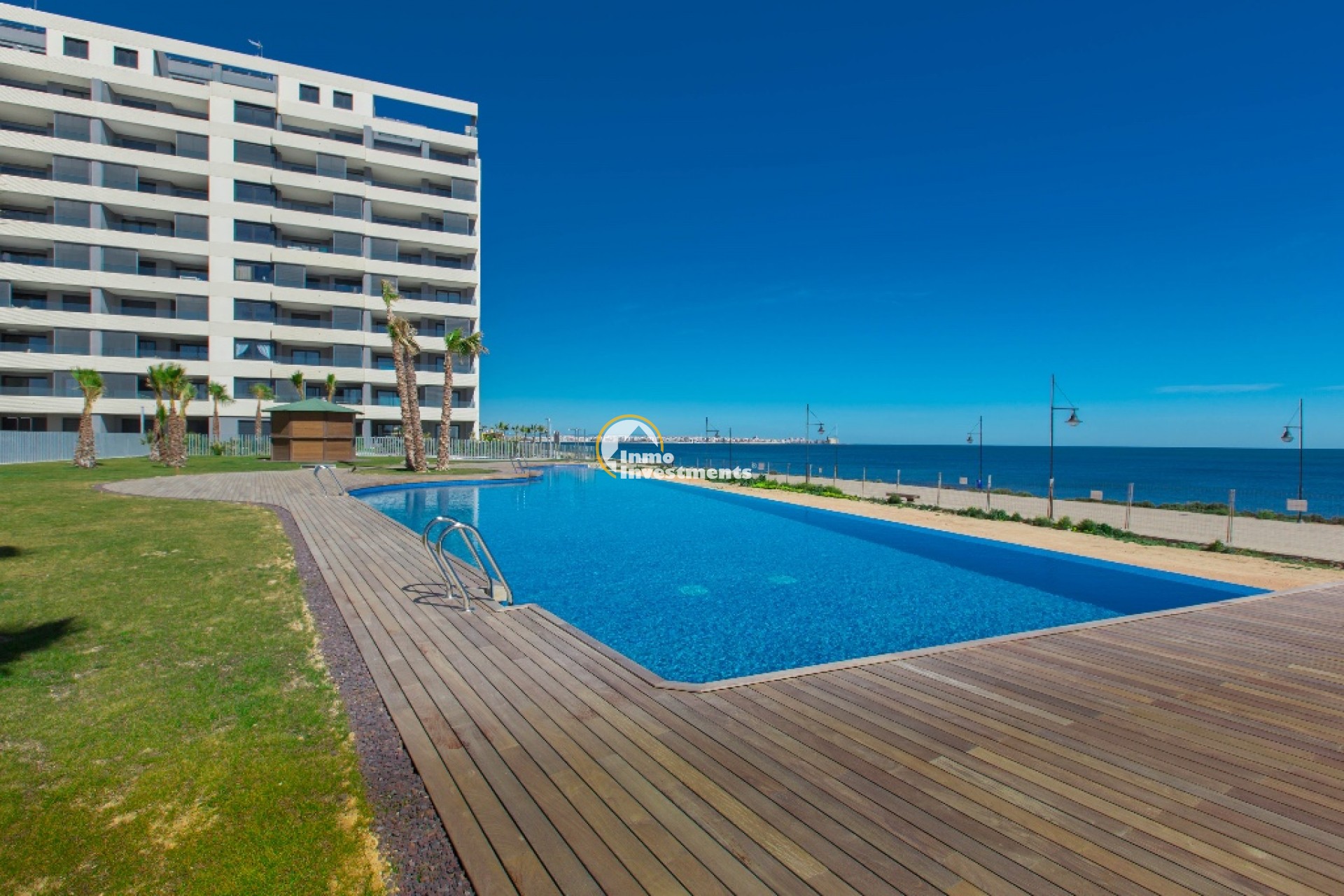 For your holiday on the Costa Blanca luxury apartments for rent with panoramic sea views are offered! The apartment has 2 bedrooms, 2 bathrooms, lounge-dining room, furnished kitchen, equipped with household appliances and all household items for your comfort. The spacious terrace has panoramic views of the sea. Modern, fully equipped apartments are located in a new modern residential complex with swimming pools, jacuzzi, playground, bar and seating areas. The house has underground parking, round the clock video surveillance.Punta Prima is a resort area in the south of the Costa Blanca, just a few kilometers from the center of the popular tourist town of Torrevieja, 3 km from the large commercial center Zenia Boulevard and 45 km from the international airport Alicante.VT-461248A