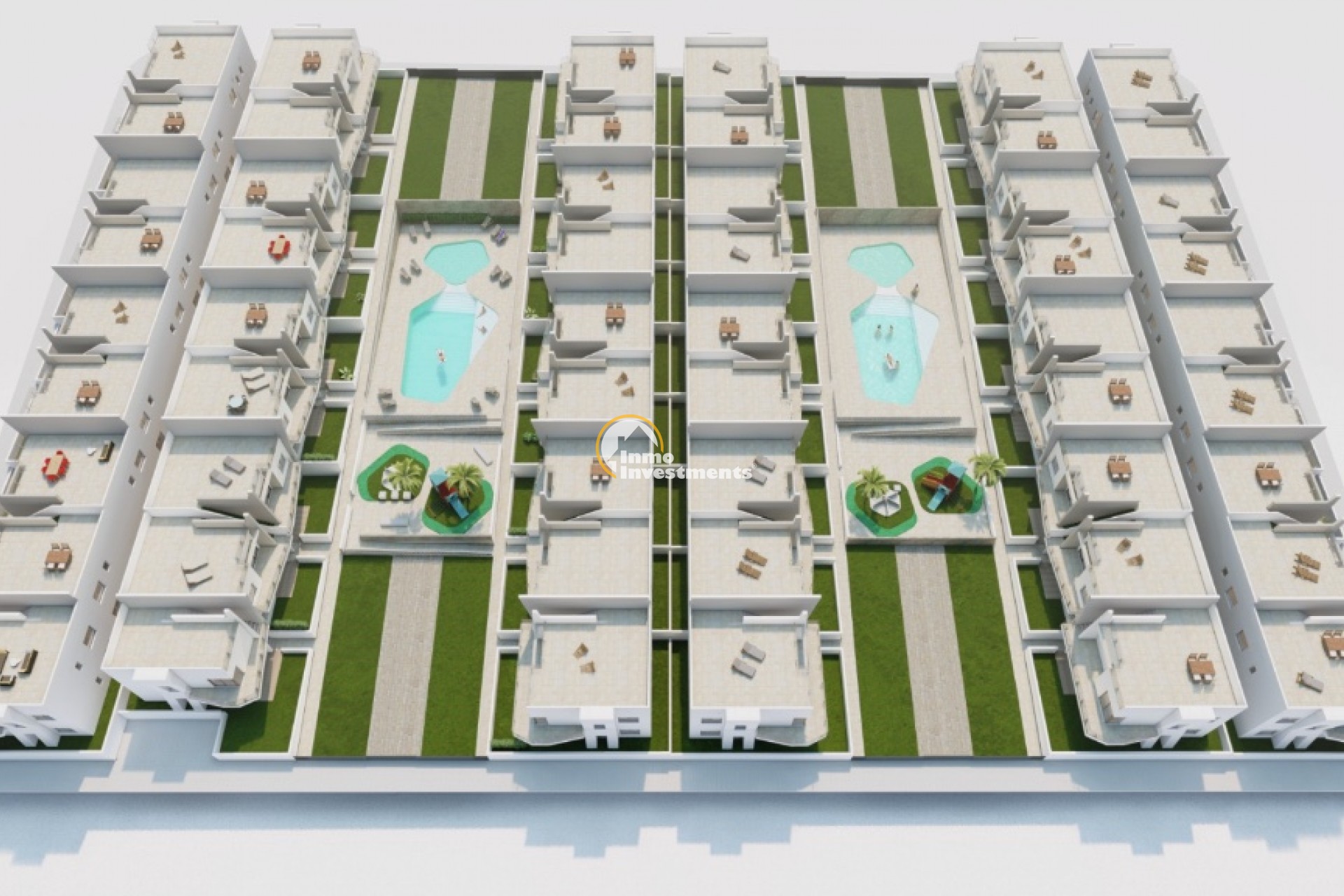 New build apartments for sale in San Miguel de Salinas, Costa Blanca, SpainNew gated community has two types of apartments: the ground floor property with garden, 2-3 bedrooms, 2 bathrooms and living room area with open style kitchen and top floor apartments with solarium. The community will have green areas and 2 communal pool as well. Also the community will have beautiful views of the surrounding areas.San Miguel is a typical Spanish town located just 20 minutes drive from the sandy beaches less than 40 minutes from two international airports, Murcia and Alicante. Also, here you will find all necessary amenities: a variety of Spanish bars and restaurants offering tasty tapas, post, bank offices and supermarkets.