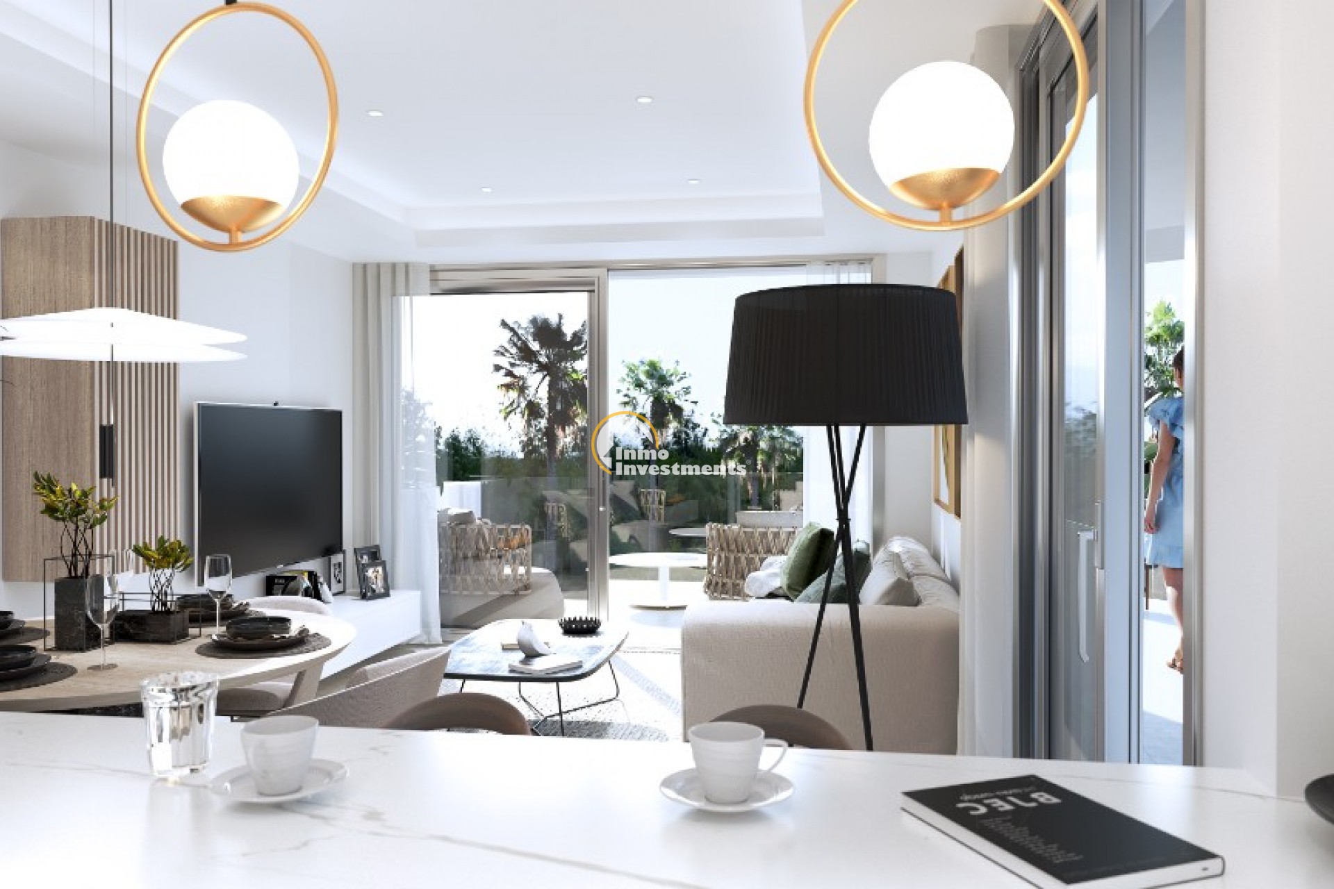 New build apartments for sale in Lomas de Cabo Roig.New build complex with communal pool. You can choose apartments with 2 or 3 bedrooms, 2 bathrooms, kitchen, living room and large terrace. Ground floor apartments will have private garden and top floor a roof solarium.Lomas de Cabo Roig is located approximately 4 km away from the sandy beaches and it is well known by its famous Villamartin Golf Course (Costa Blanca) which attracts many tourists from all Europe. Here you will have all amenities around: restaurants and bars, commercial centres, supermarkets, banks and much more.The two airports of Alicante and San Javier are 45 min drive away, also the city of Torrevieja is just 15 min away.