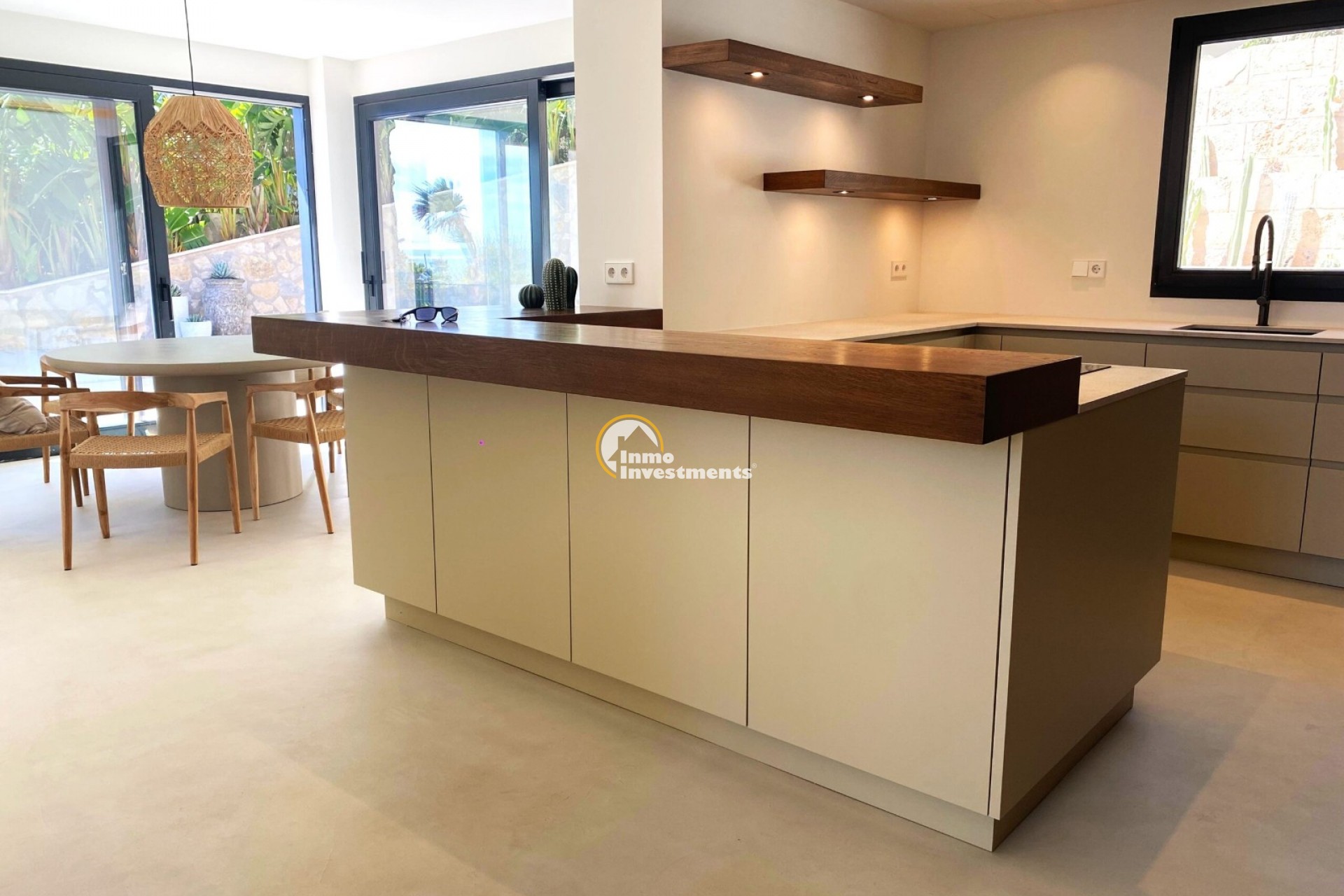 If your dream always was to wake up and look at the glittering sea right from your house´s terrace, then this is the property you need to buy! This beautiful villa, extensively renovated throughout, harmoniously combines the latest contemporary design with natural Mediterranean touches, creating a bright, light filled, and inviting home or home from home. The accommodation includes an impressive double ceiling height main living room with feature spirit fireplace and double aspect windows. An impressive reception hallway leads to the spacious dining area and superb fully fitted and equipped kitchen with feature rosewood breakfast bar, overlooking the pool and bathing terraces. On the ground floor there is a double bedroom, luxurious bathroom and separate utility/laundry room. A galleried landing on the first floor landing overlooks the main living room. On this level there are three further bedrooms and two bathrooms, including the fabulous master suite with double aspect windows and private terrace providing outstanding sea views, a fitted dressing area and luxurious bathroom. All of the bedrooms have fitted wardrobes and most have private terraces. Exterior: Attractive swimming pool with stepped access is set within a large sunny bathing terrace, and framed by feature ‘Marés’ terraced walling, stocked with a wide variety of cacti and mediterranean plants. A ‘Cabaña’ by the pool area with servery, provides an outdoor kitchen and barbecue. Landscaped gardens and terraces surround the property. Electronically operated security gates prove access to the large garage that has an internal staircase providing direct access to the kitchen/dining room. A Sauna and storeroom are adjacent to the Cabaña. A fully integrated air-conditioning system serves all rooms and underfloor heating throughout. Don´t wait and call us now for organizing a viewing for this unique property!