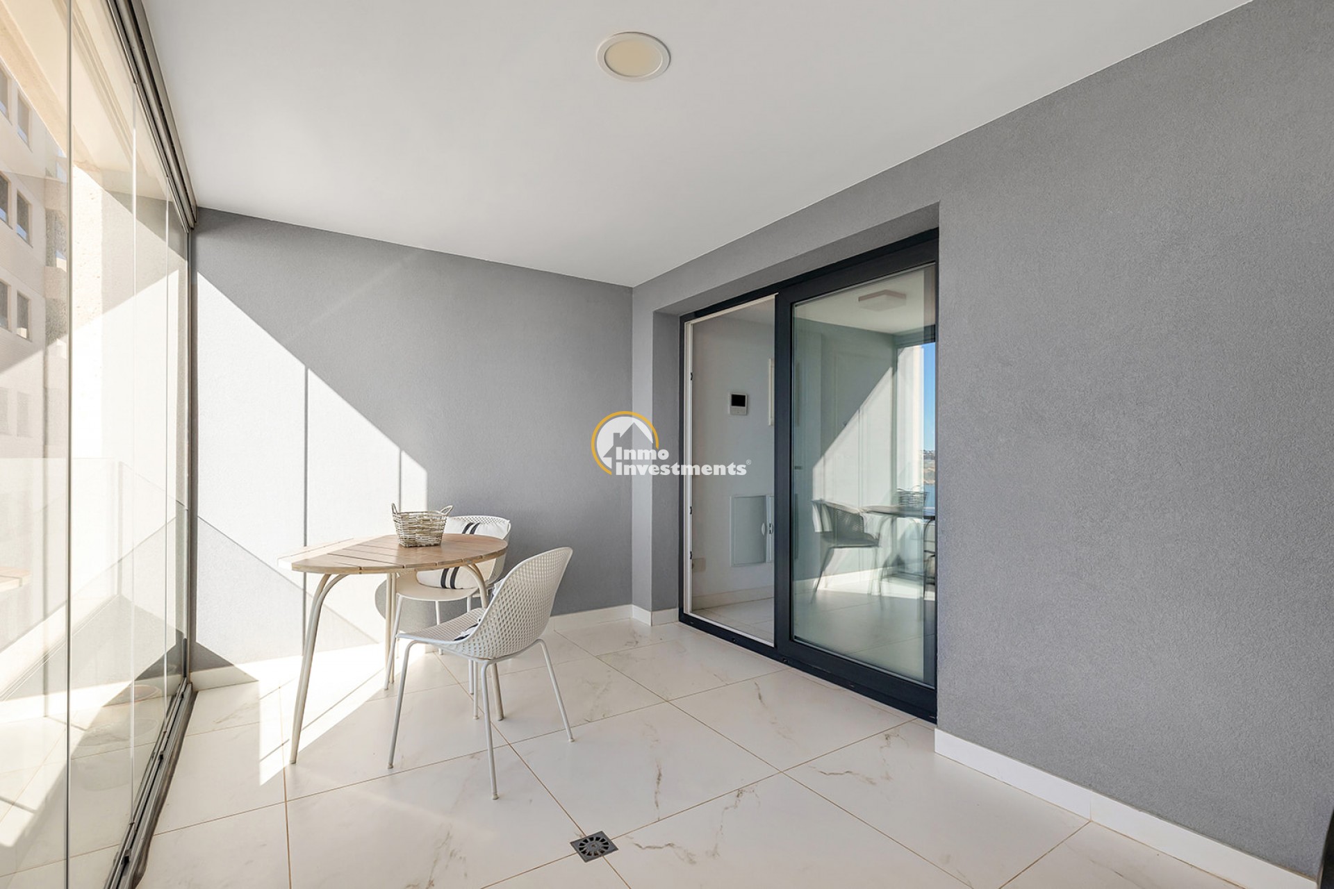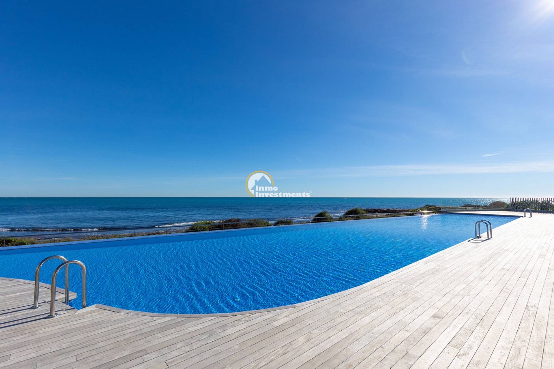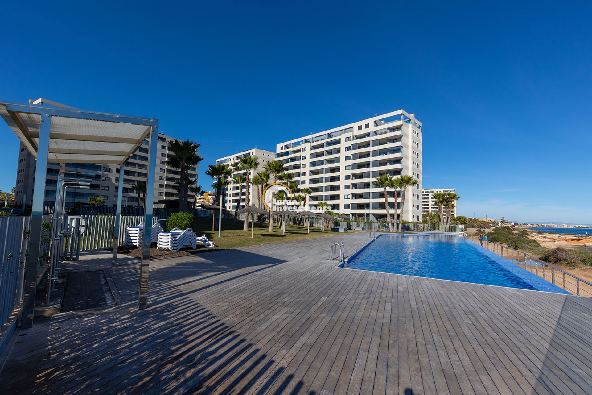 This exclusive 5th-floor apartment is located in the prestigious Posidonia residential complex, on the seafront in Punta Prima. Originally designed with three bedrooms, the property was modified off-plan to offer 94 m² of pure comfort, now distributed into two spacious bedrooms and two bathrooms, gaining exceptional spaciousness in the living areas. Its key strength lies in its double orientation and outdoor spaces: a 16 m² terrace with unobstructed views of the sea and the bay of Torrevieja, and a second 12 m² rear terrace facing south with views towards La Manga, guaranteeing sun, natural light, and cross ventilation throughout the day. The property is sold fully furnished, with an underground parking space and storage room included. The complex features high-standard common areas and security. Located within walking distance of amenities, supermarkets, and coves, it is approximately 45 minutes from Alicante Airport, combining luxury and comfort in one of the most sought-after areas of the Costa Blanca.
