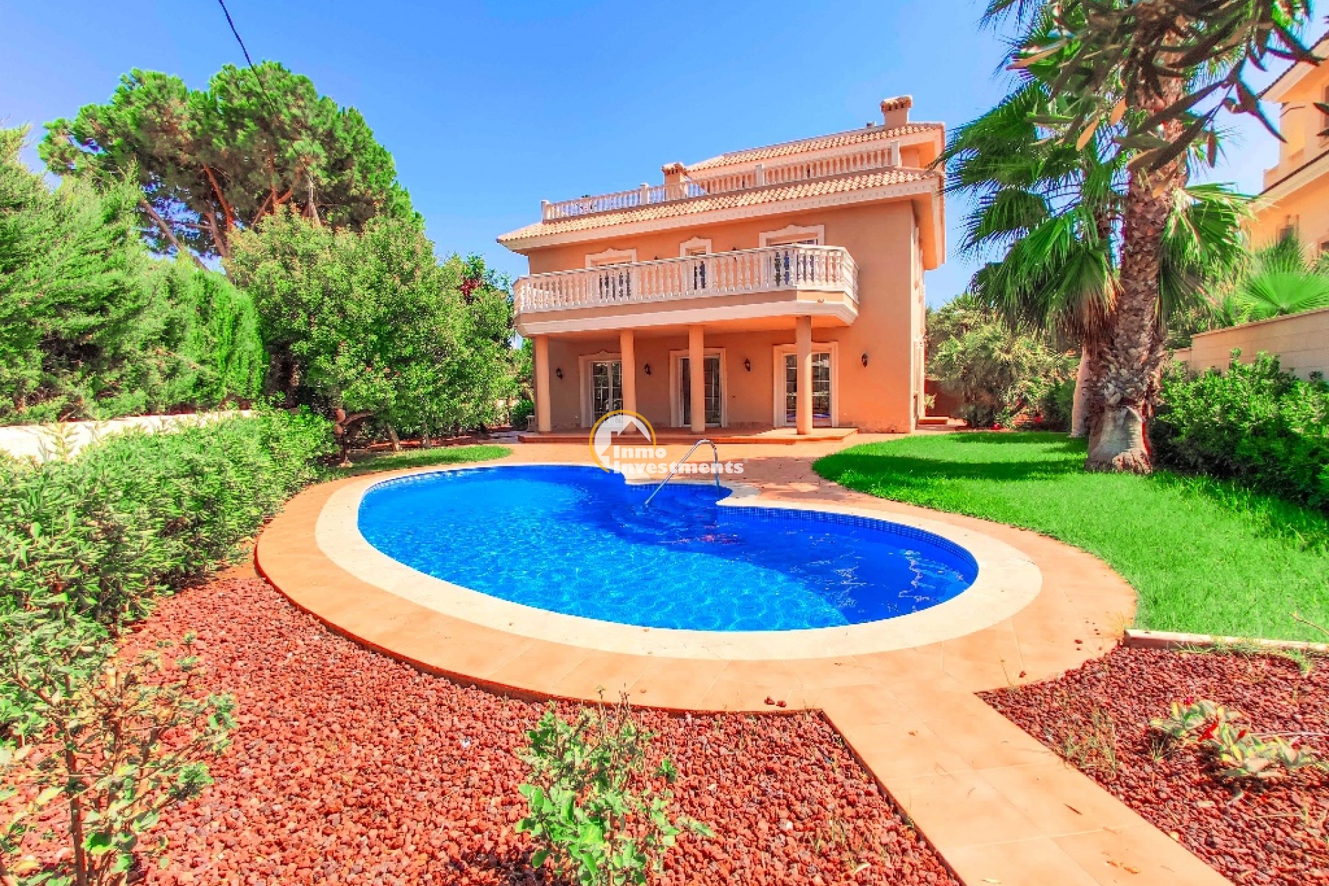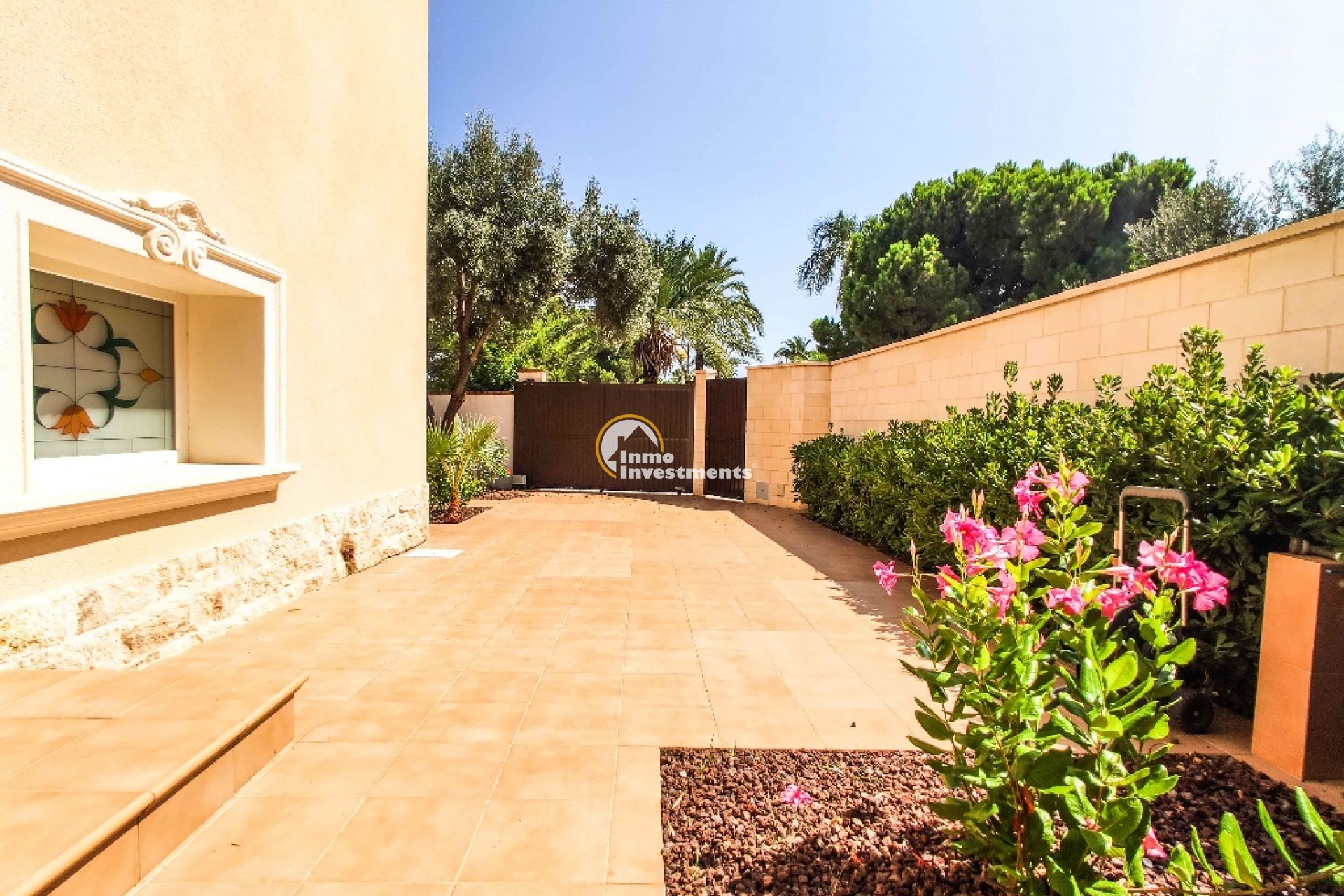 This luxury villa of almost 500m2 is located on a plot of 932m2 next to the beach of Cabo Roig , Costa Blanca. Luxurious classical design house for sale has 6 spacious bedrooms and 8 bathrooms, a lounge and a terrace. There is also a room, which can be used as a gym, or a 7th bedroom, it has access to a bathroom with an additional space, where all sauna pre installations are set. The house is built according to the highest standards and latest technologies, with thick brick walls, insulated roof, automatic shelters and mosquito nets on all the windows. The property aso benefits from central heating, separate water supply, irrigation system. All the interior and exterior doors are made of wood, while the floor and staircase - of marble. The bedrooms are spread between three levels / basement, ground floor and the first floor, and the second floor of the house features a huge open terrace with an access to the shower room. There is also a pre/installation for the kitchen on the roof, and in the garden. This luxury villa is just few minutes away from the sea sandy beach of Cabo Roig, nearby you will find few golf courses, a natural park with salt lakes, that create unique microclimate. Develop infrastructure of Cabo Roig offers everything you need from bars and restaurants to bank offices and supermarkets. International airports of Alicante and San Javier (Spain) are just 35 minutes away by car.