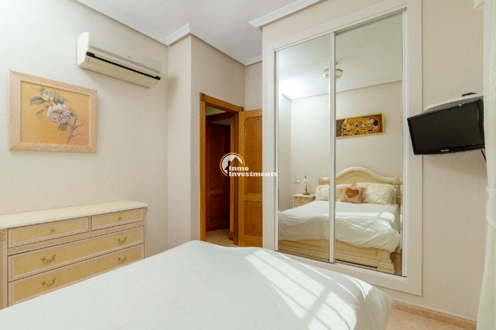 On the second level there are 2 sunny bedrooms, one bathroom and huge balcony, from where you can enjoy a magnificent open views - from one side you see the Pink lake of Torrevieja, and from other you have a sea view.