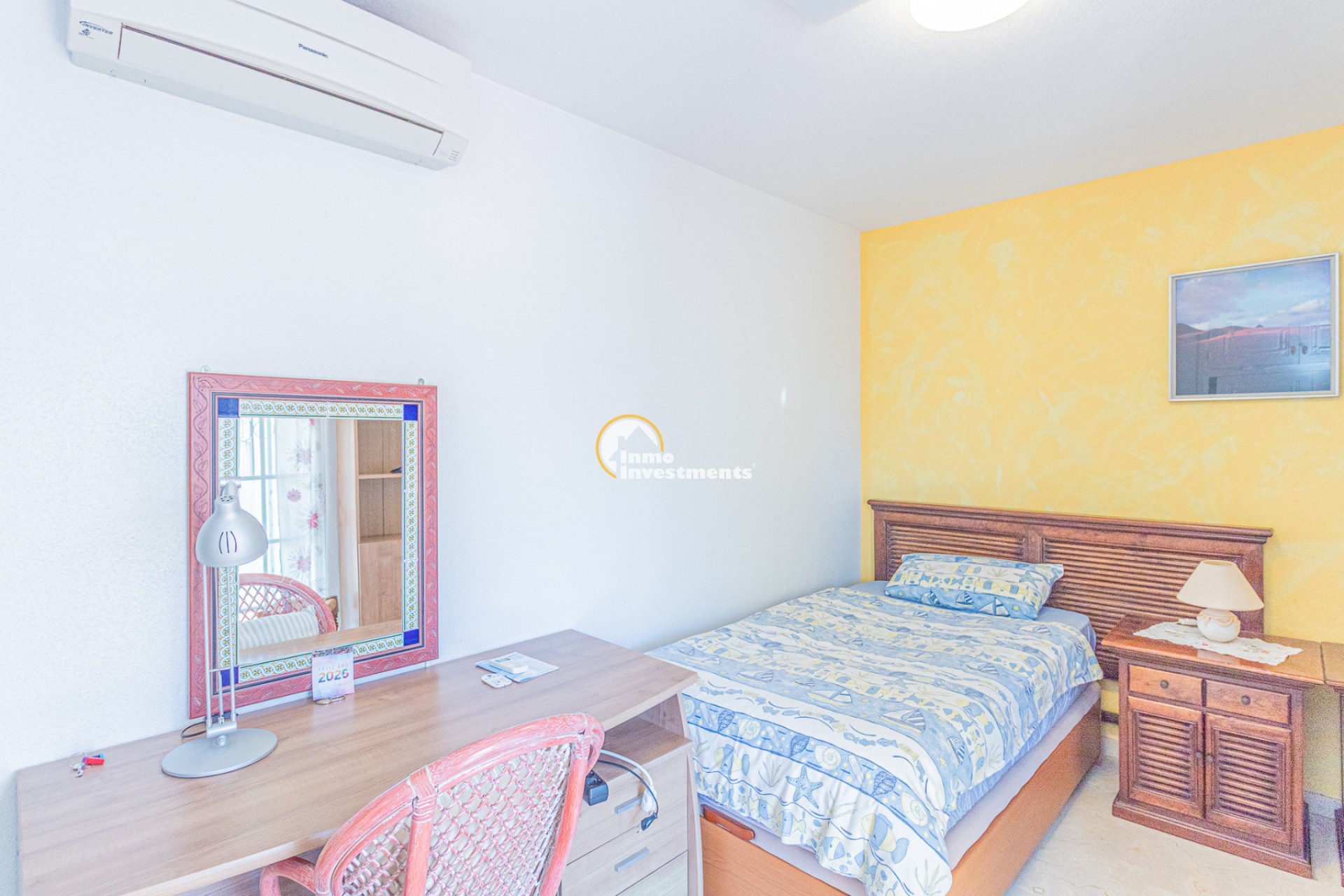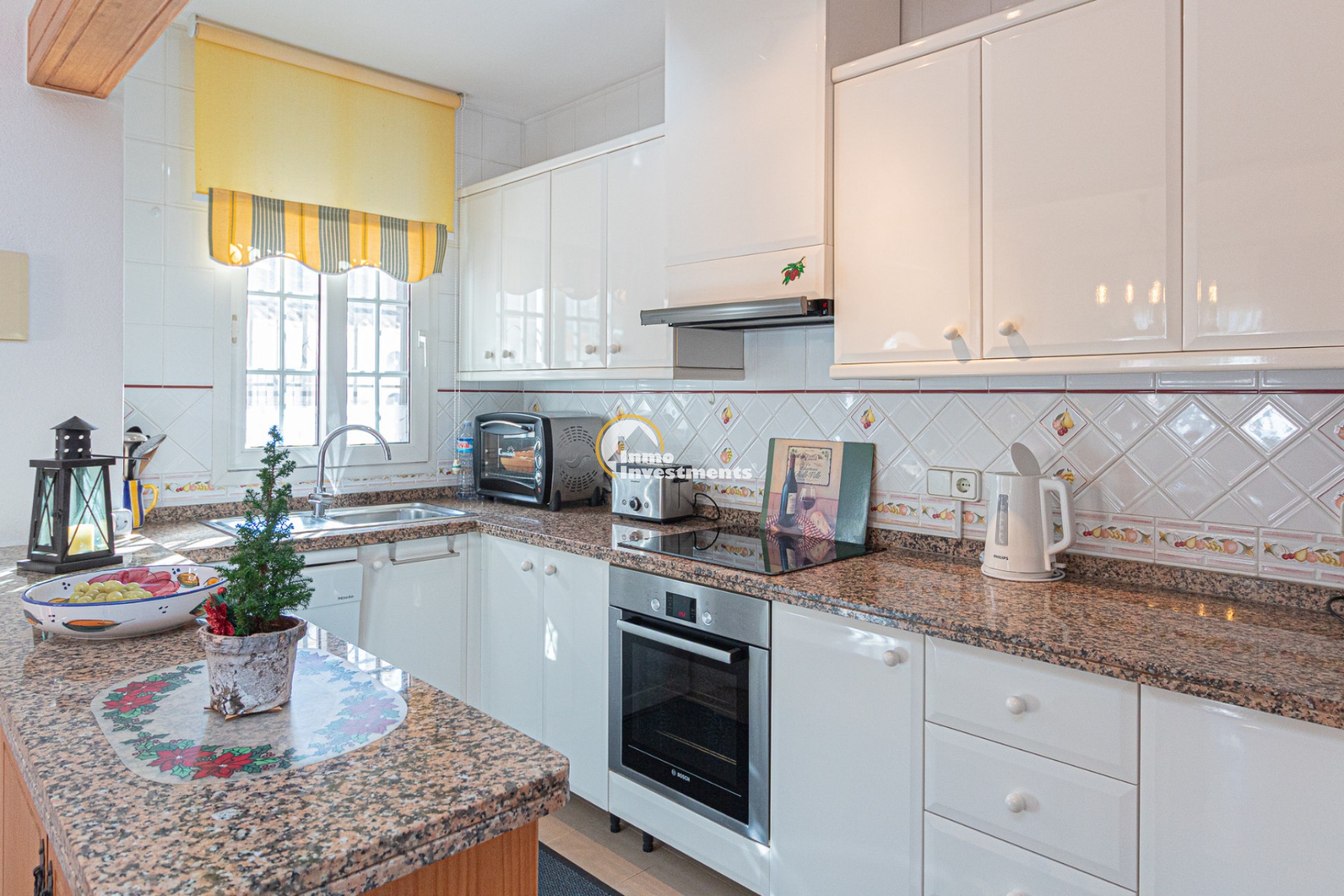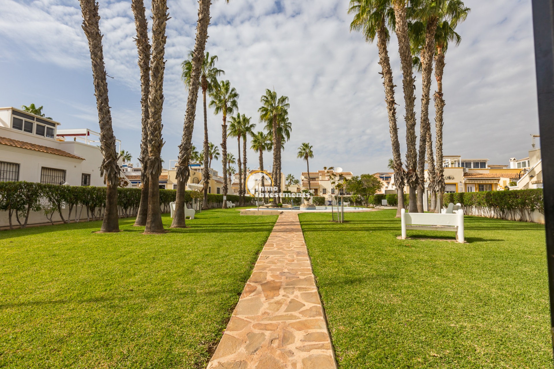 The low-maintenance, south-facing garden includes on-site parking with a carport, and there is also a large upper terrace ideal for year-round sun. The property is sold fully furnished and includes air conditioning, infrared heating, security grilles, and awnings. The complex features a communal pool and well-kept gardens, just a short walk from CC Playa Flamenca and less than 2 km from the beach. Ideal as a family home or holiday residence.